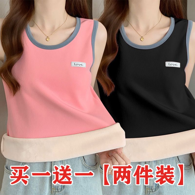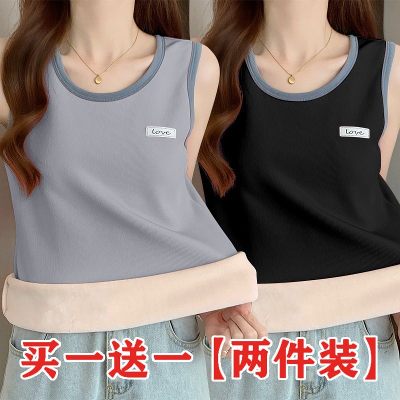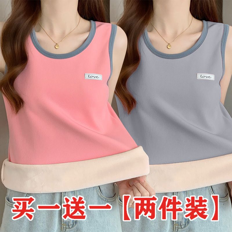 单/两件背心女加绒加厚冬季内搭吊带小t上衣美背打底衫保暖内衣女