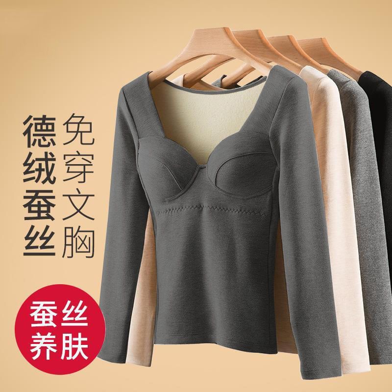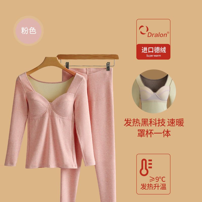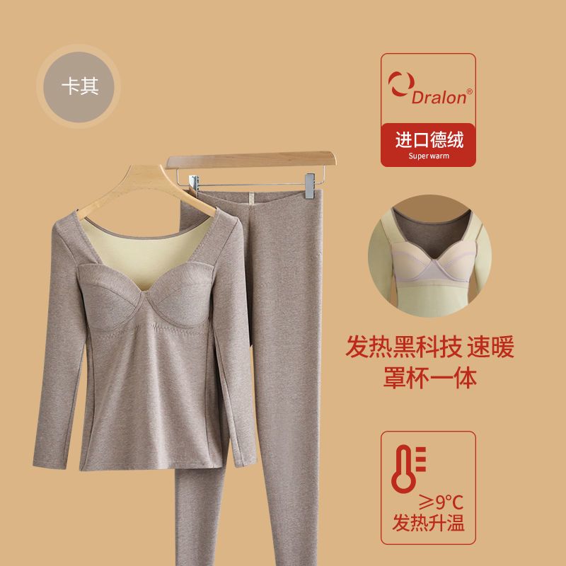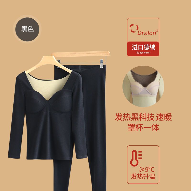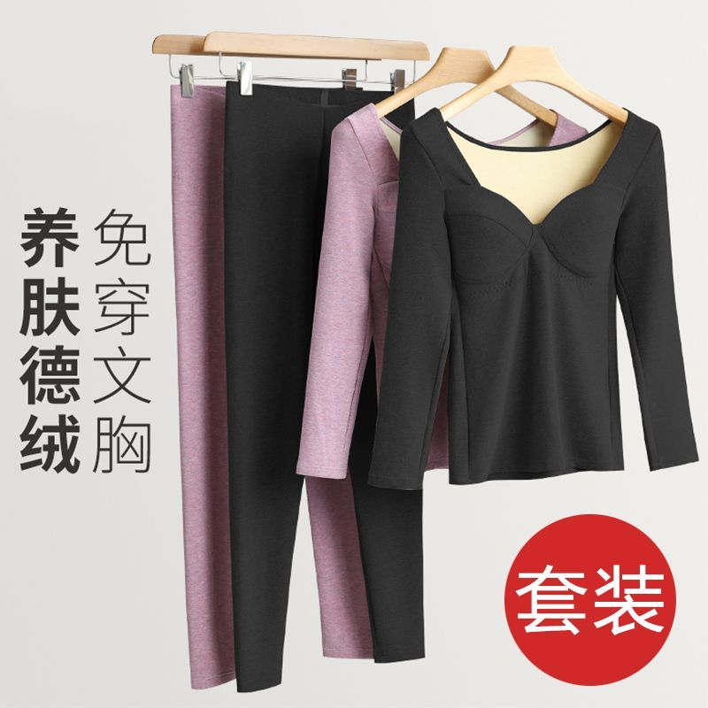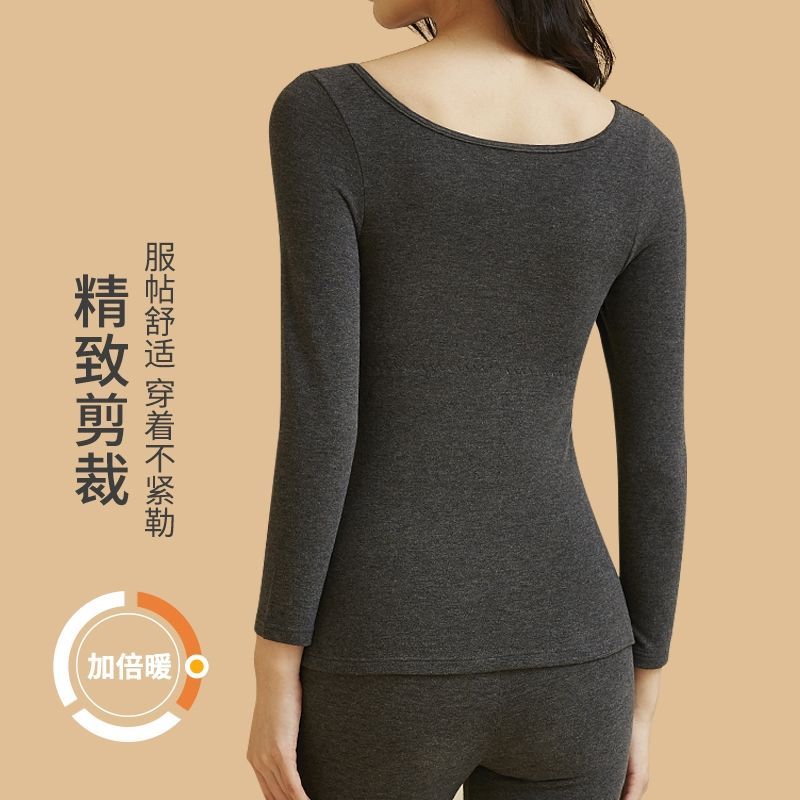 德绒保暖内衣女一体式加绒加厚保暖衣女套装低领德绒打底衫女秋衣