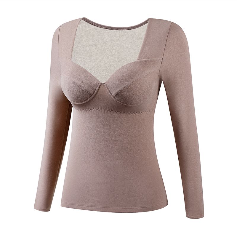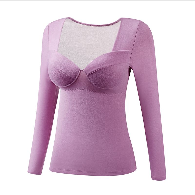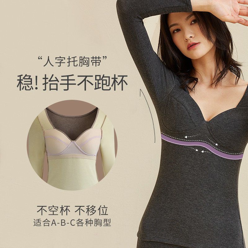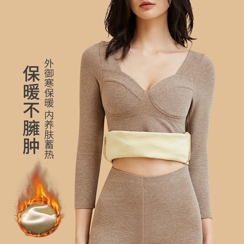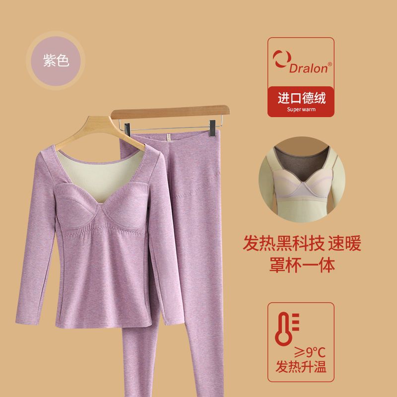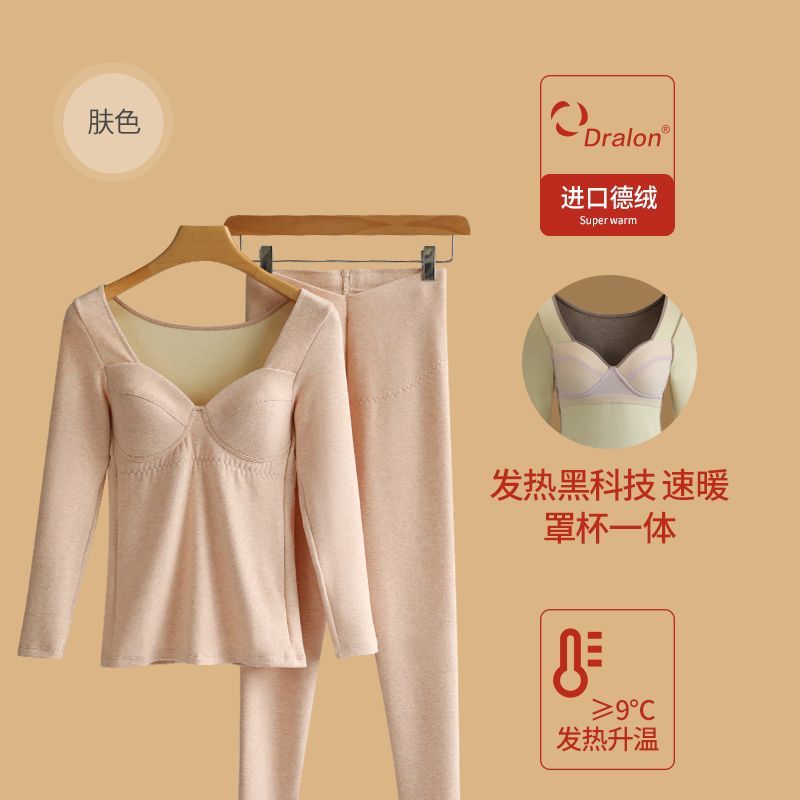 德绒保暖内衣女一体式加绒加厚保暖衣女套装低领德绒打底衫女秋衣