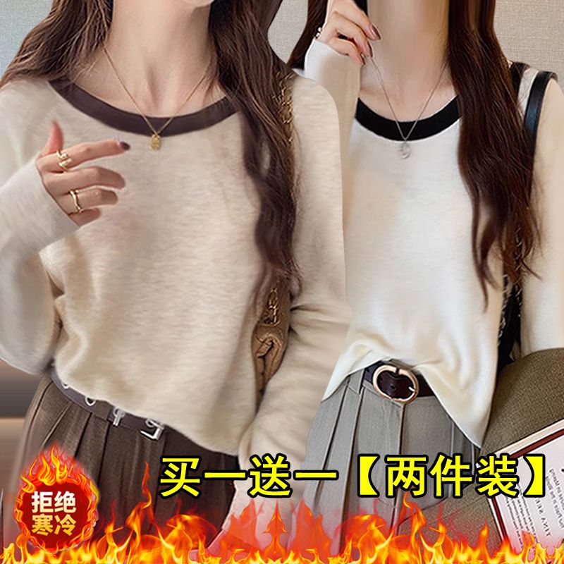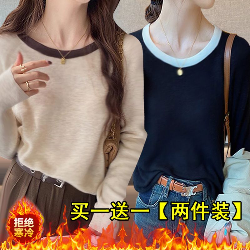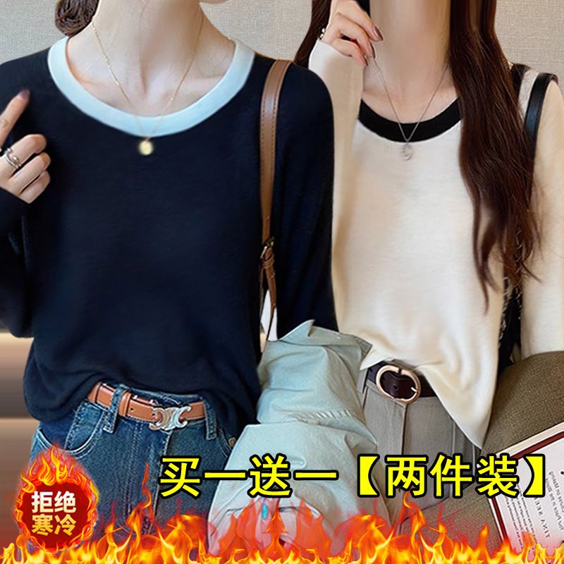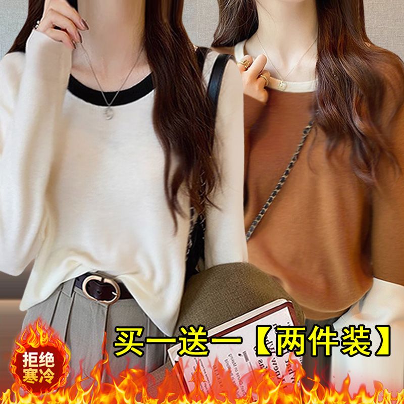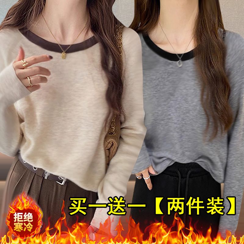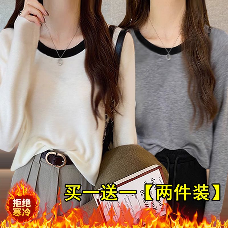 单/两件 双面德绒保暖洋气打底衫女秋冬新款内搭加厚圆领百搭上衣