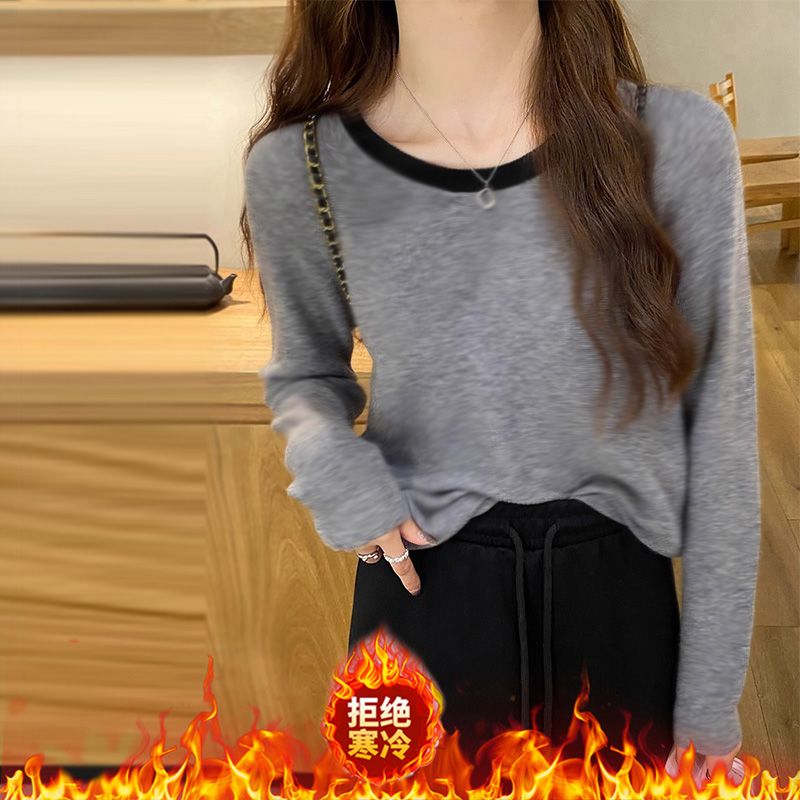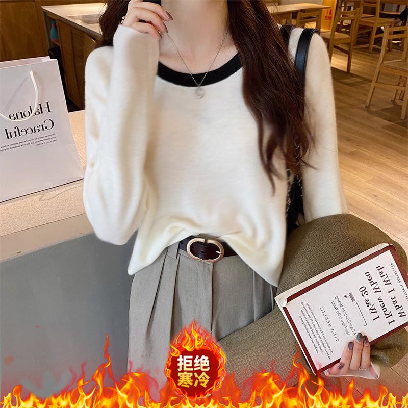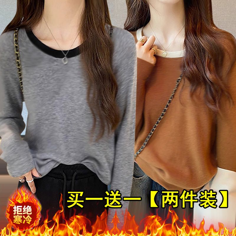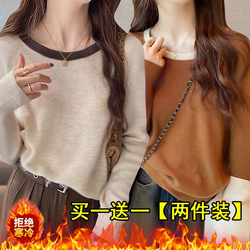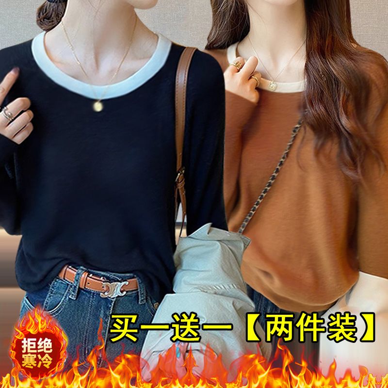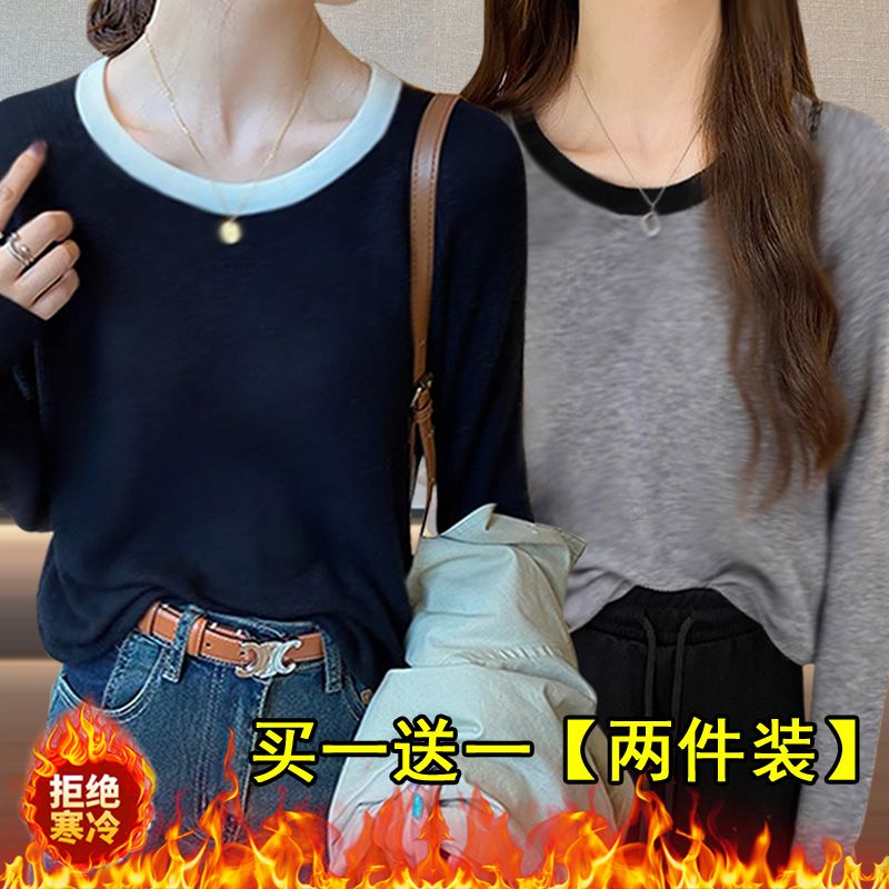 单/两件 双面德绒保暖洋气打底衫女秋冬新款内搭加厚圆领百搭上衣