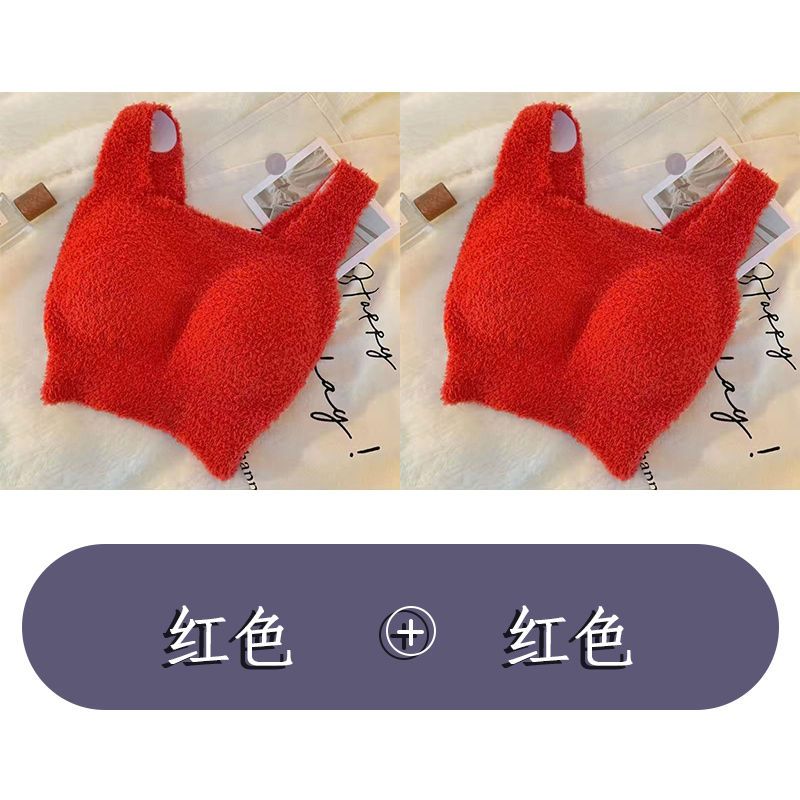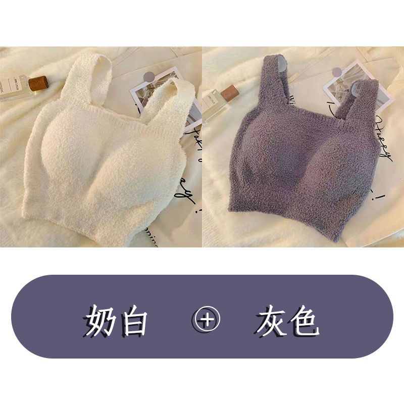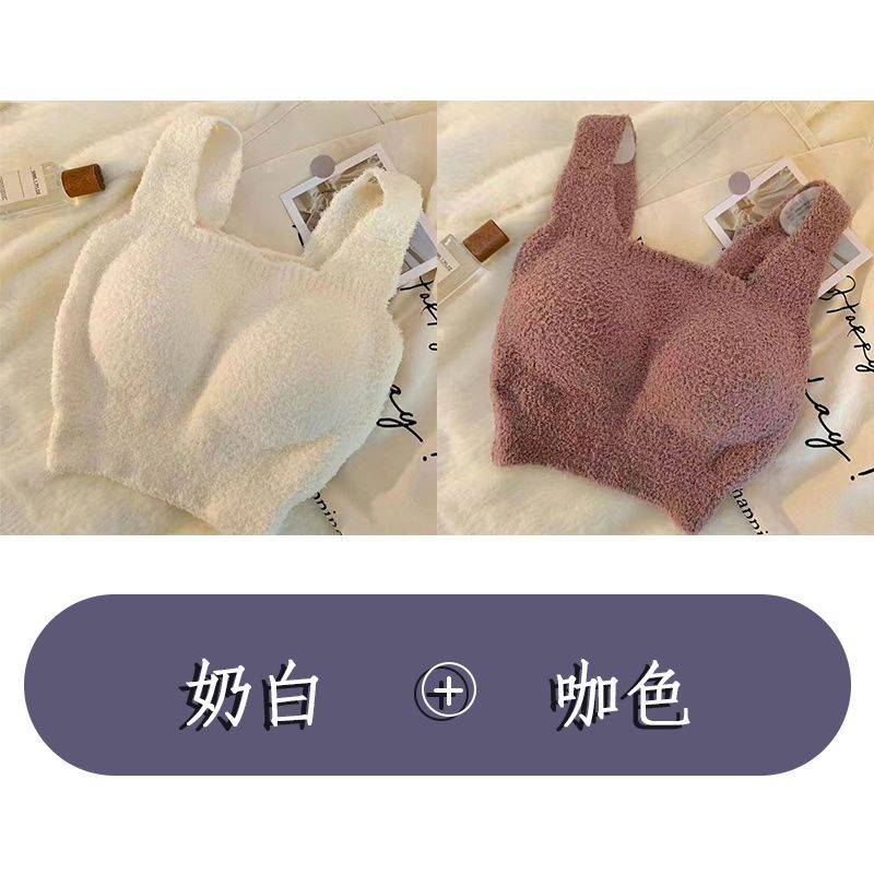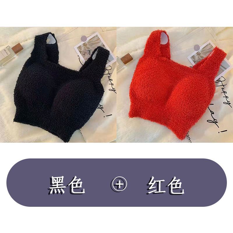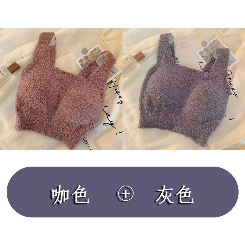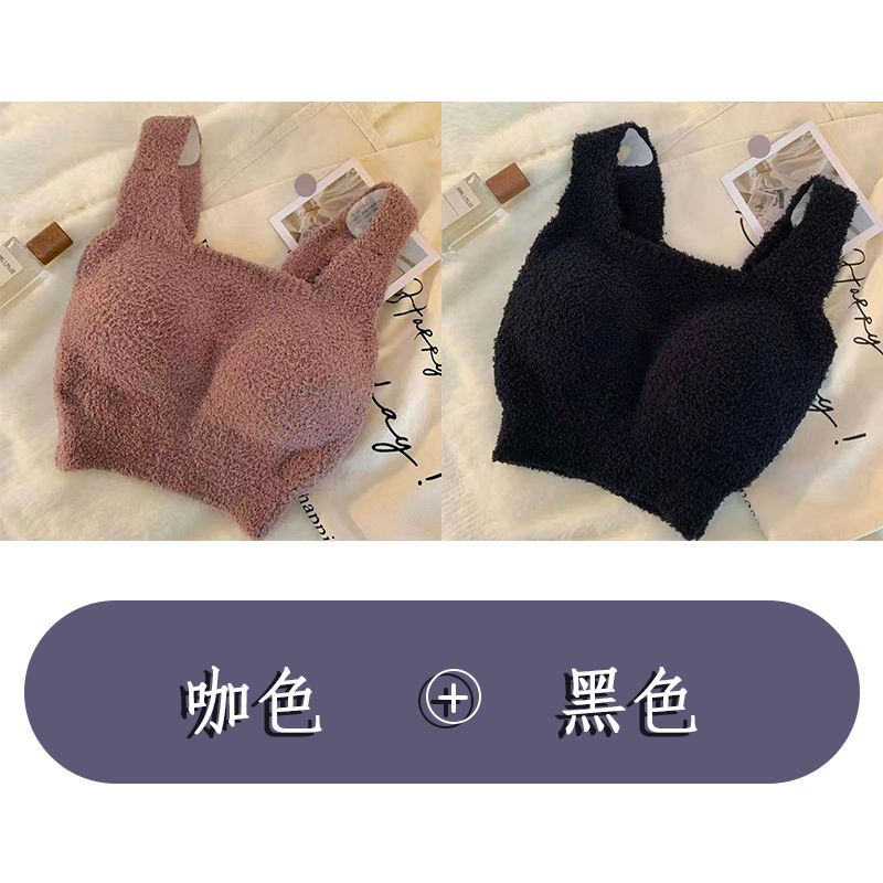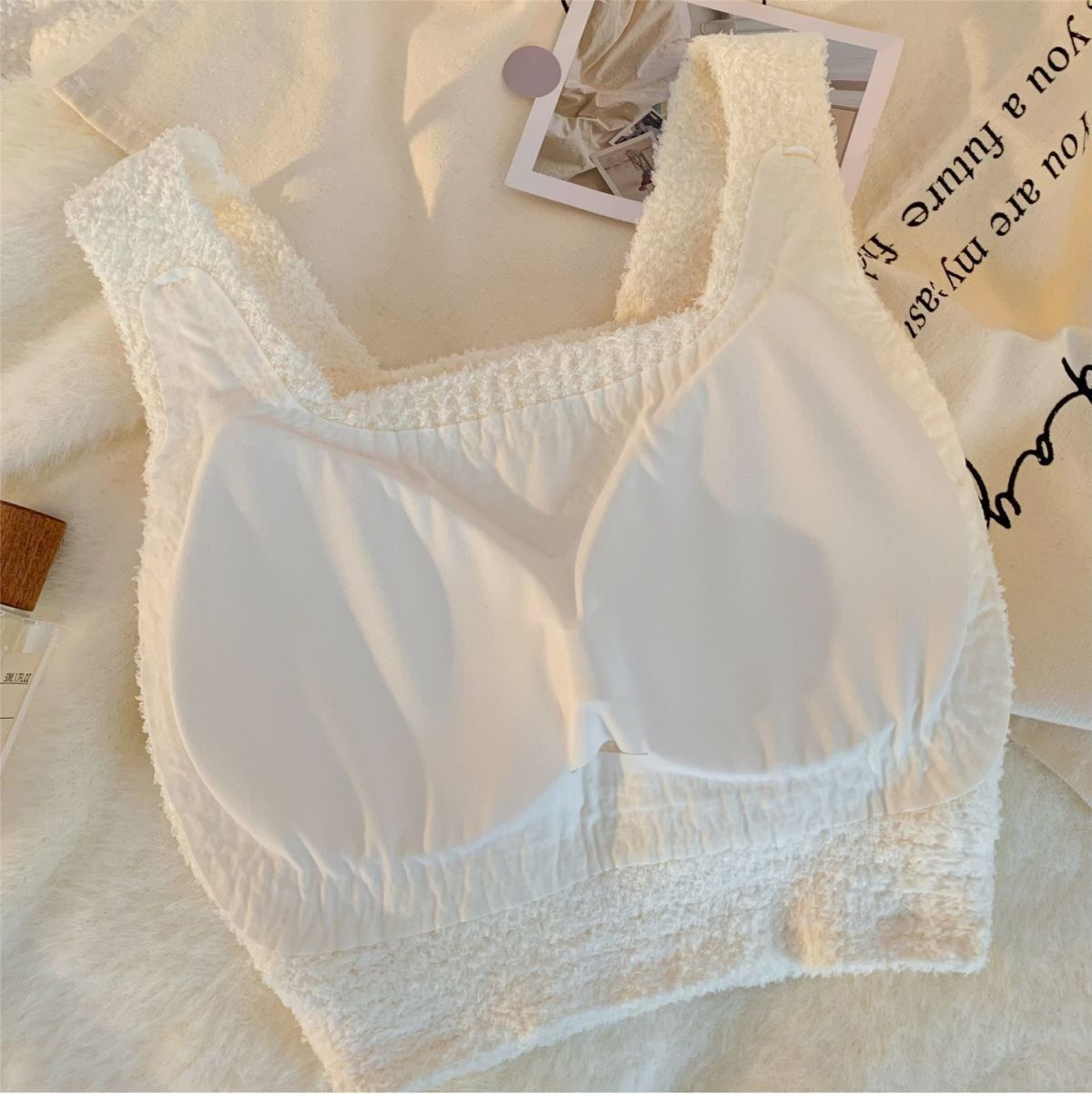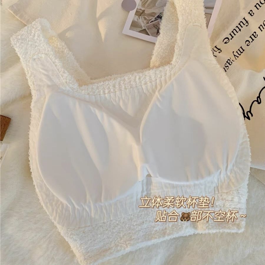暖绒小羊羔~秋冬保暖背心女免穿文胸一体式少女冬季加绒bra内衣女