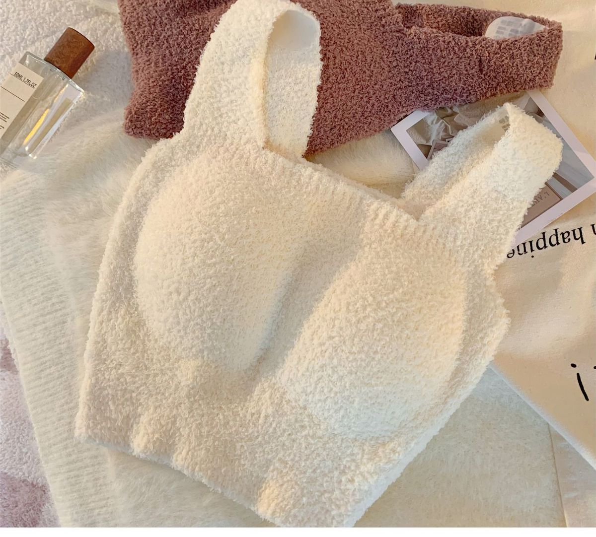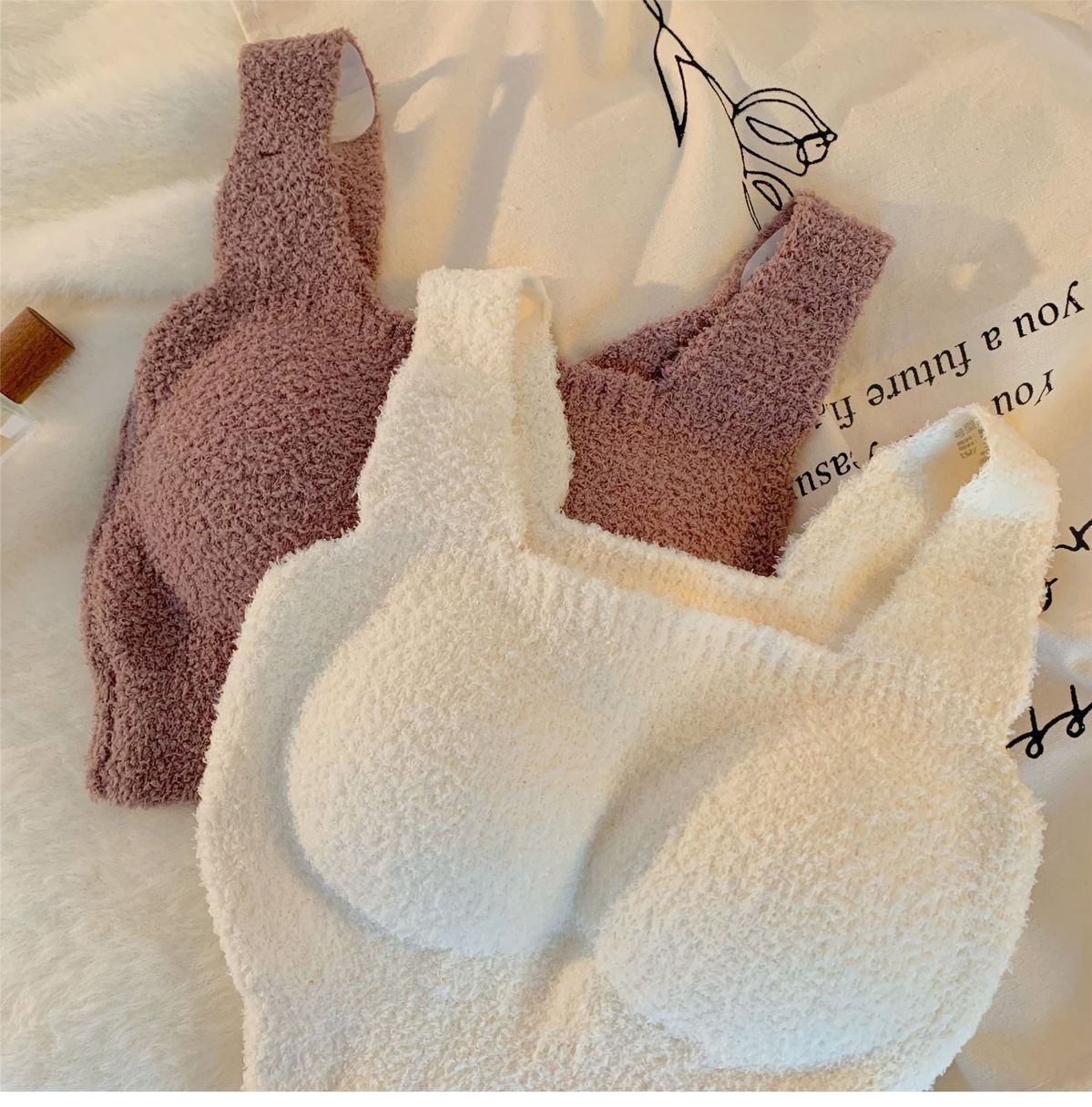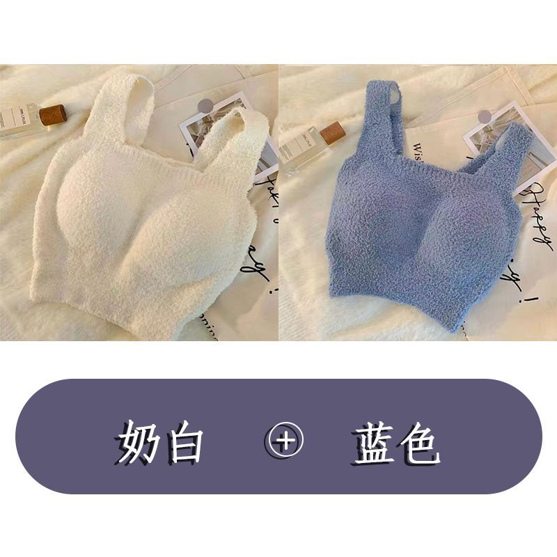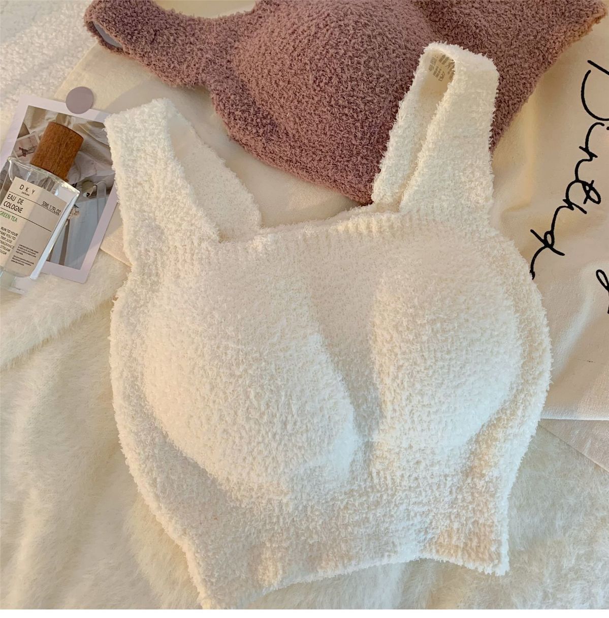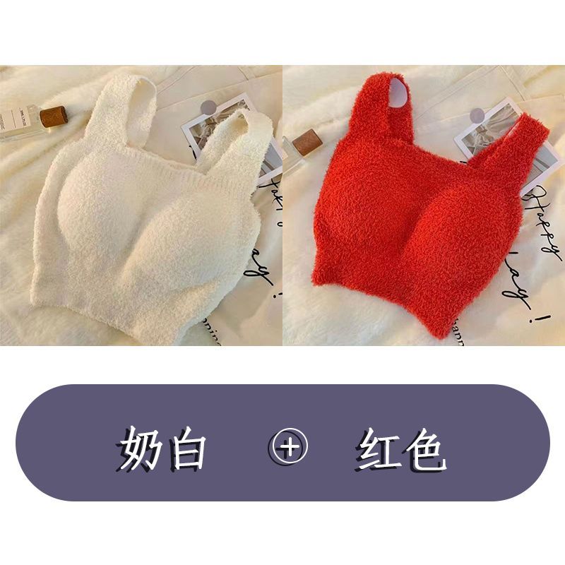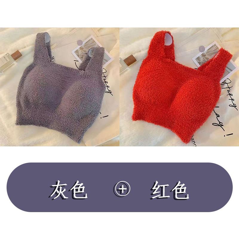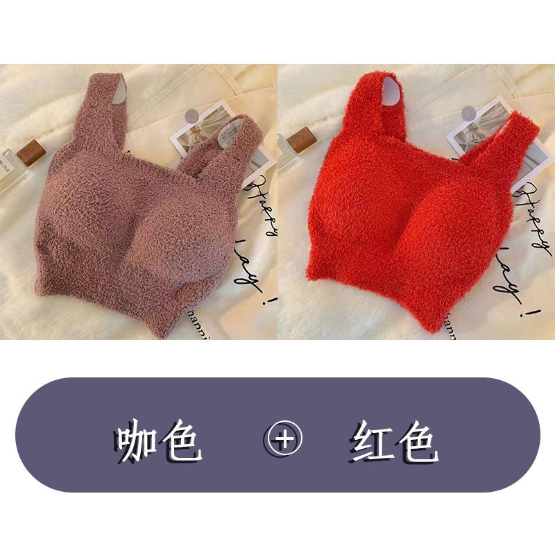 暖绒小羊羔~秋冬保暖背心女免穿文胸一体式少女冬季加绒bra内衣女