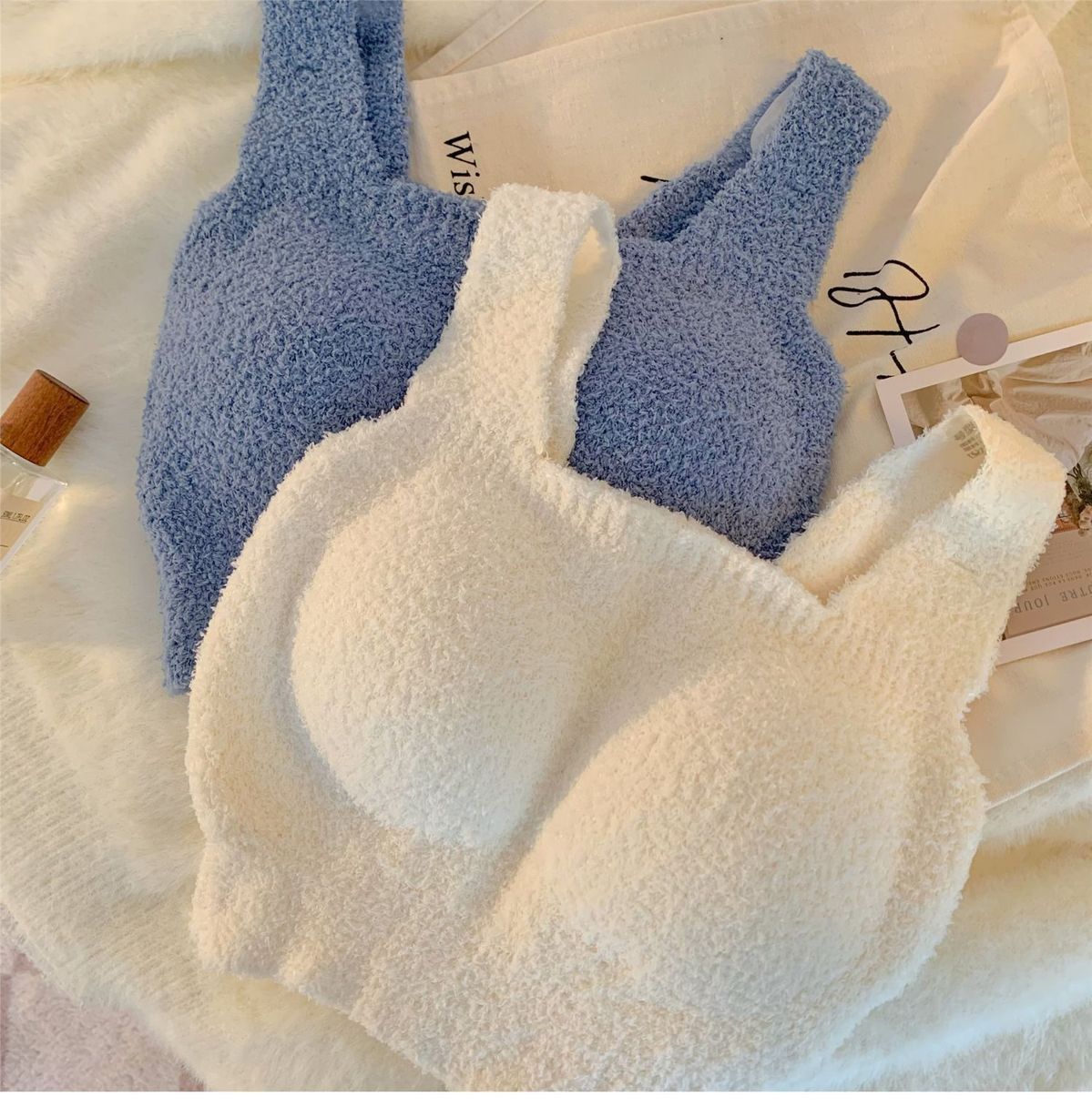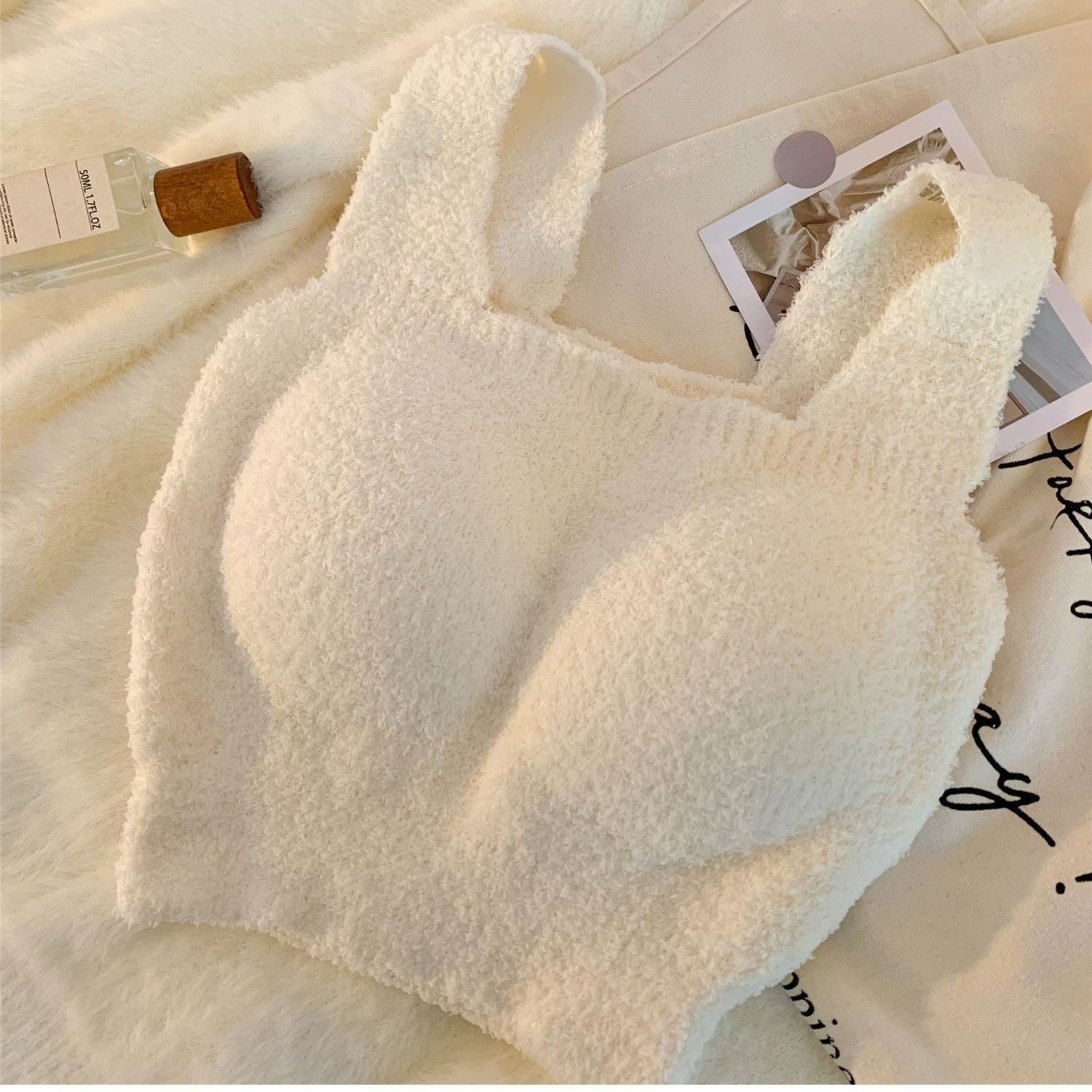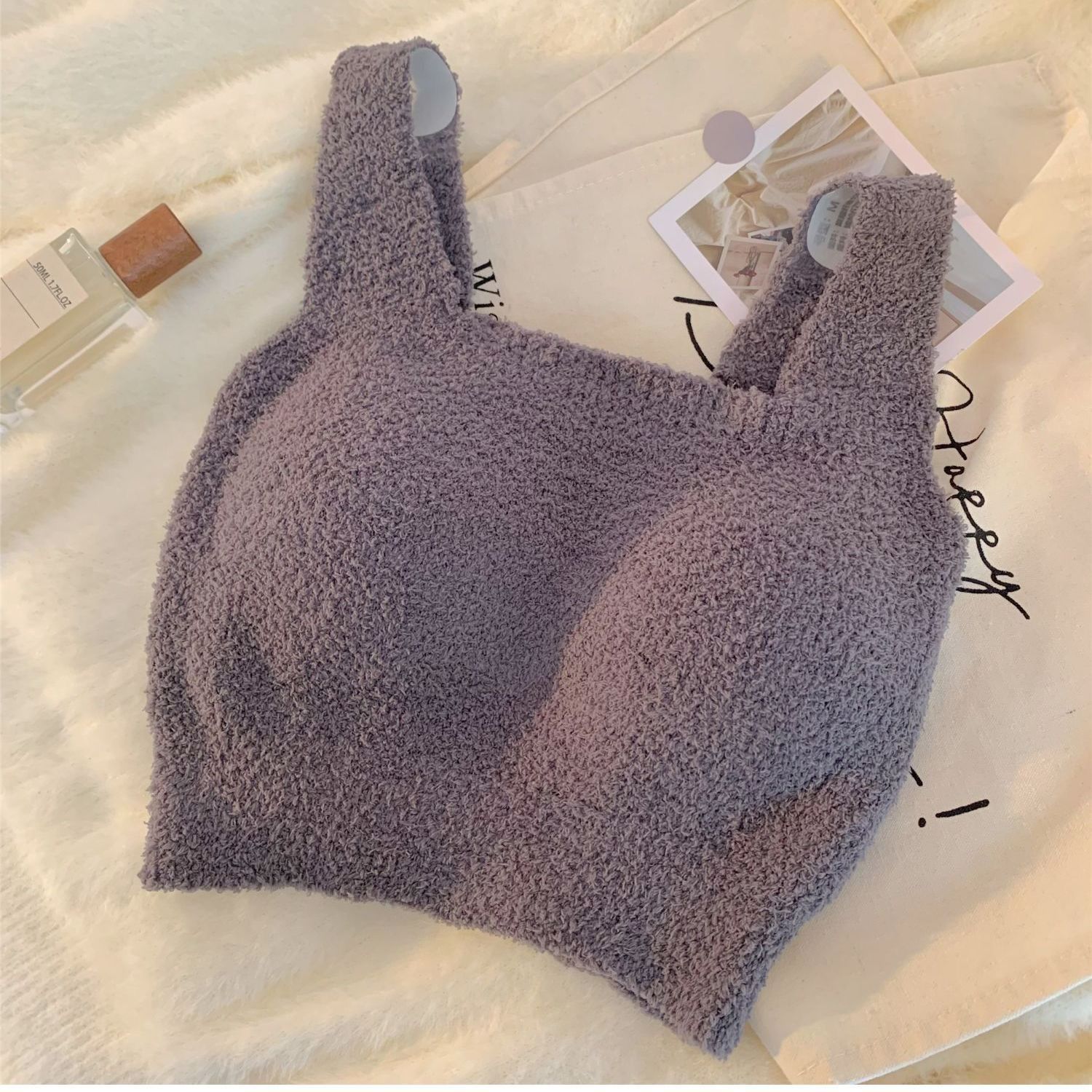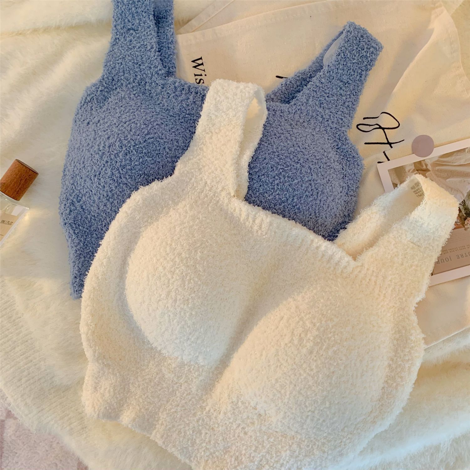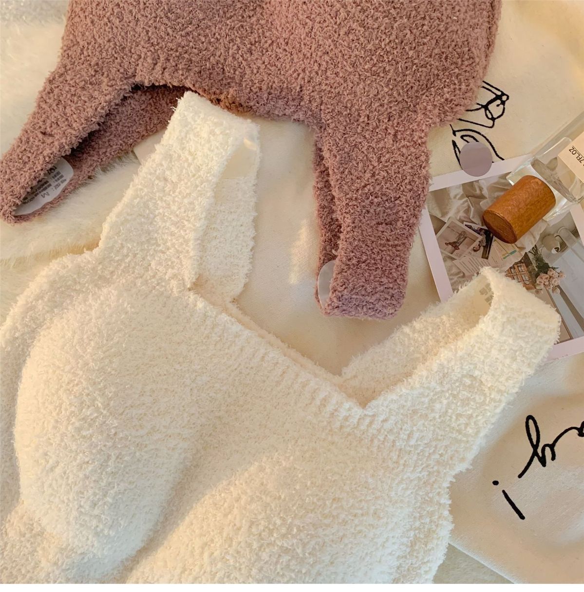 暖绒小羊羔~秋冬保暖背心女免穿文胸一体式少女冬季加绒bra内衣女