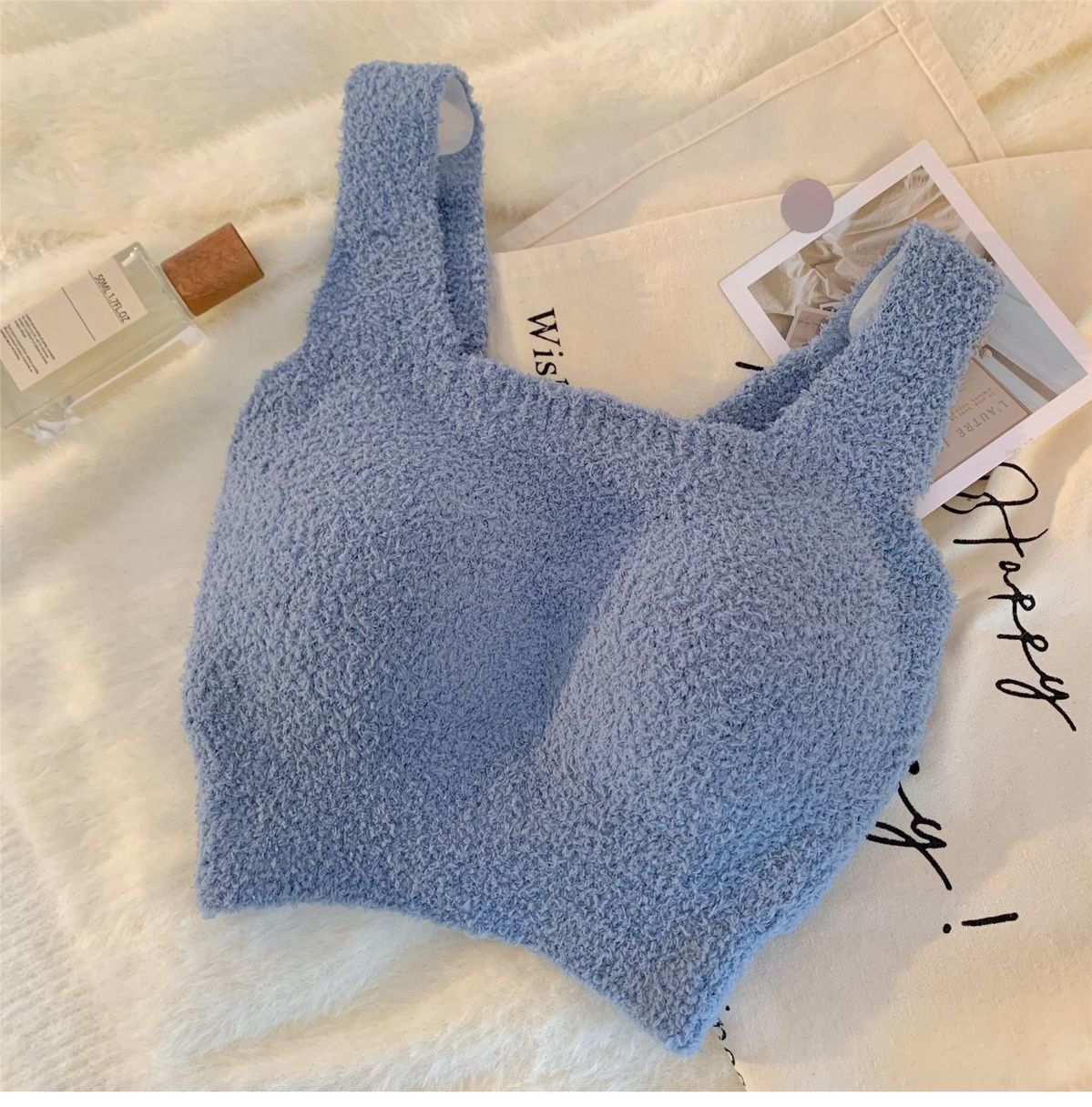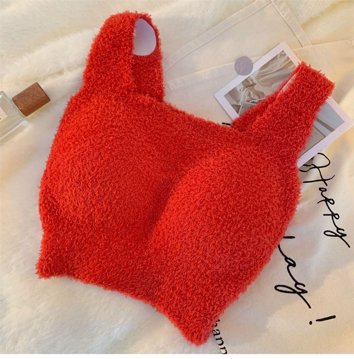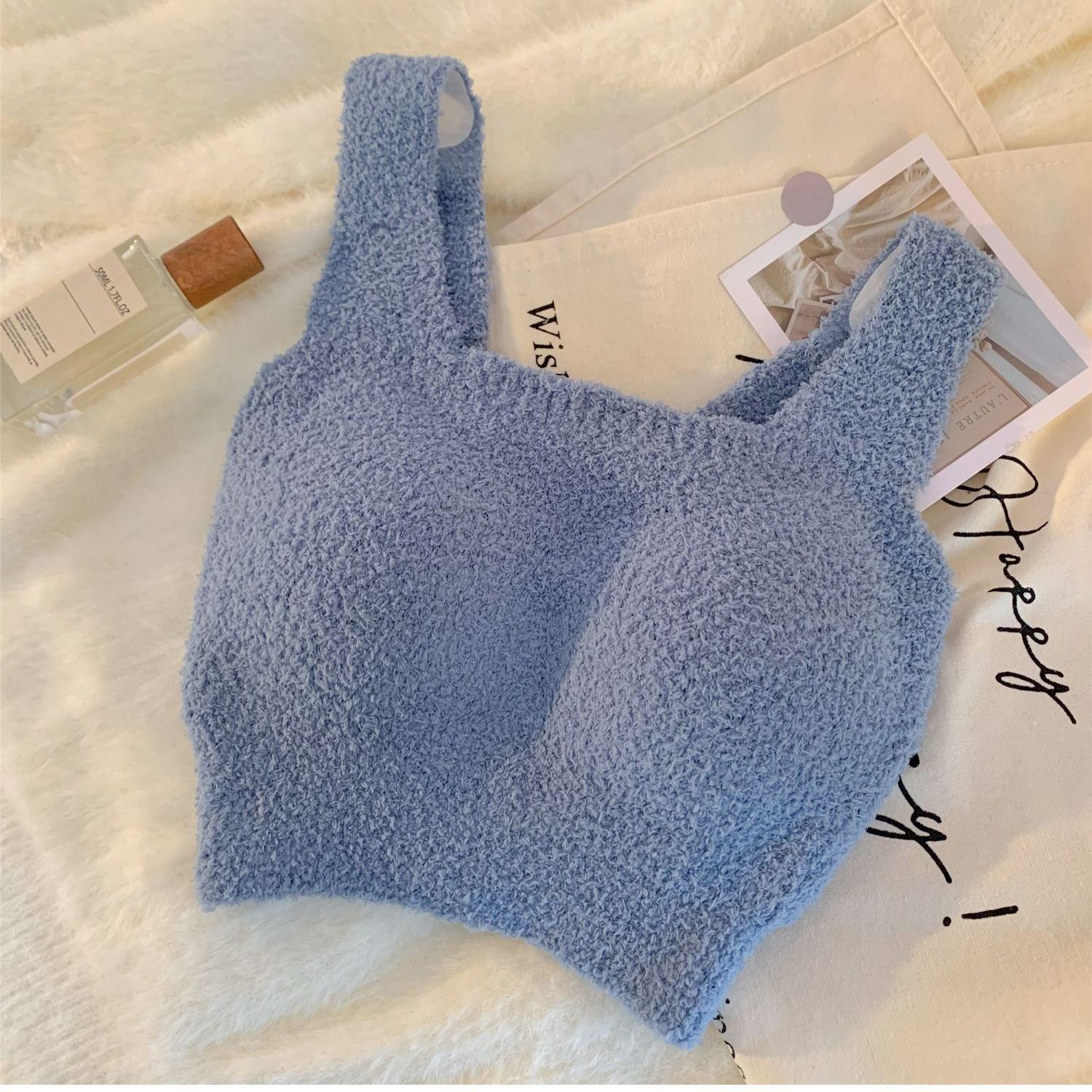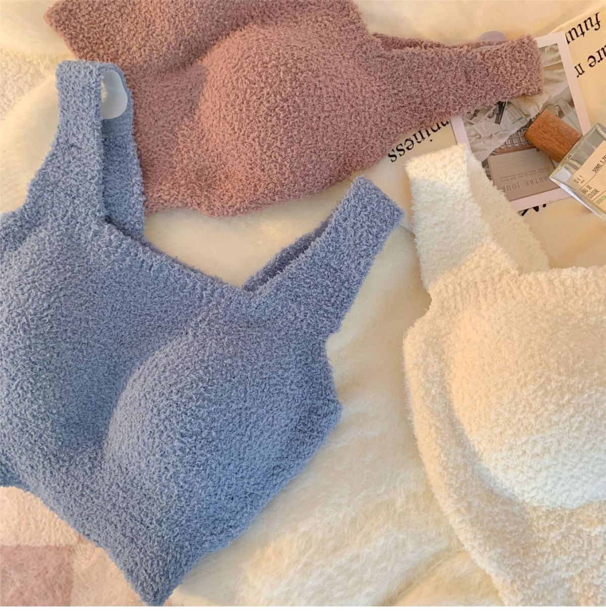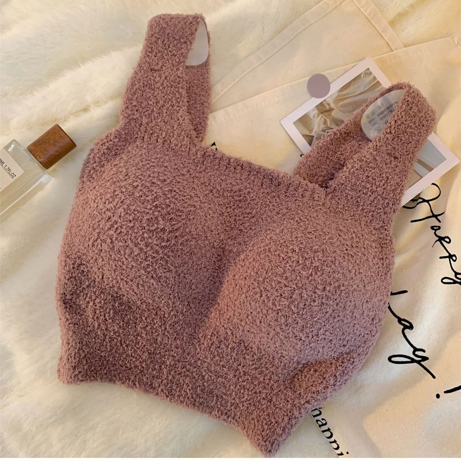 暖绒小羊羔~秋冬保暖背心女免穿文胸一体式少女冬季加绒bra内衣女