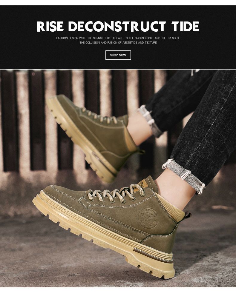 男鞋秋季新款英伦复古中帮马丁靴男士休闲工装鞋潮流低帮短靴皮鞋