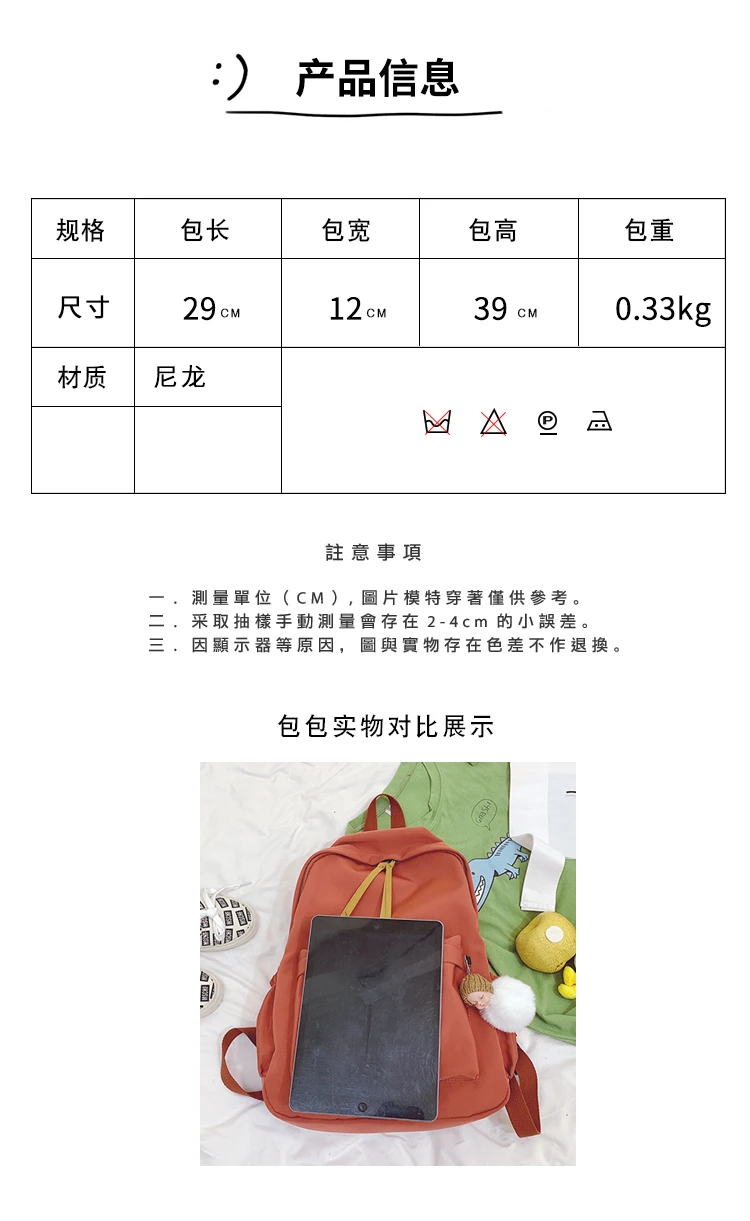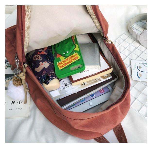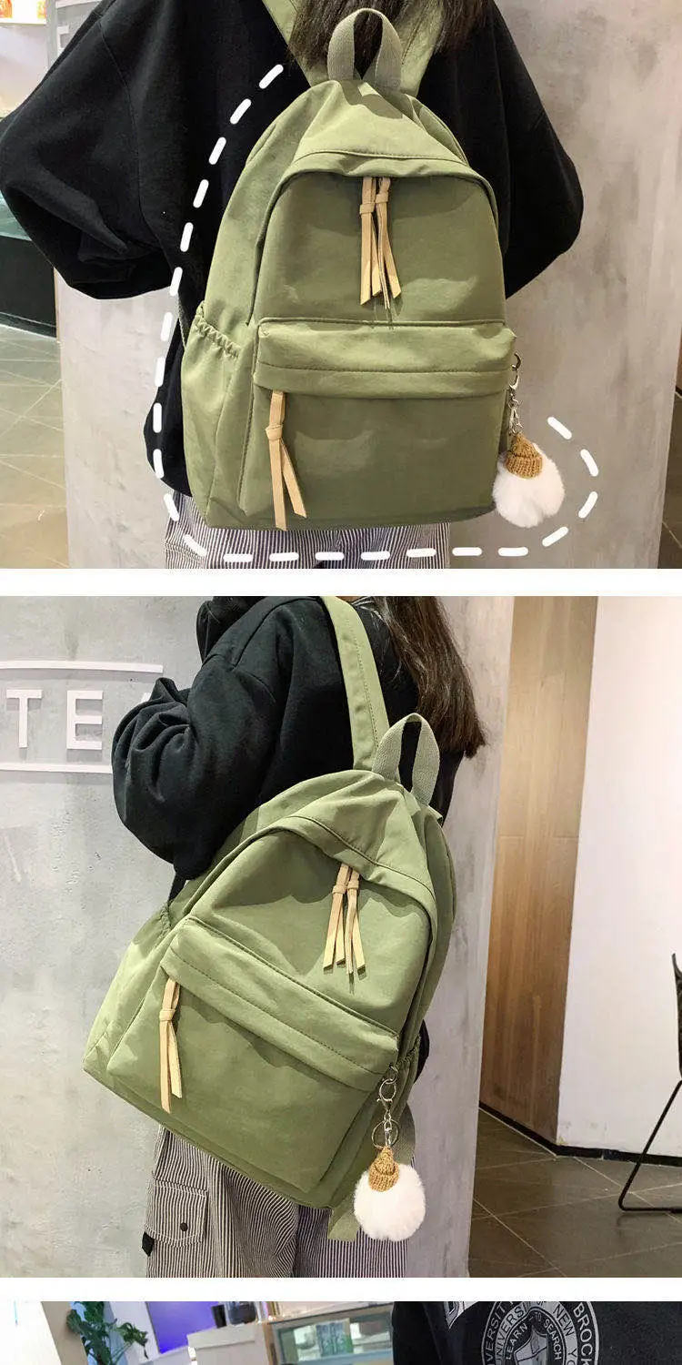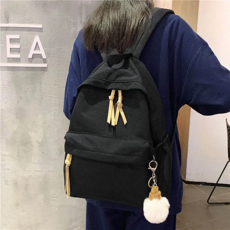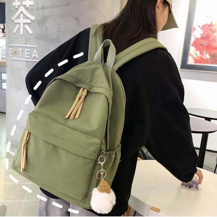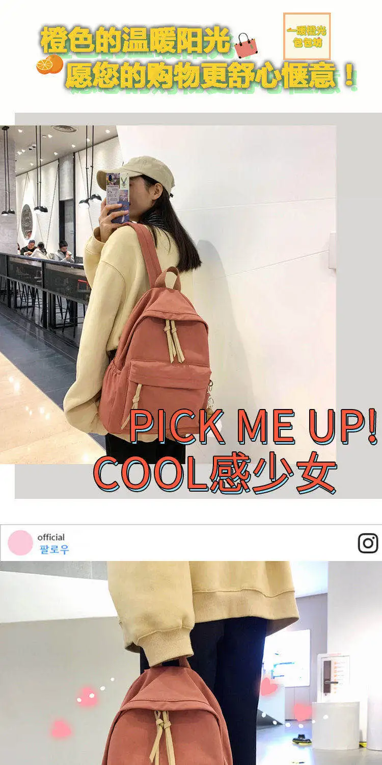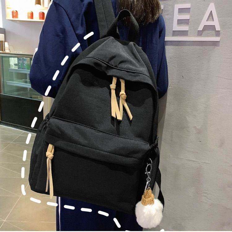 ins韩版书包女初中高中学生简约百搭大背包森系帆布少女双肩包潮