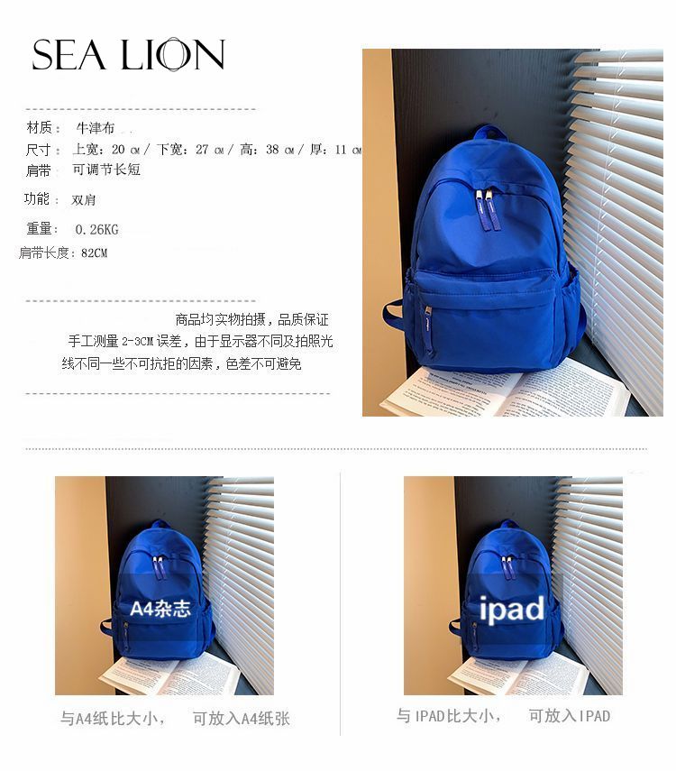 SEA LION研学旅行森系简约大学生书包百搭高中生防水双肩背包外出
