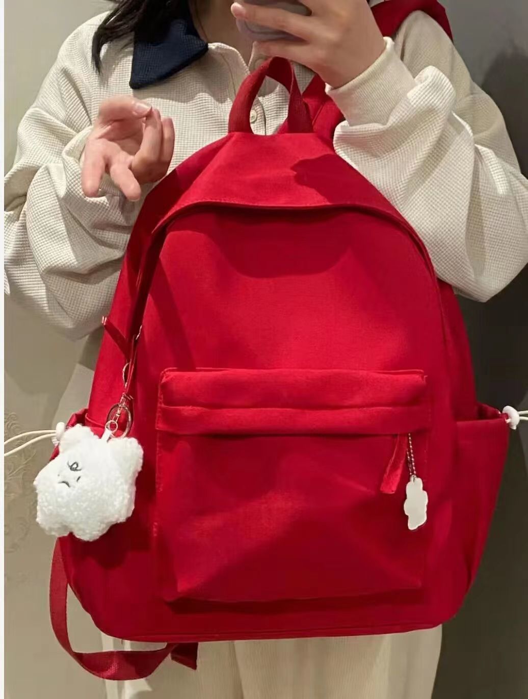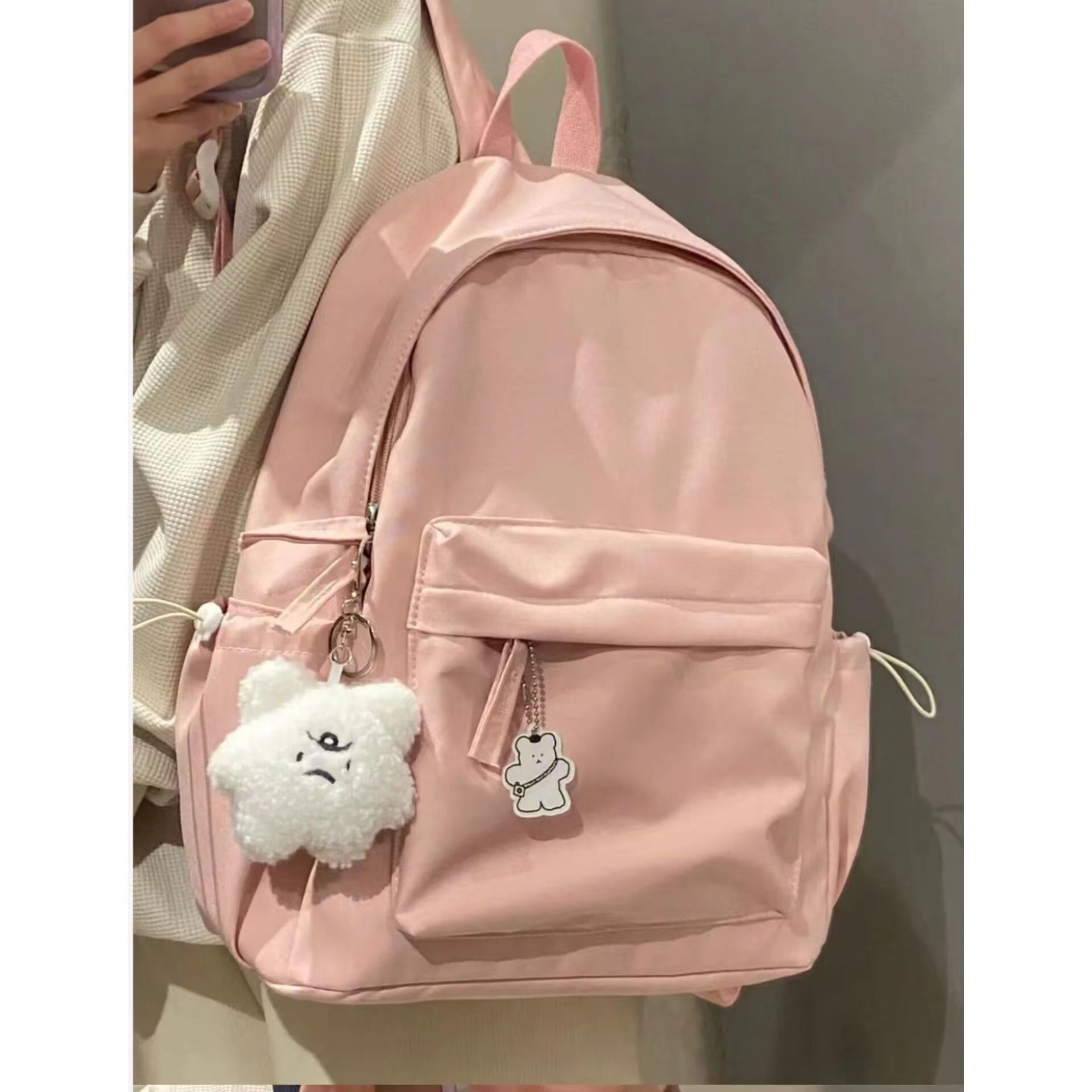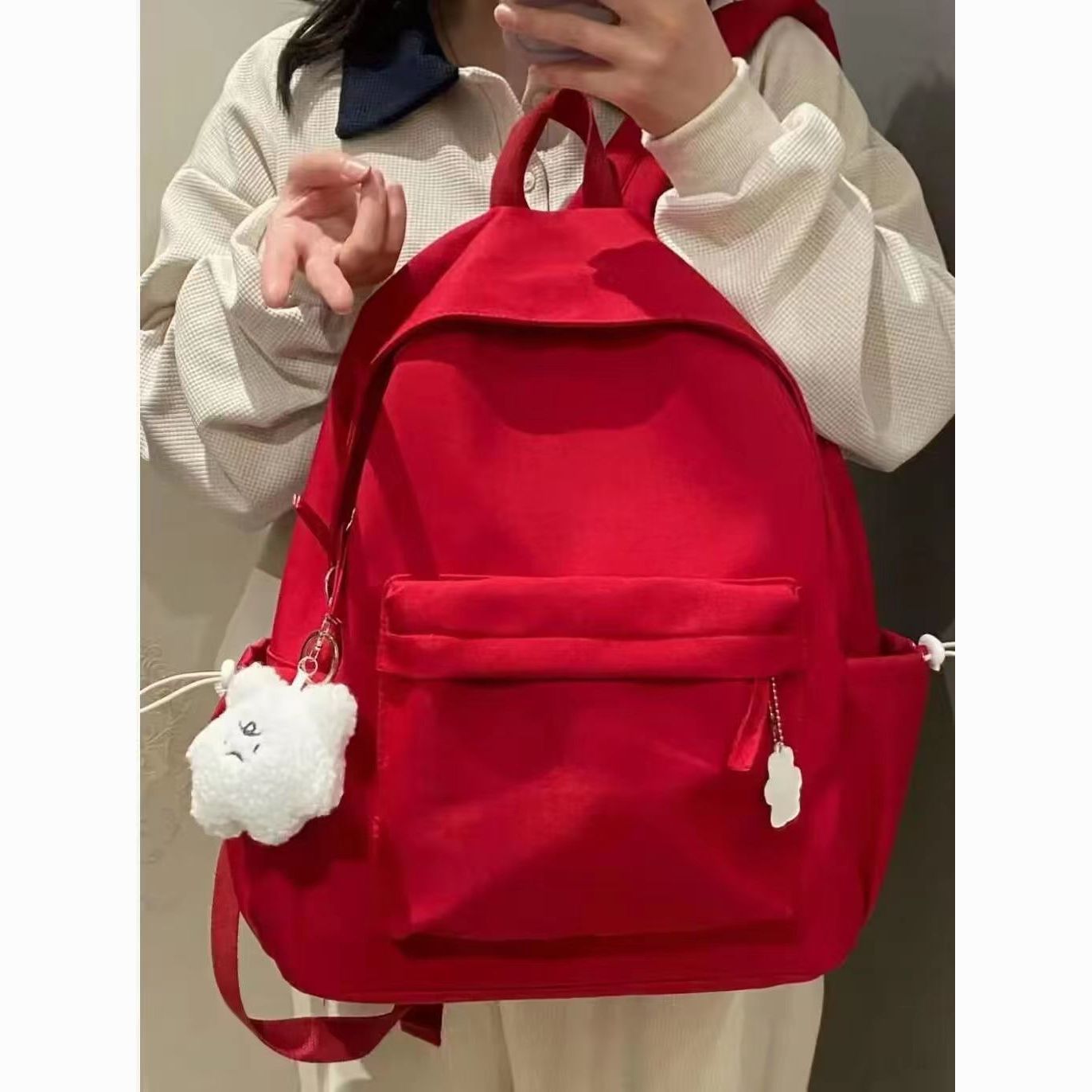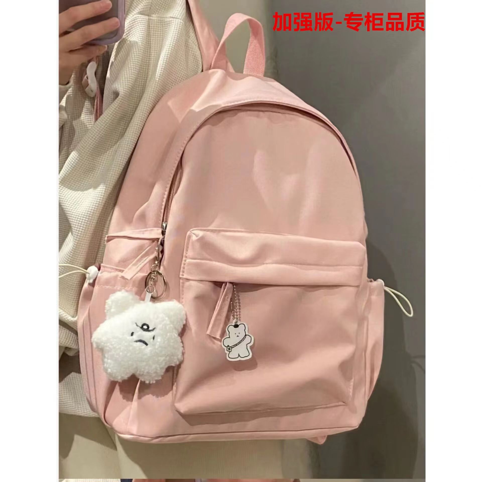 日系纯色少女书包女ins风韩版简约百搭初高中学生小清新双肩背包