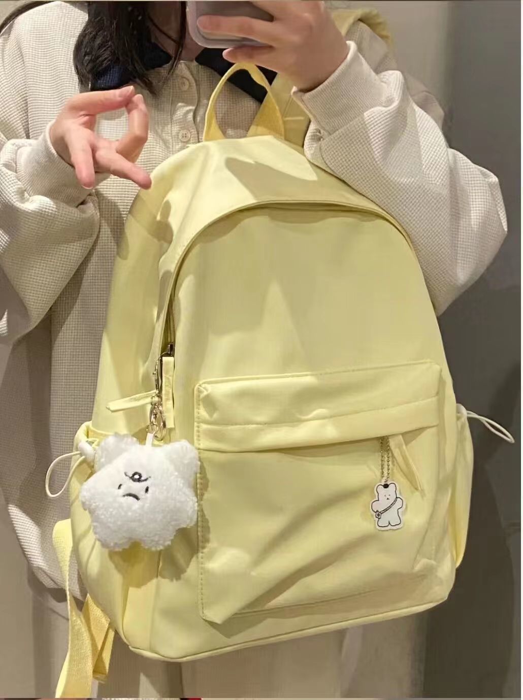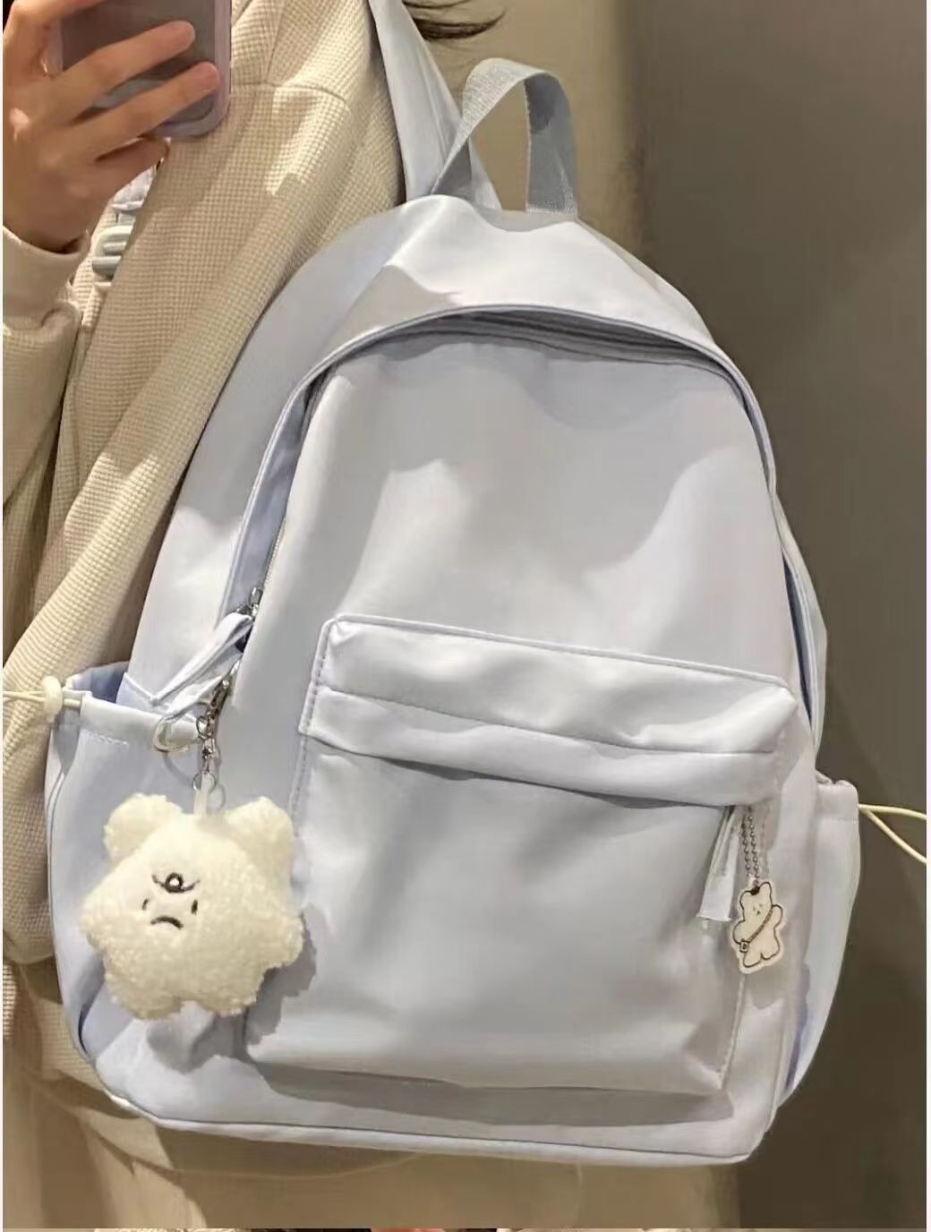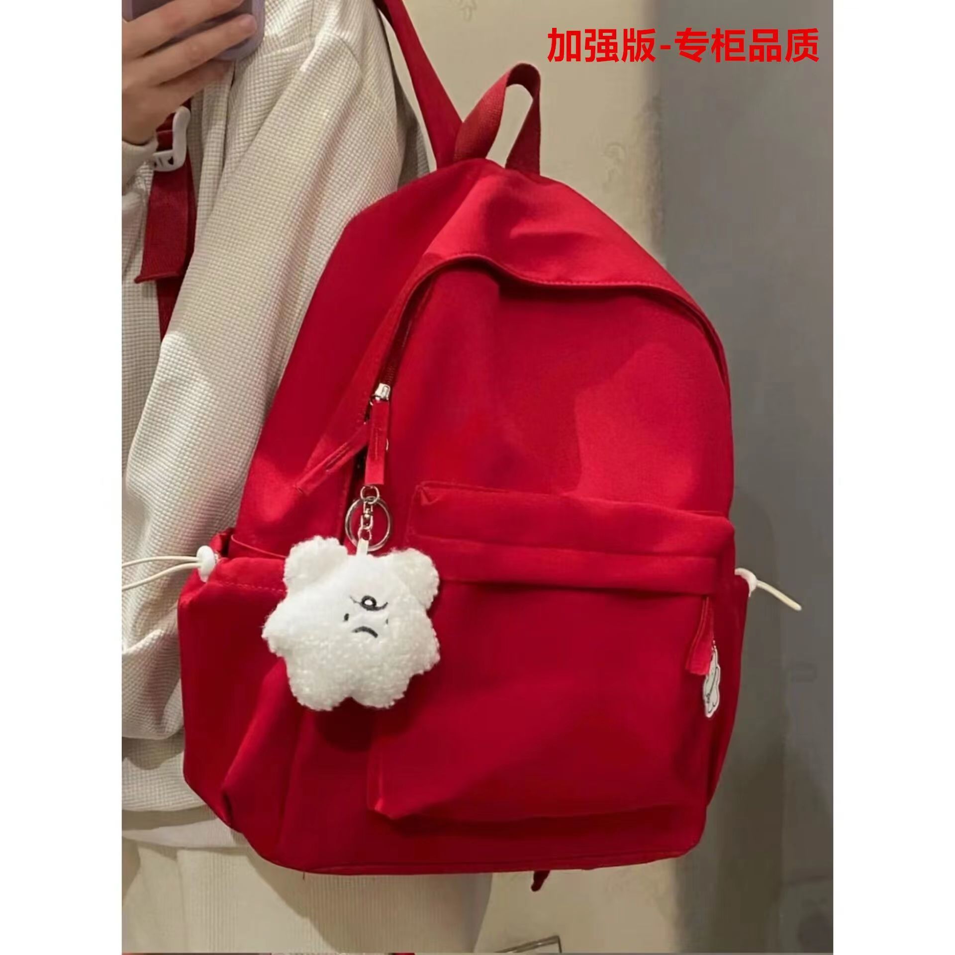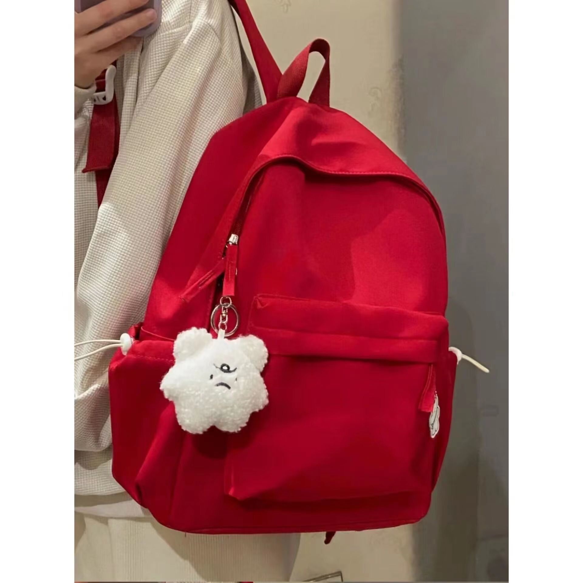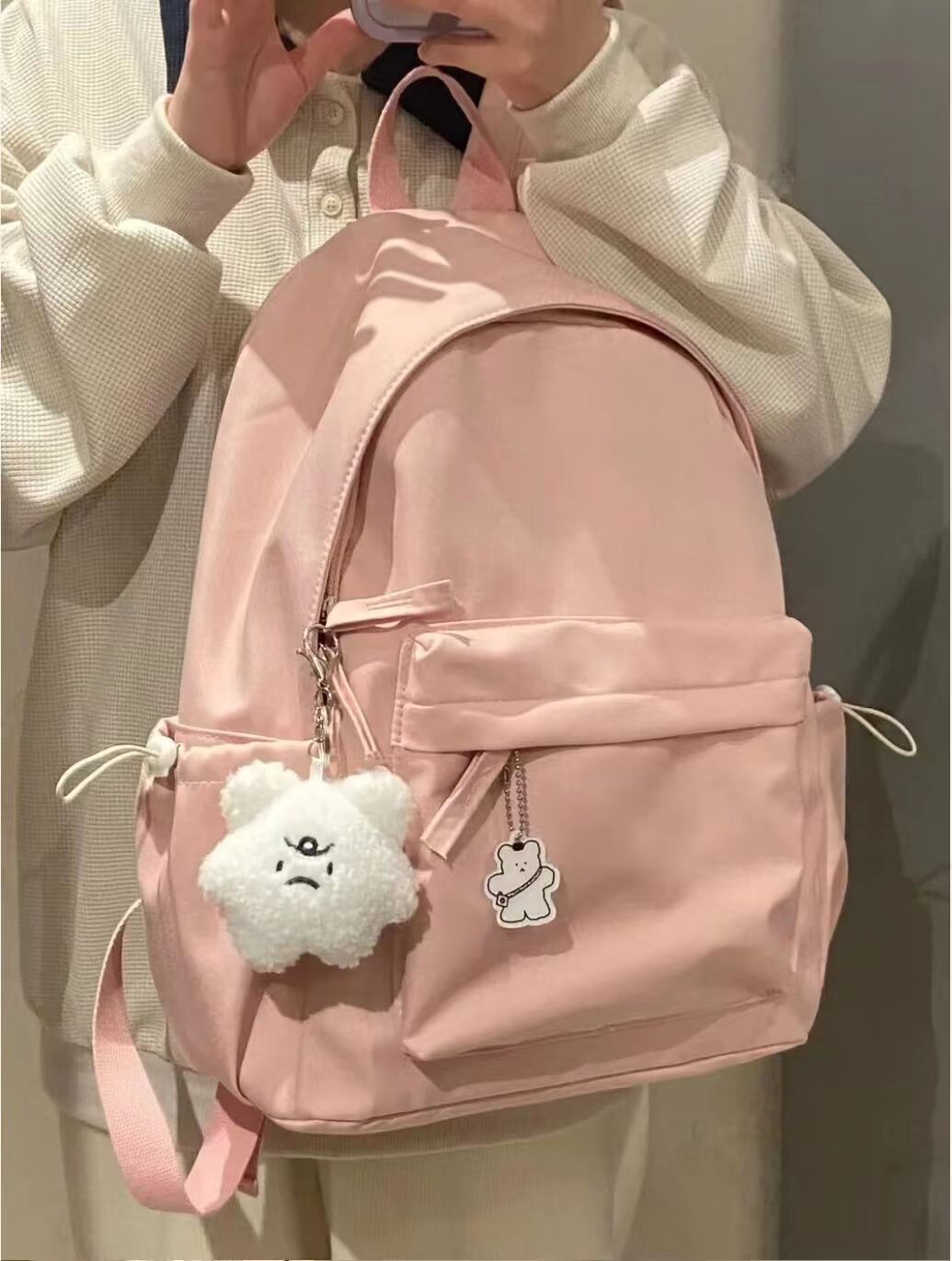 日系纯色少女书包女ins风韩版简约百搭初高中学生小清新双肩背包