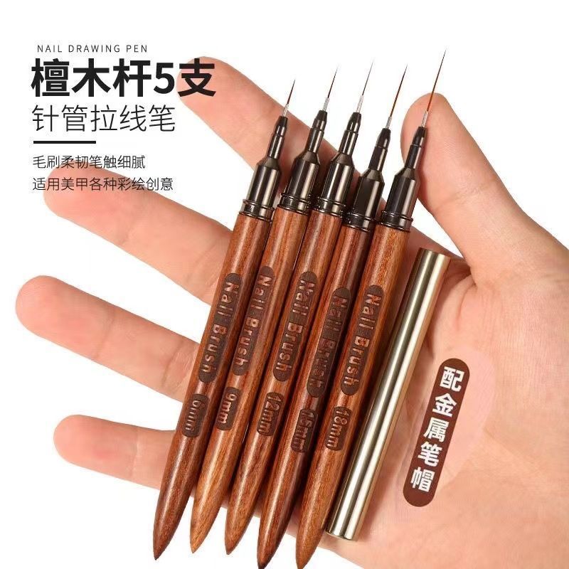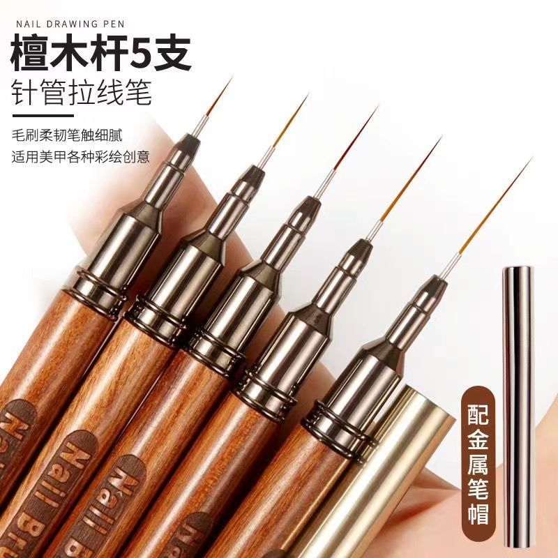 檀木美甲日式针管拉线笔极细超细套装美甲店专业专用彩绘勾线刷子