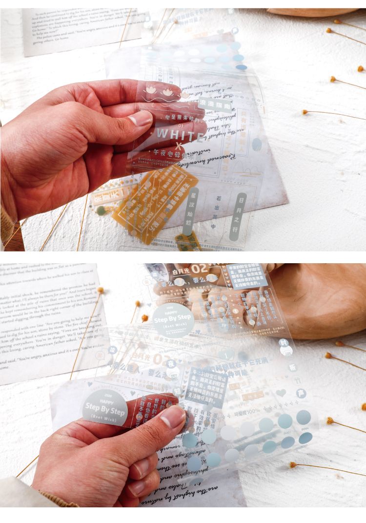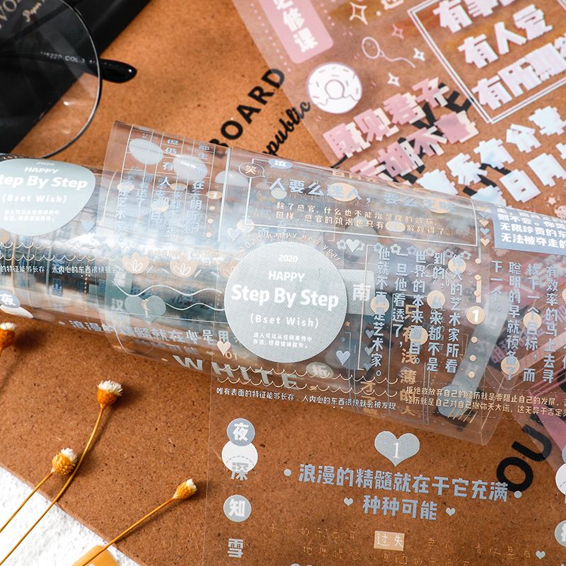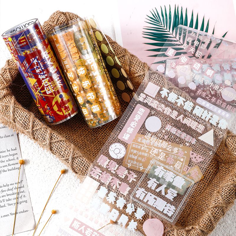 盐系创意文字透明 PET手帐胶带 圆点手账拼贴diy装饰贴纸贴画防水