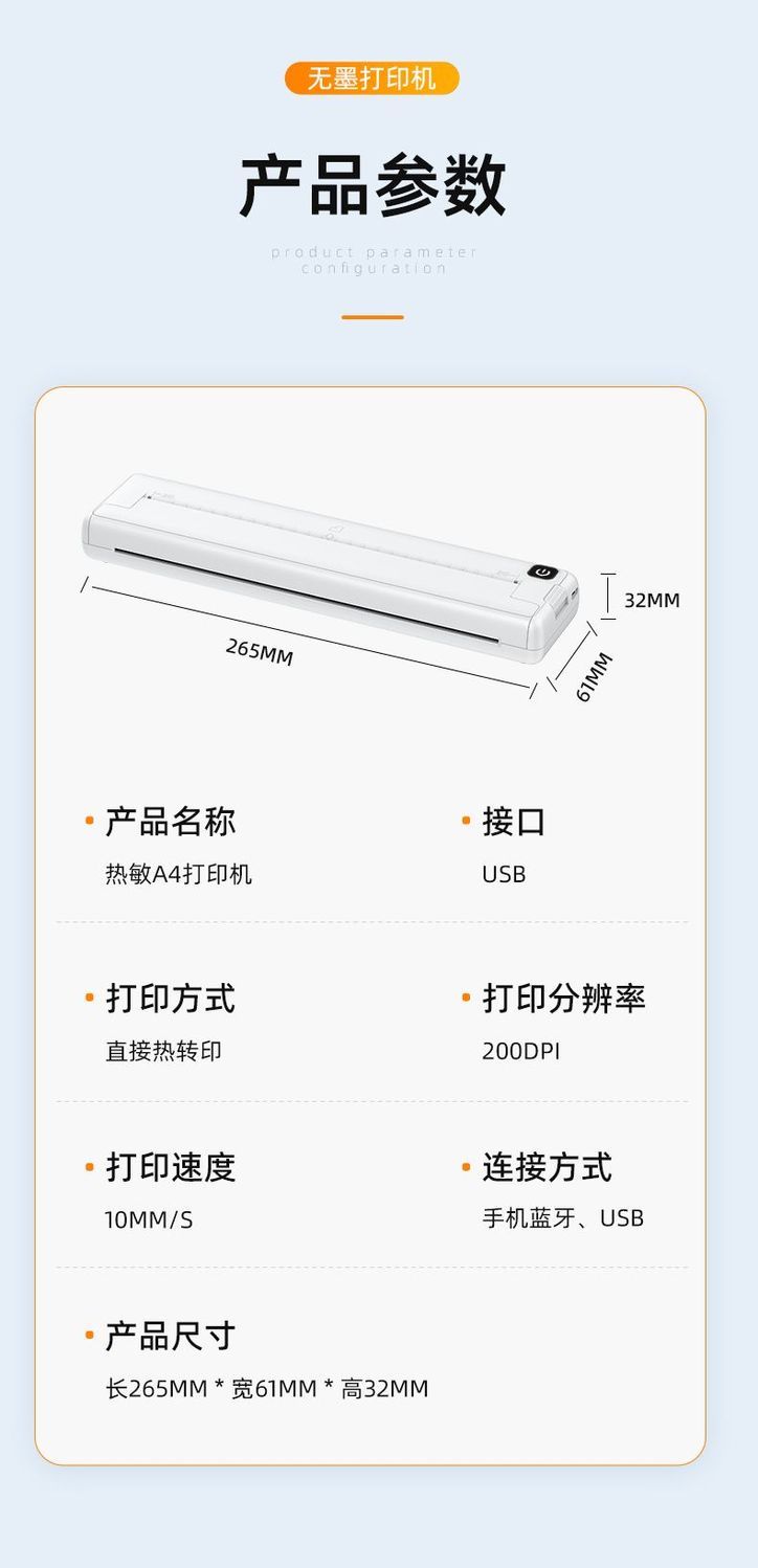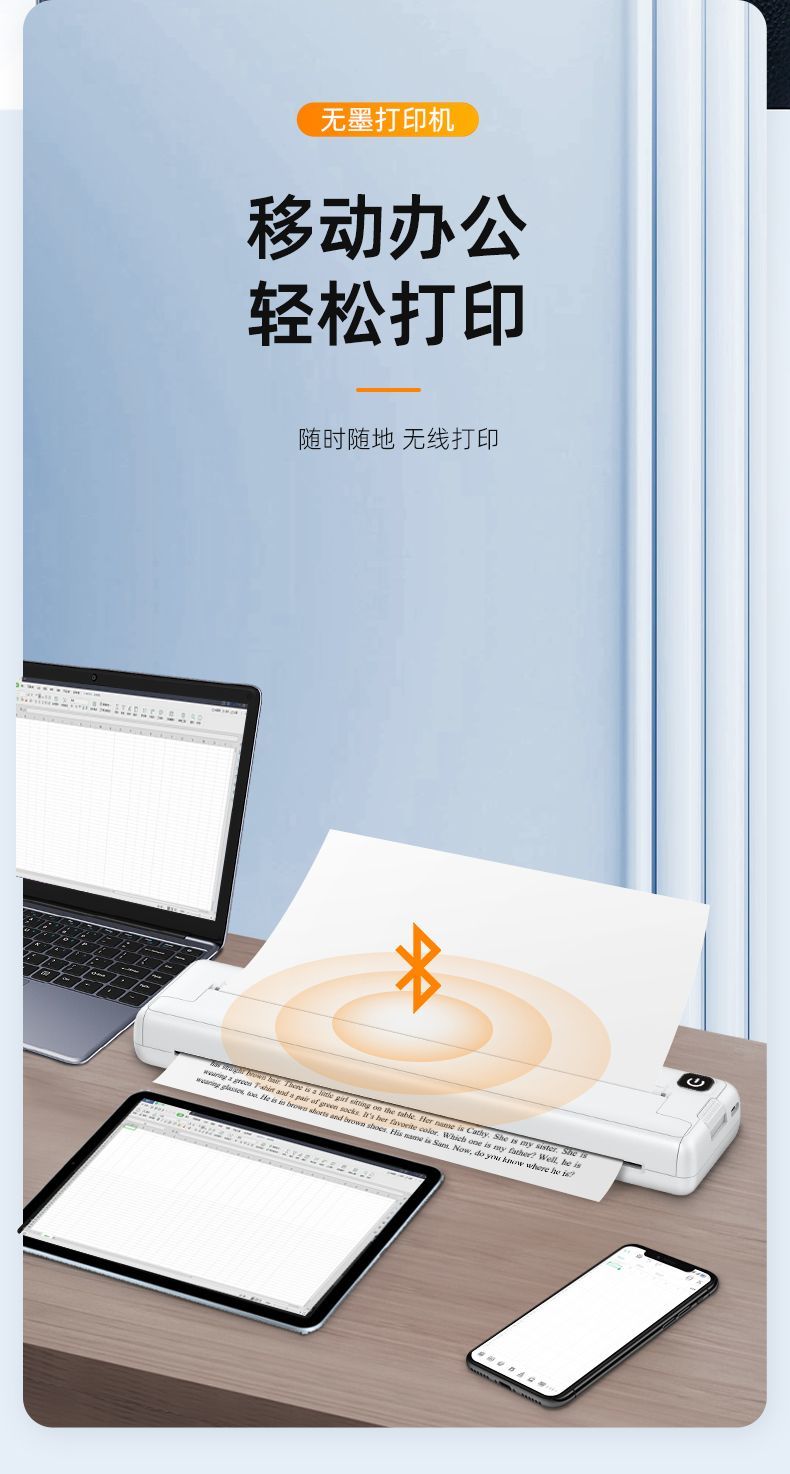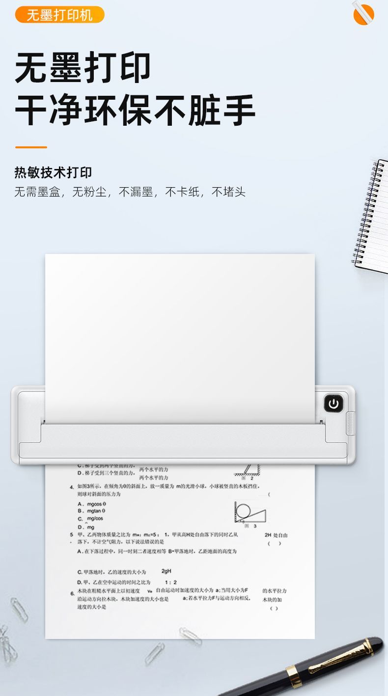 A4小型家用学生作业错题机试卷手机蓝牙连接打印便携式热敏打印机
