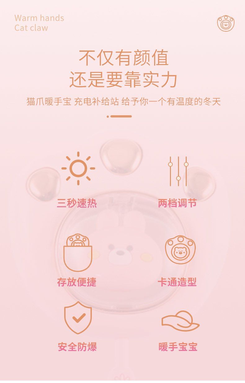 猫爪暖手宝充电版新升级随身便携生日礼物送女生猫爪USB小暖手宝