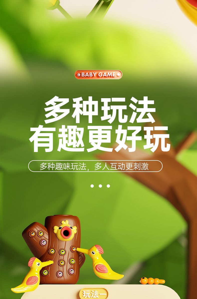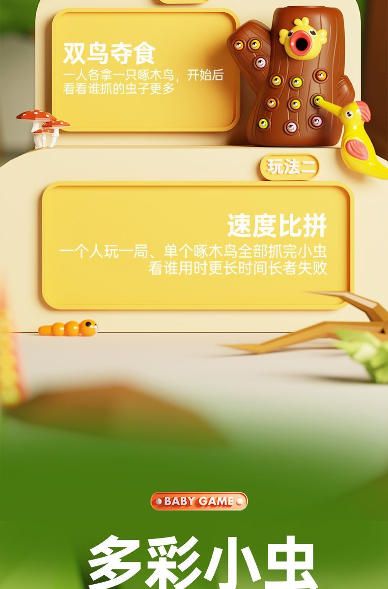 啄木鸟捉虫玩具小鸟磁性益智1-3岁2儿童宝宝男女小孩智力开发游戏