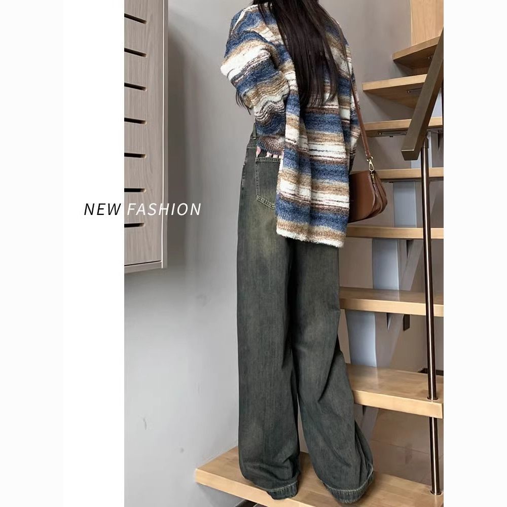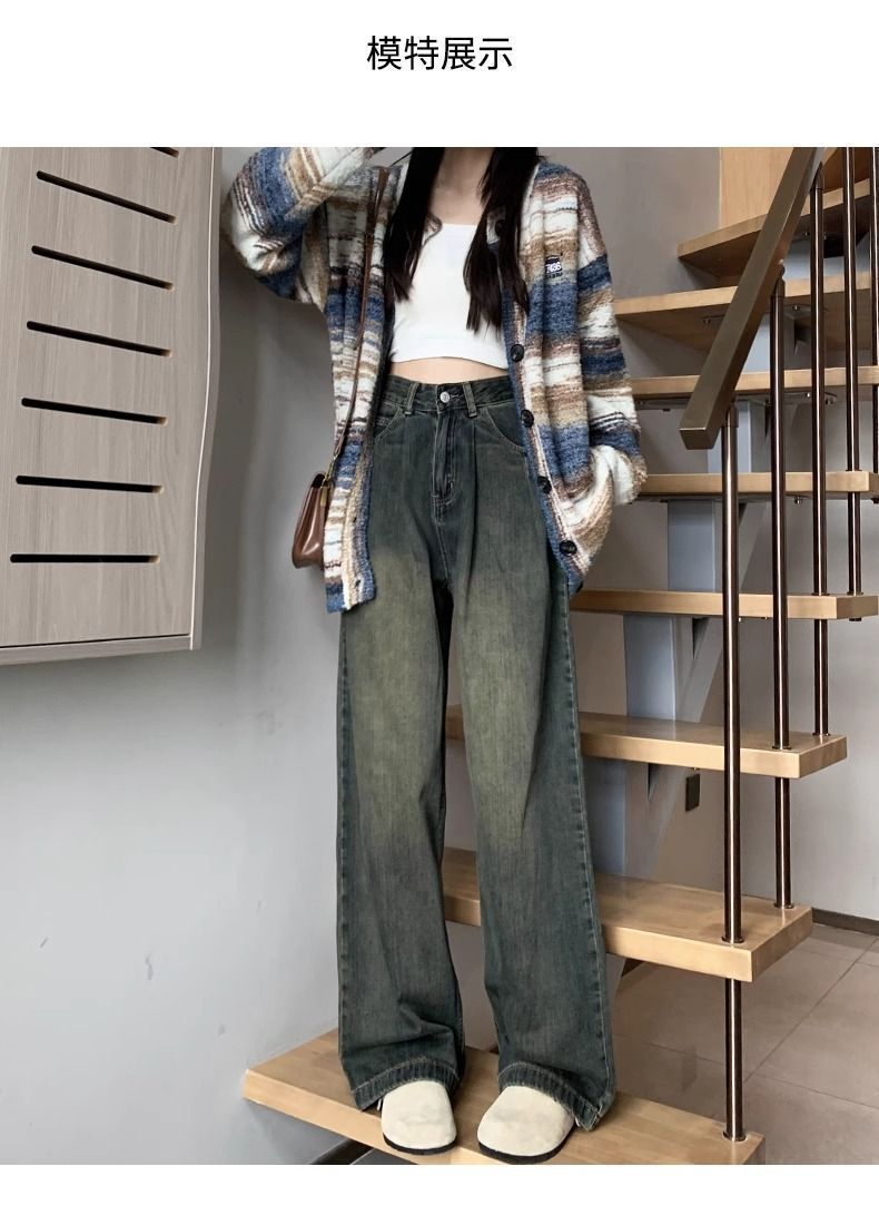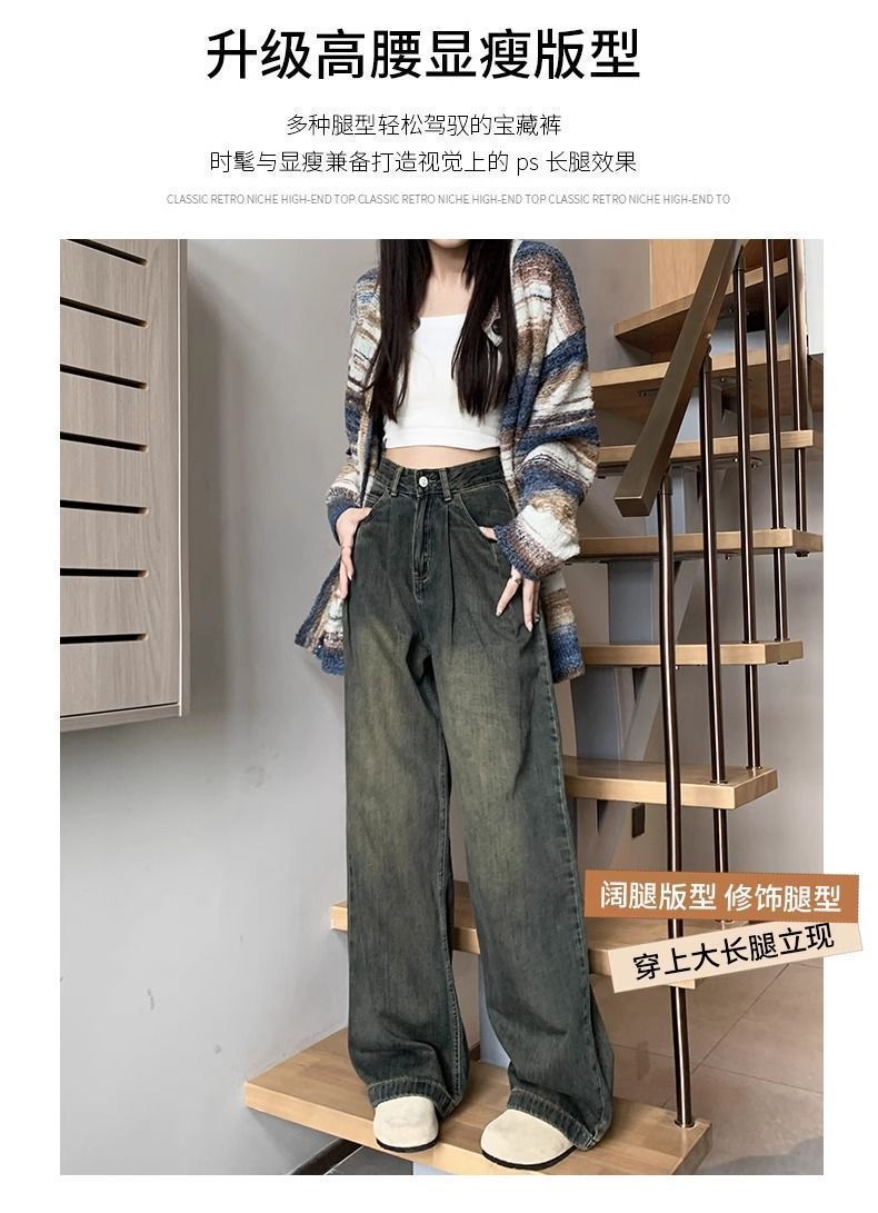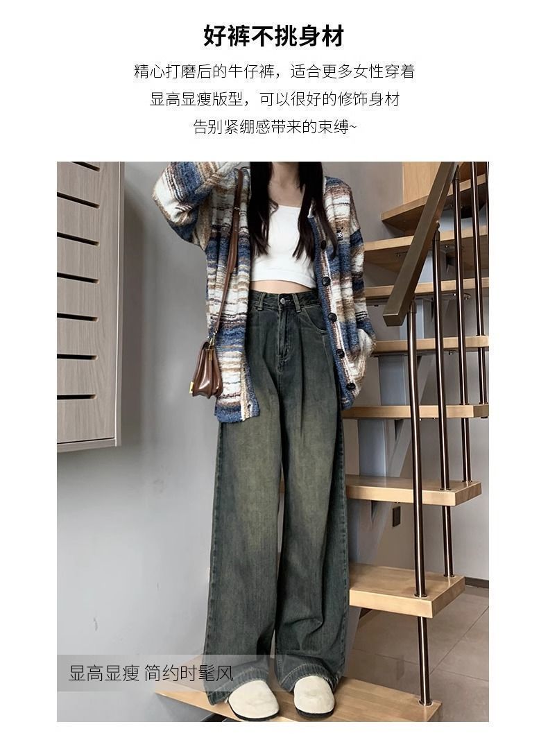 水泥灰复古阔腿牛仔裤女秋季新款高腰宽松显瘦直筒垂感拖地裤ins