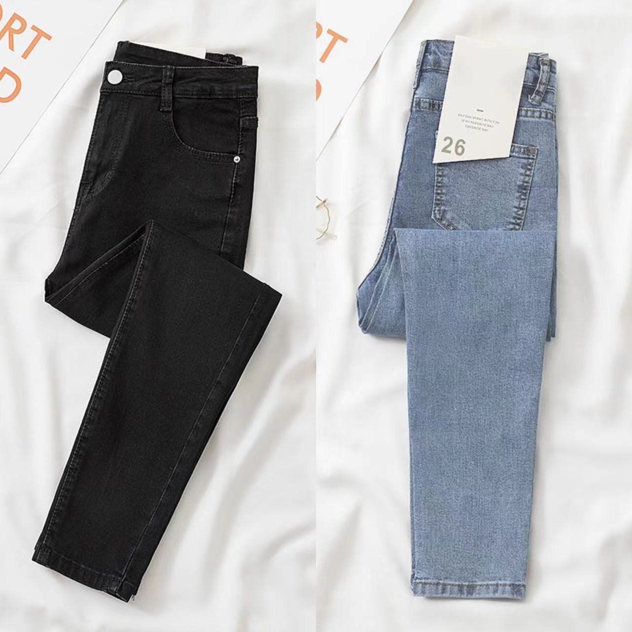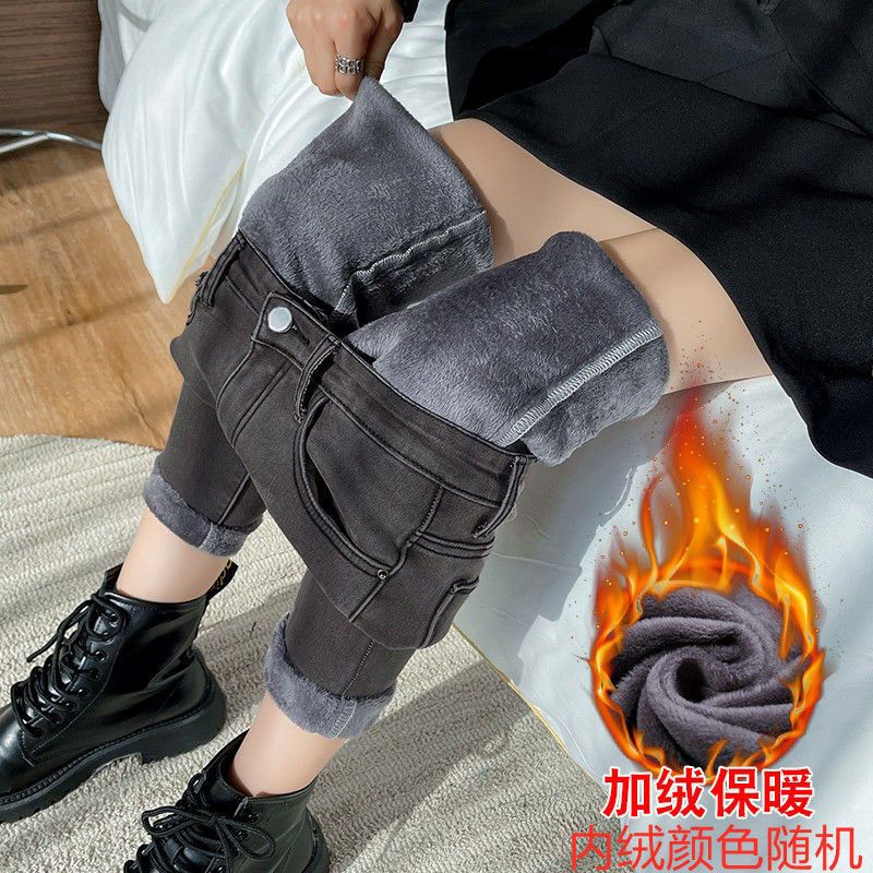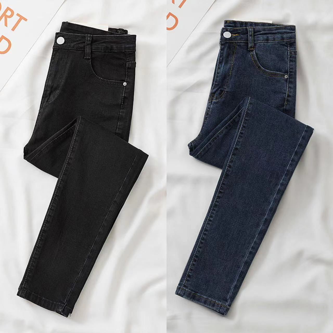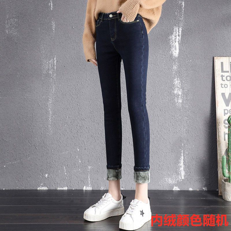 70-200斤大码弹力牛仔裤女2022新款加绒高腰百搭小脚紧身铅笔裤子