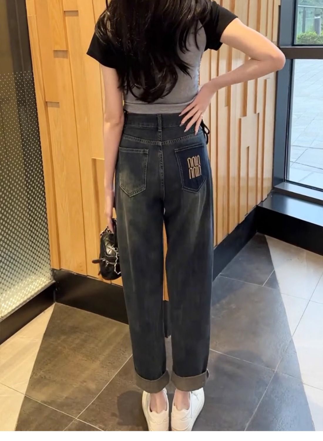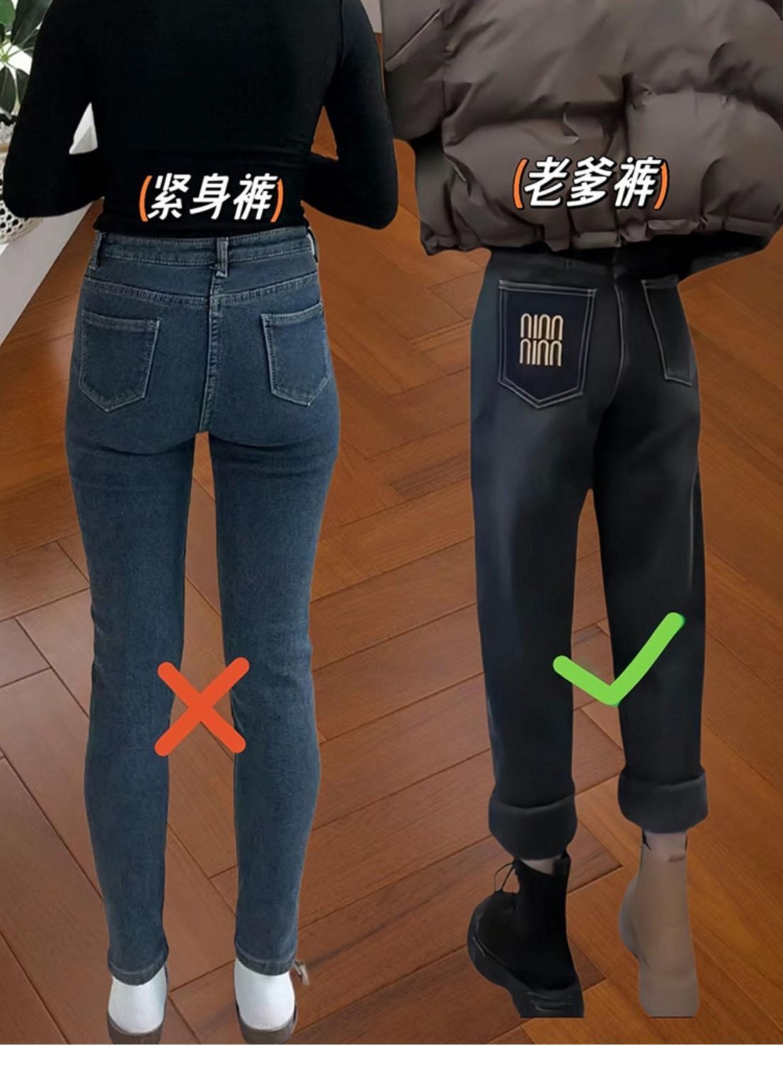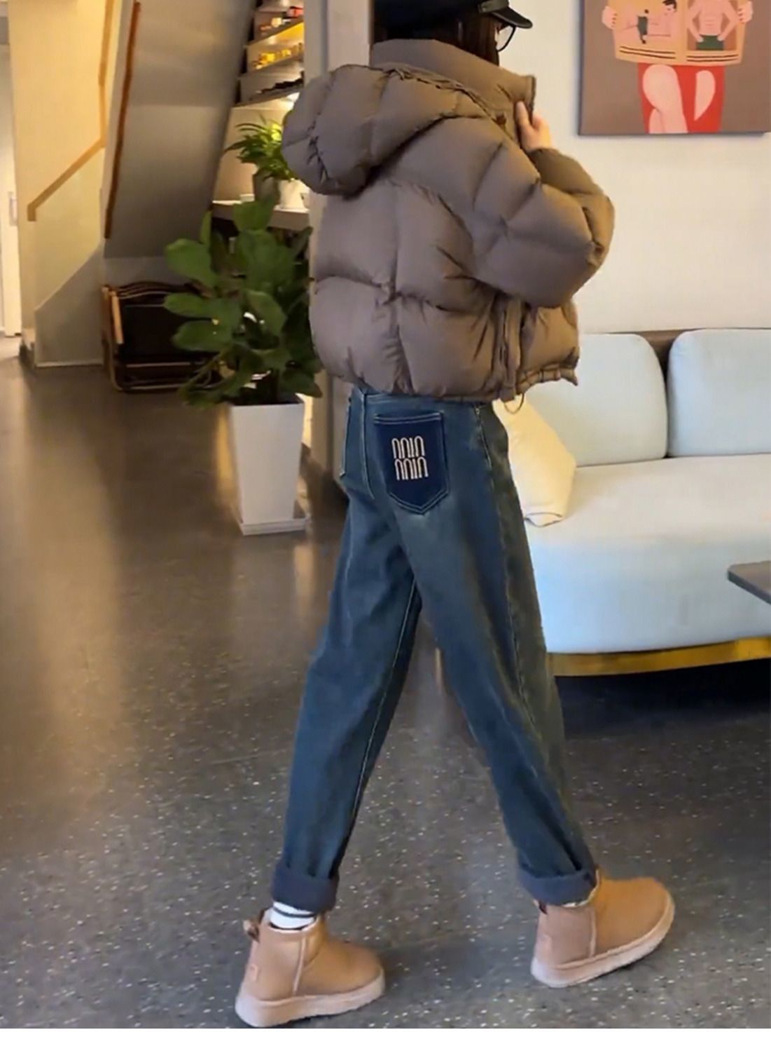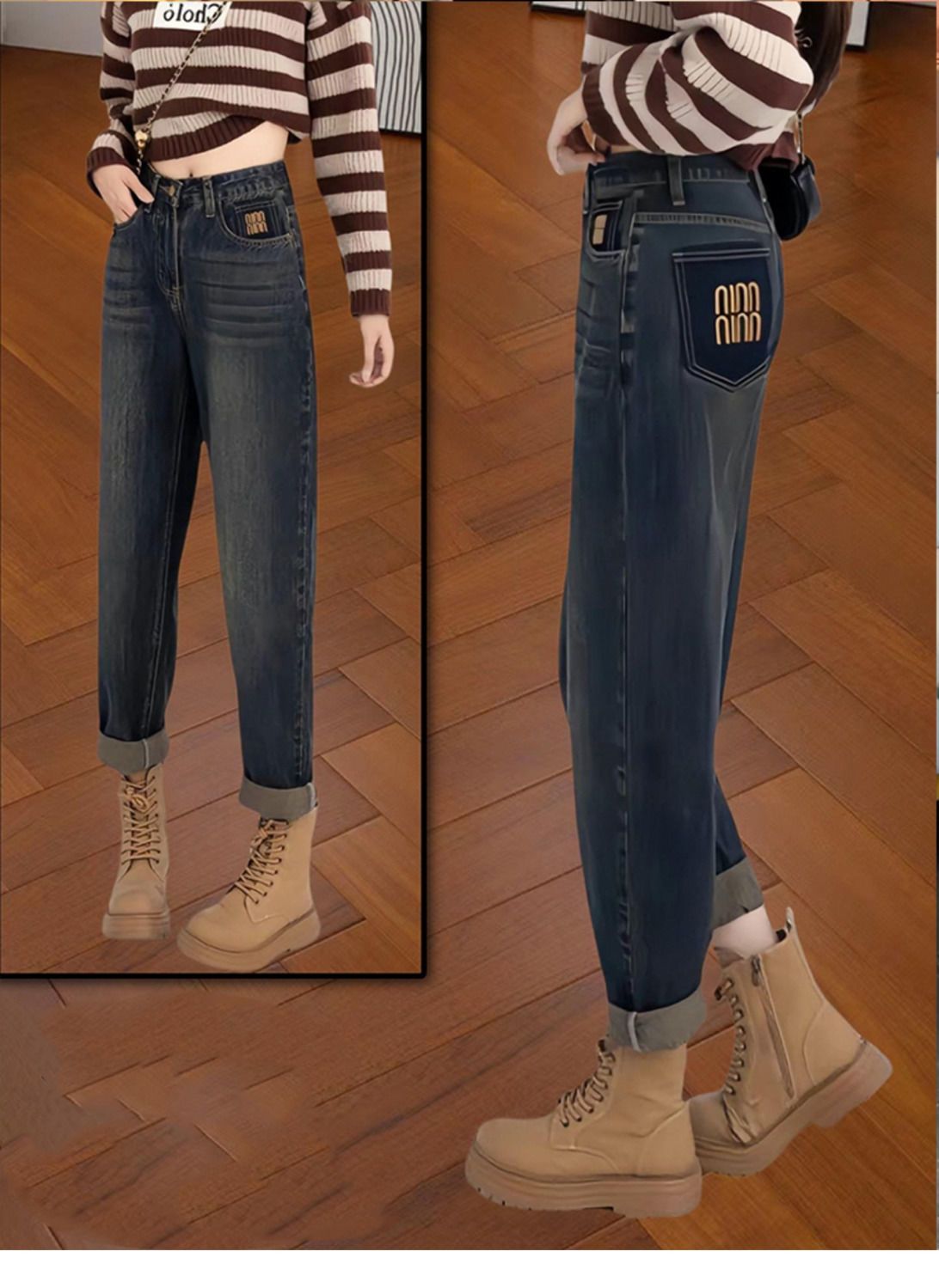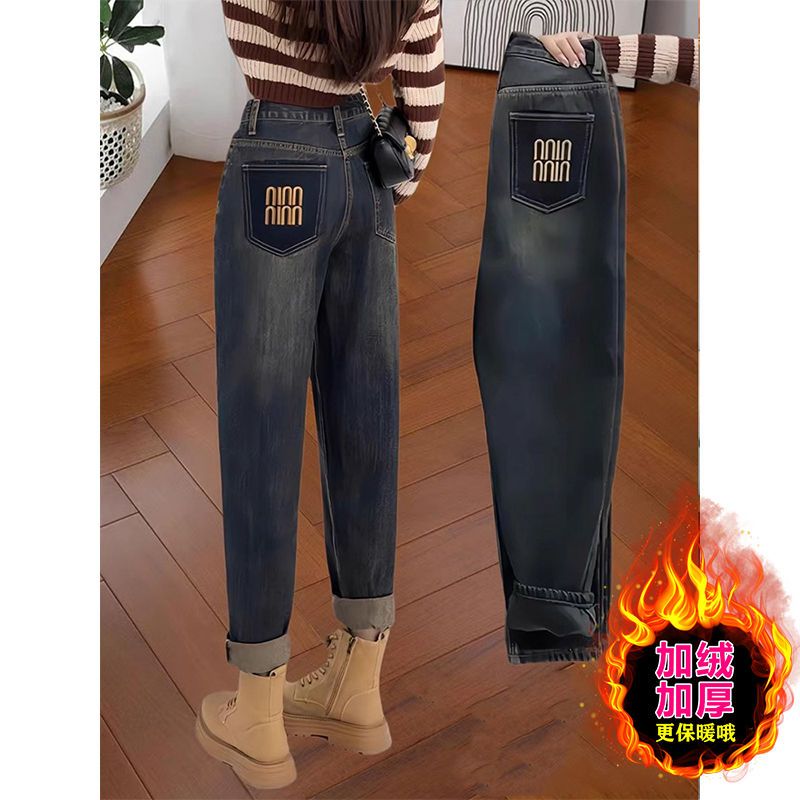 哈伦牛仔裤女秋冬新款加绒加厚宽松遮胯显瘦大码萝卜裤高腰老爹裤