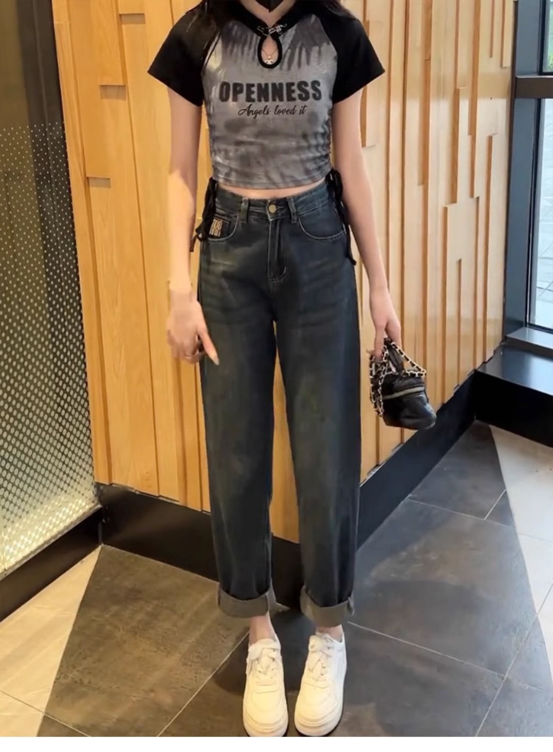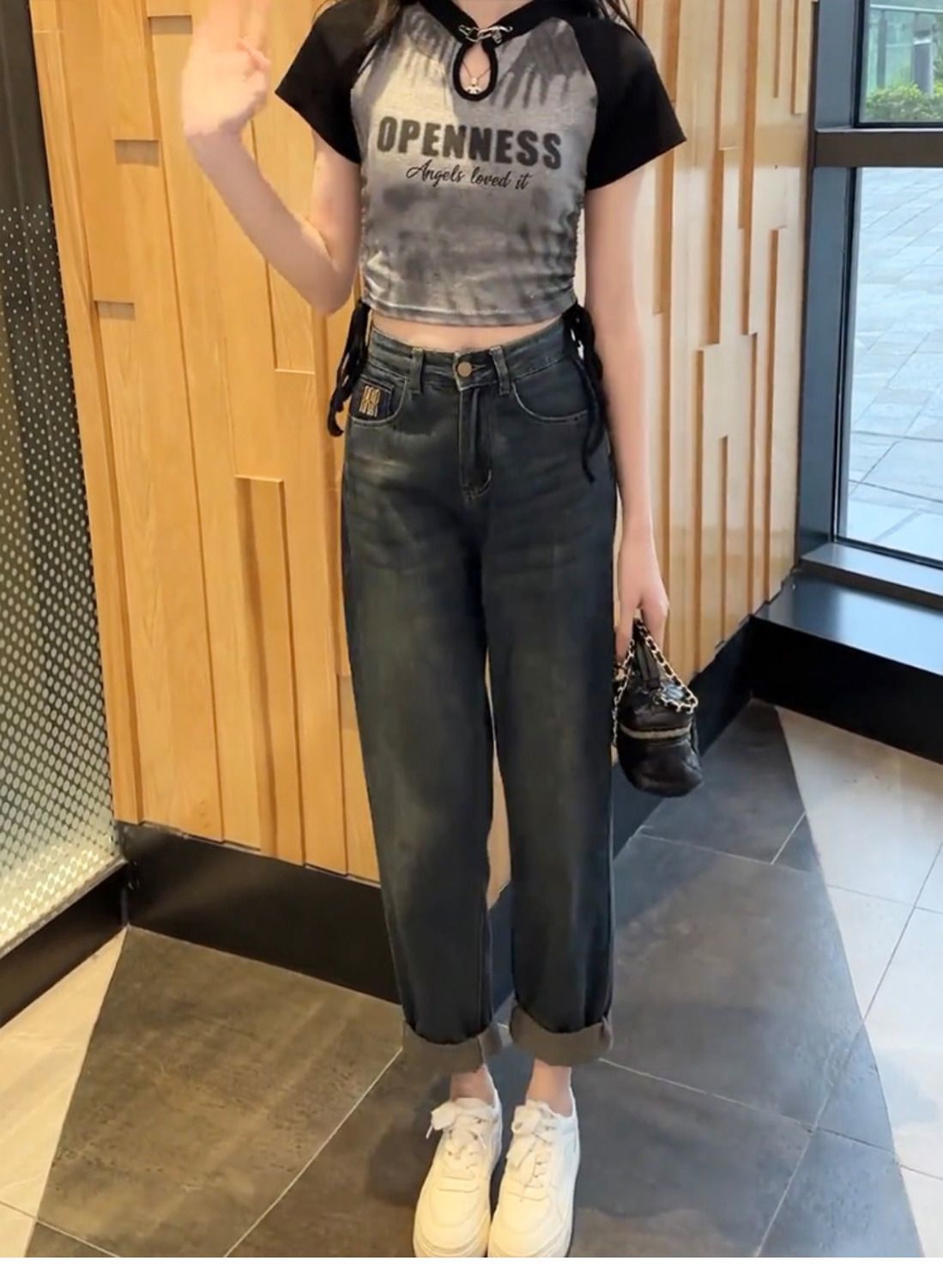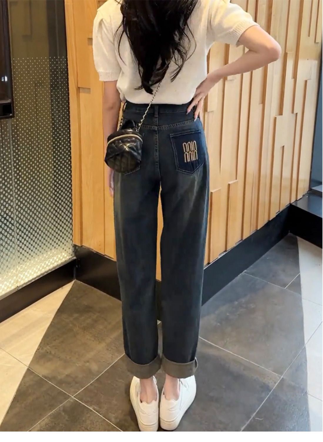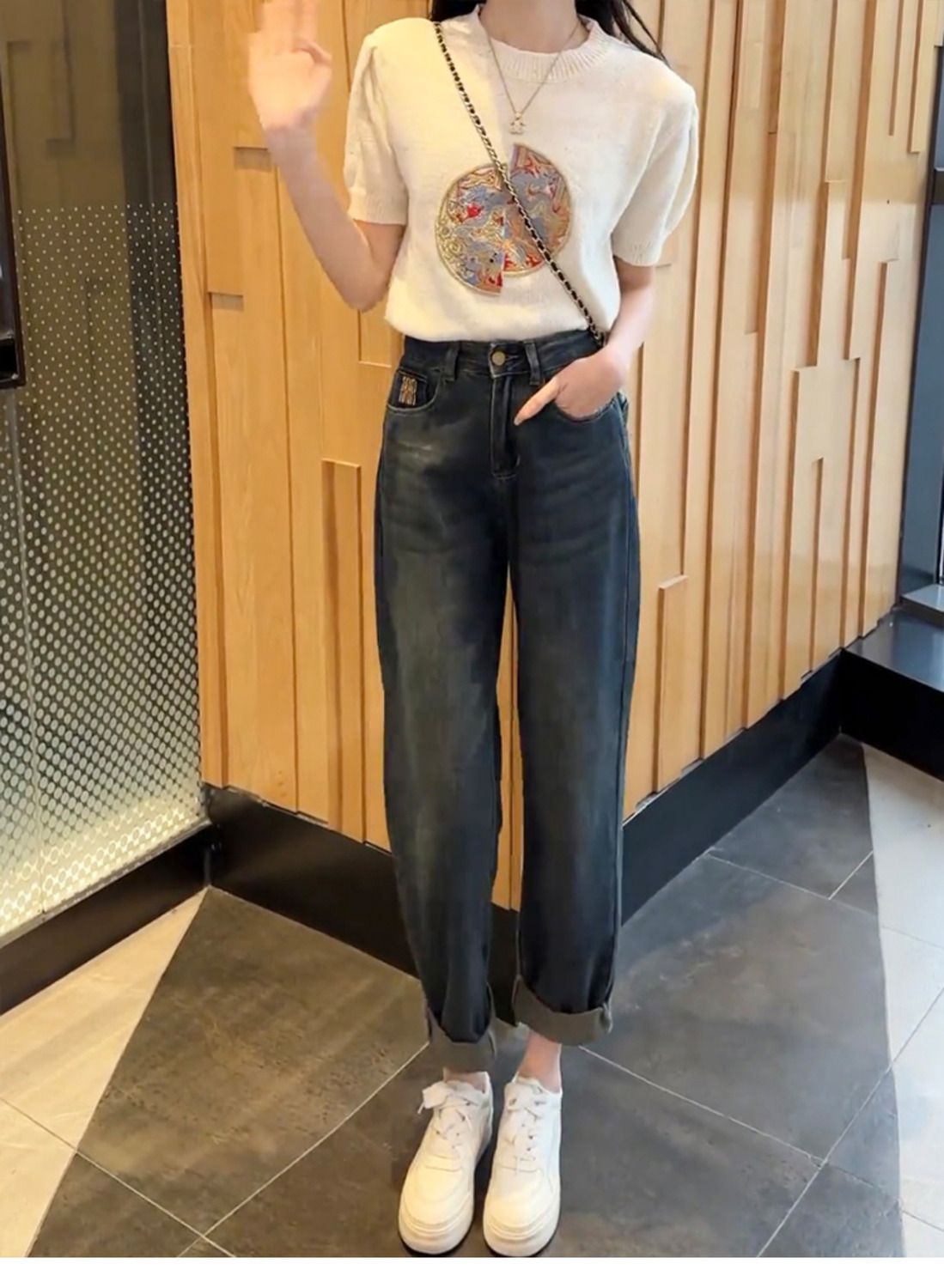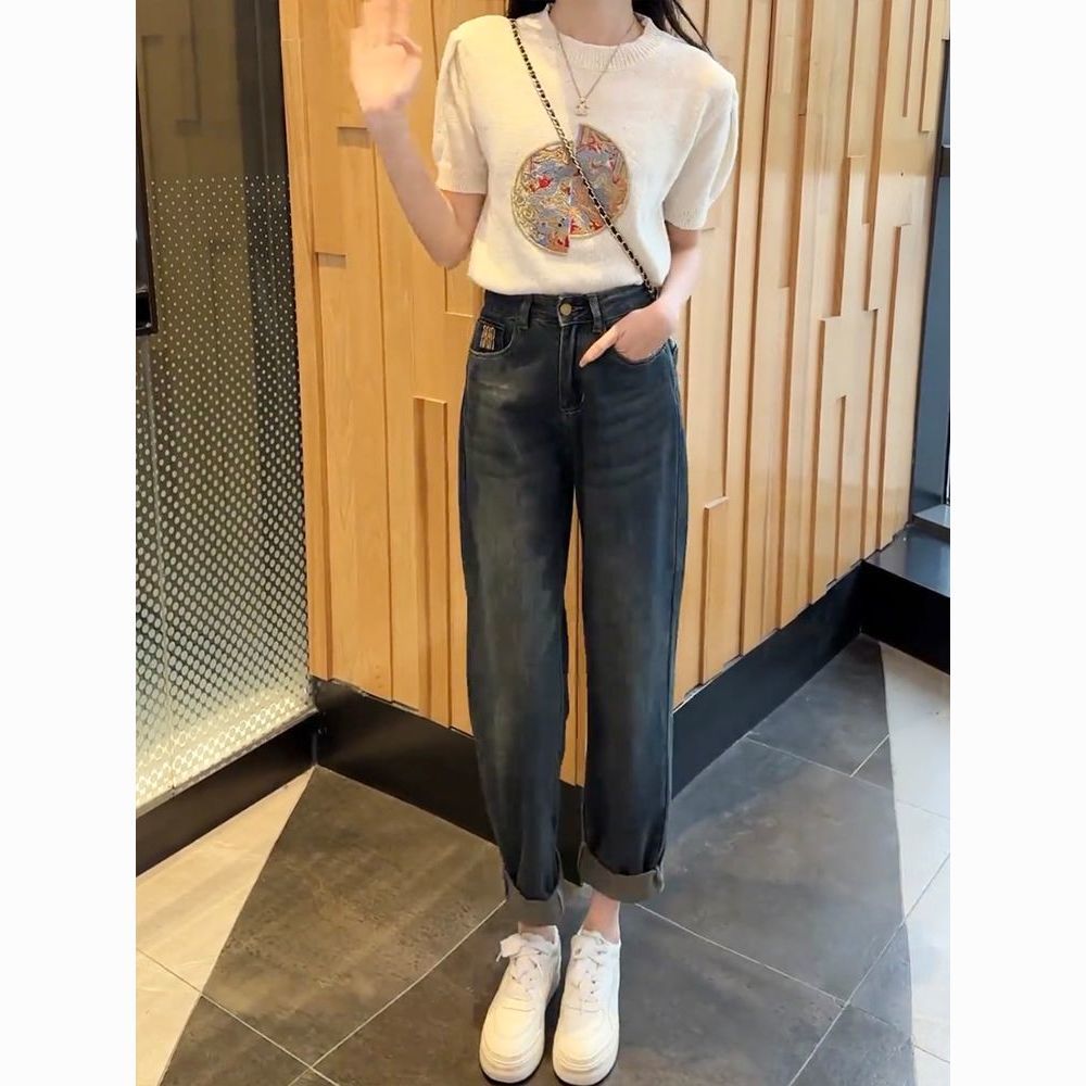 哈伦牛仔裤女秋冬新款加绒加厚宽松遮胯显瘦大码萝卜裤高腰老爹裤