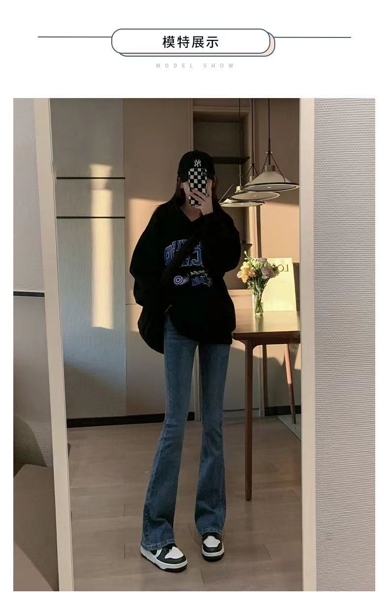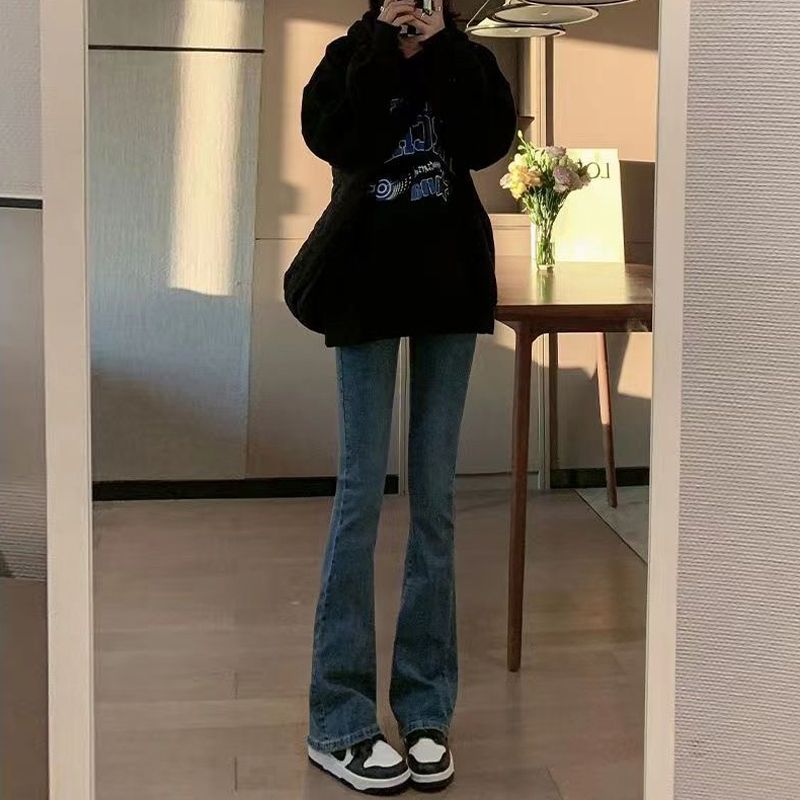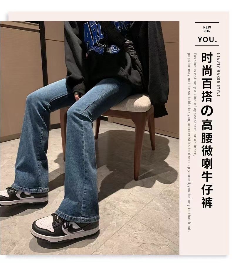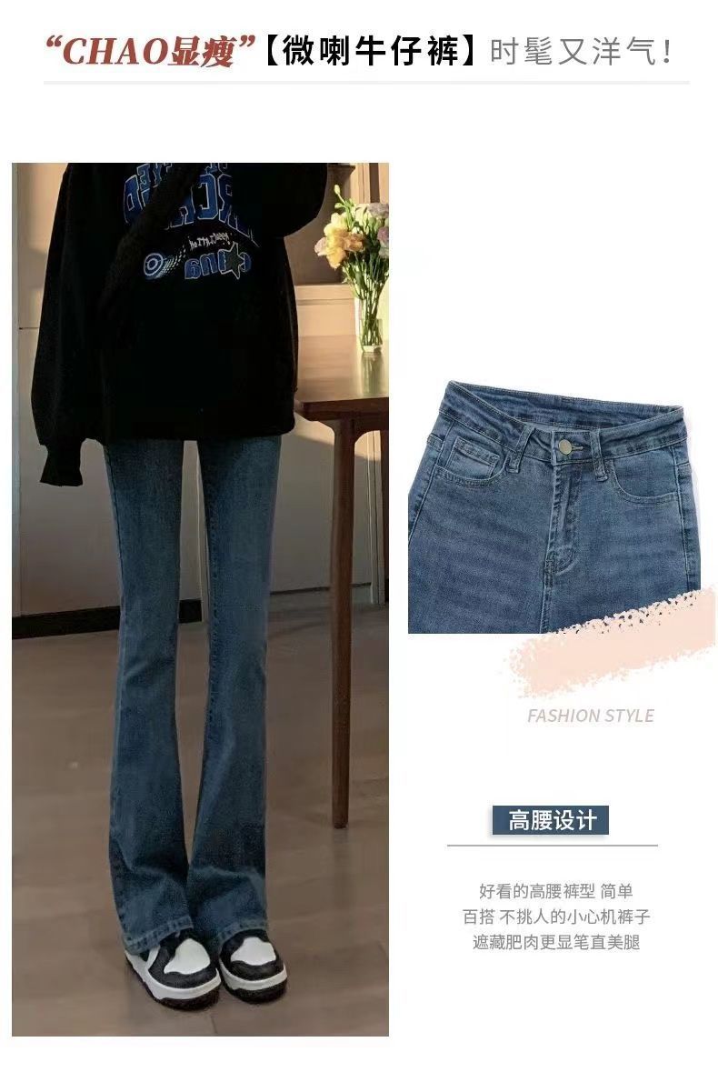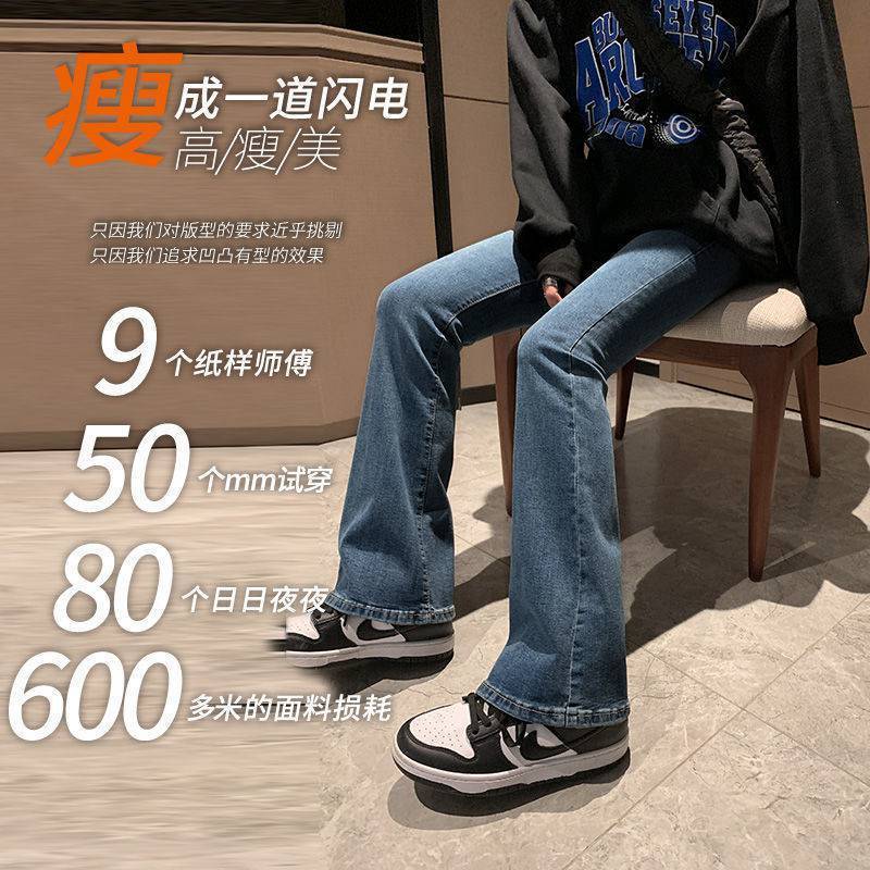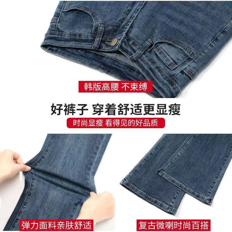 微喇牛仔裤女秋冬小个子新款直筒高腰修身显瘦弹力拖地马蹄喇叭裤