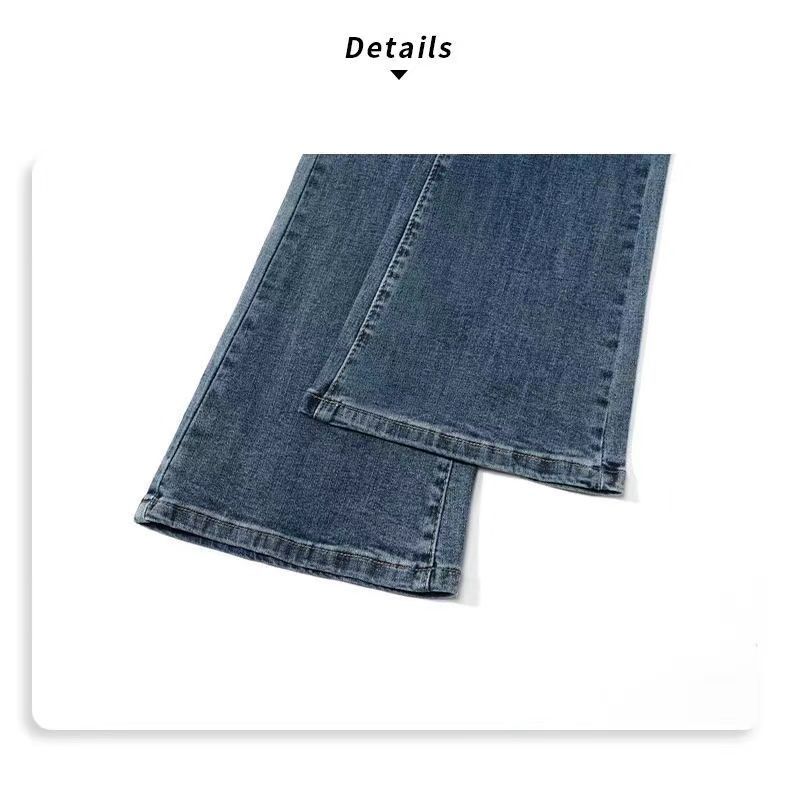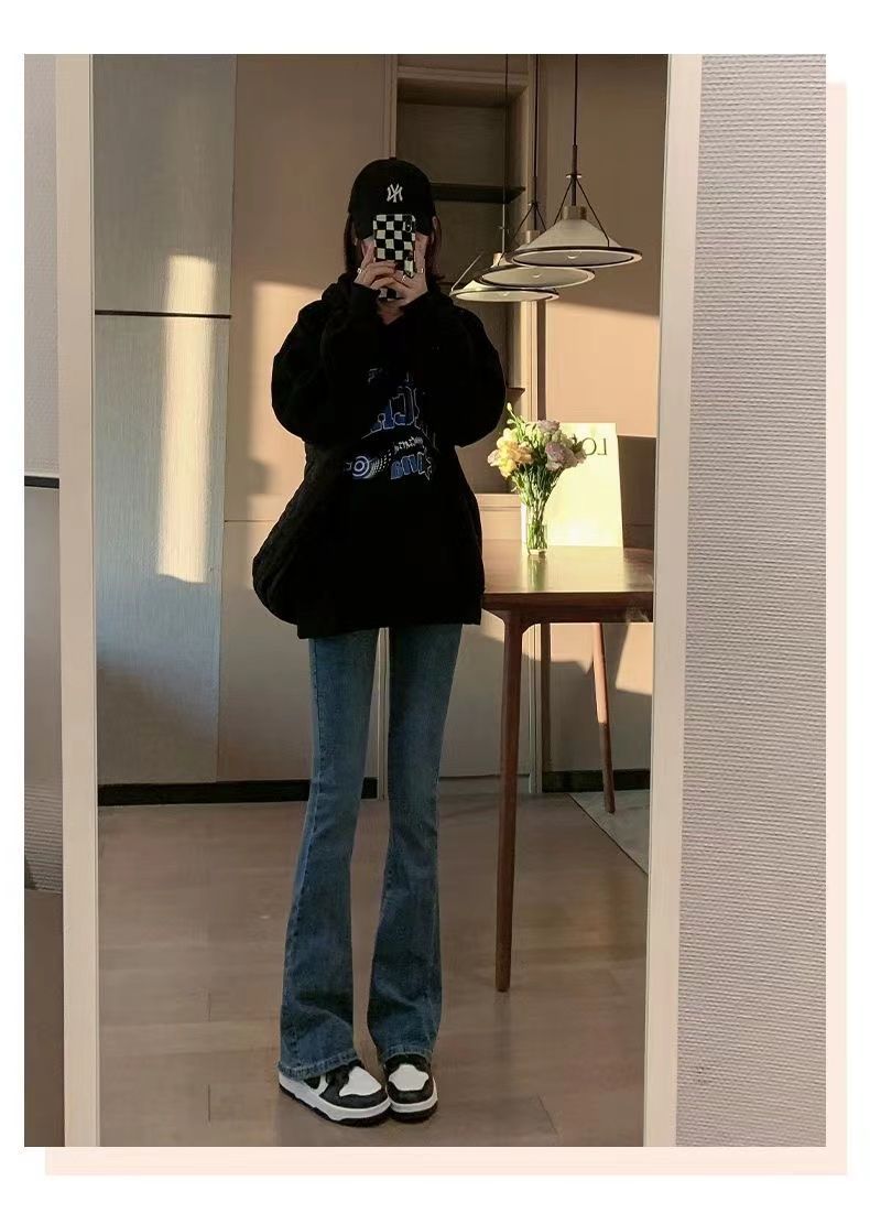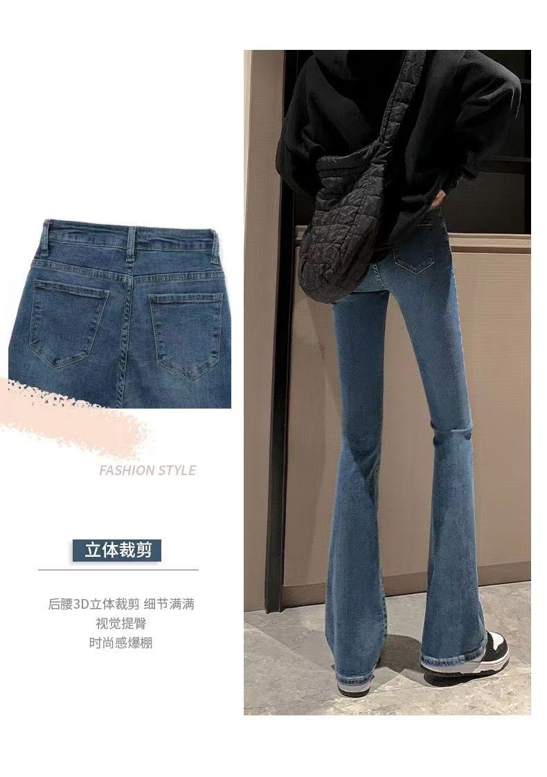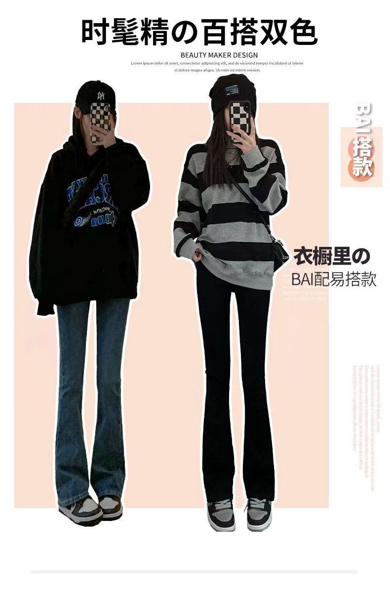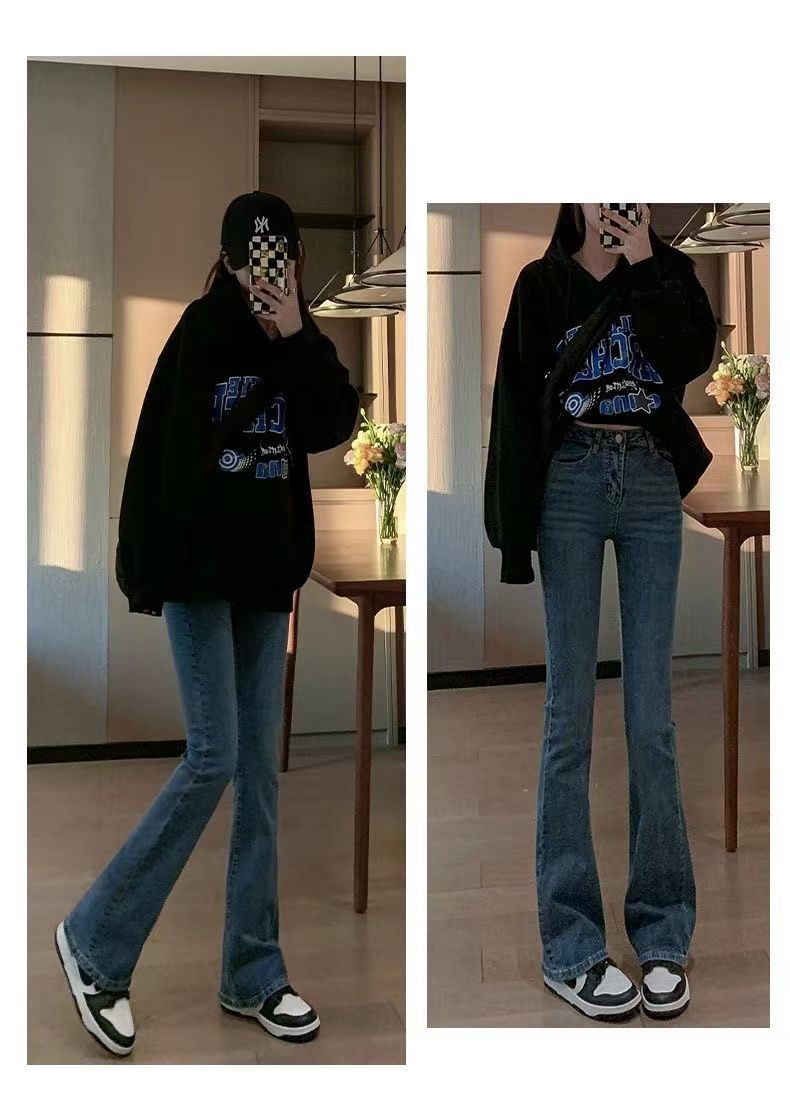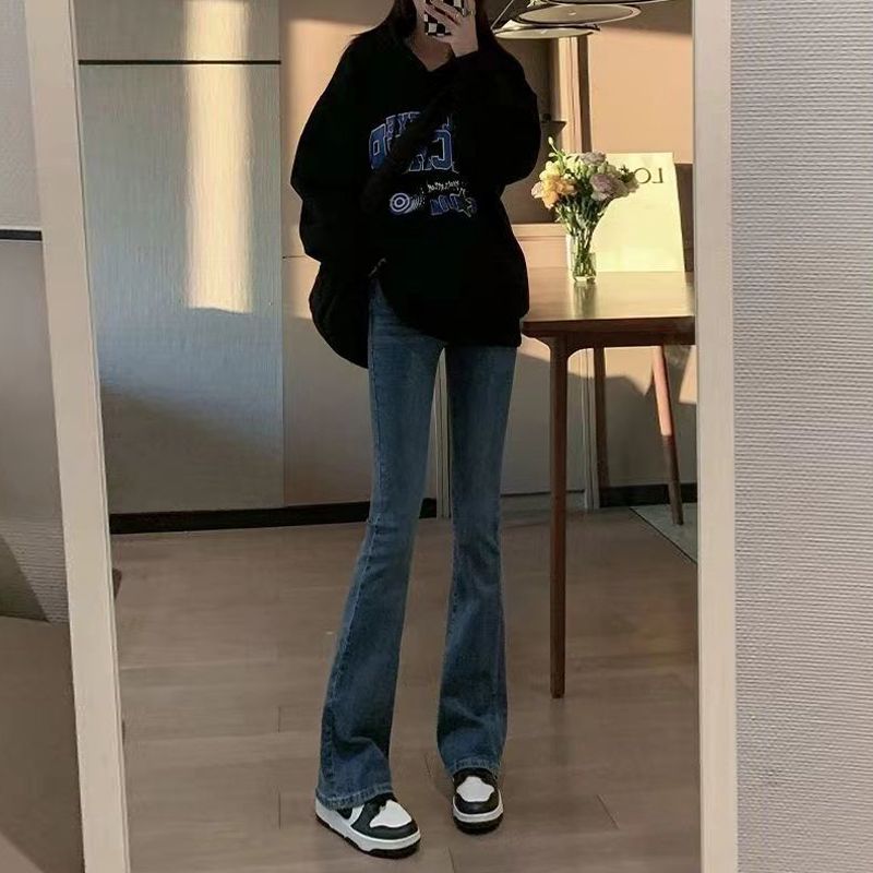 微喇牛仔裤女秋冬小个子新款直筒高腰修身显瘦弹力拖地马蹄喇叭裤