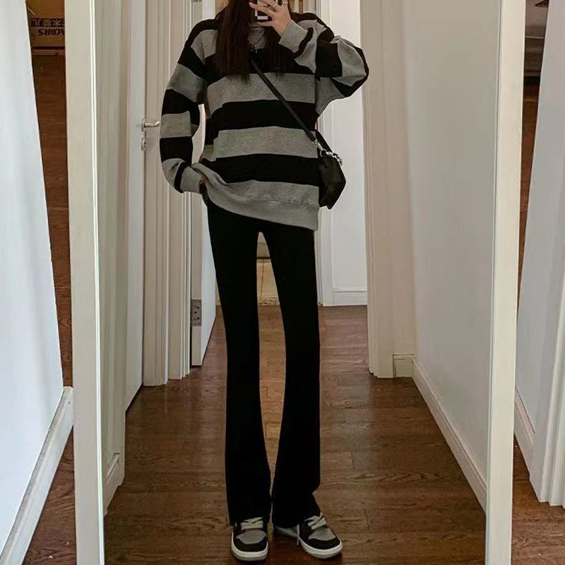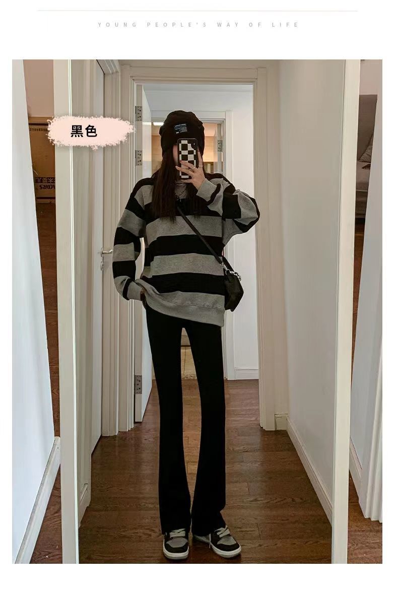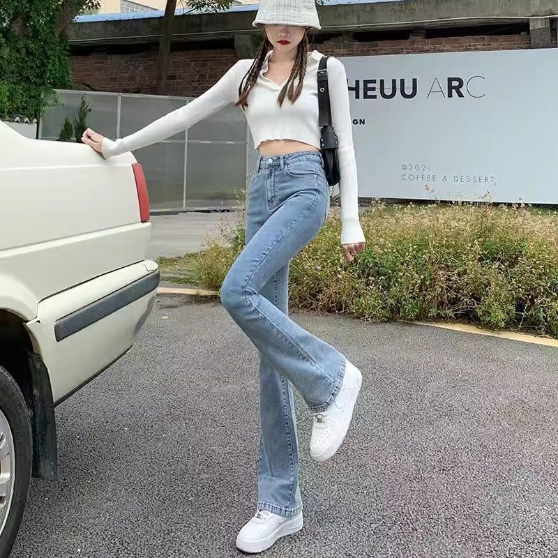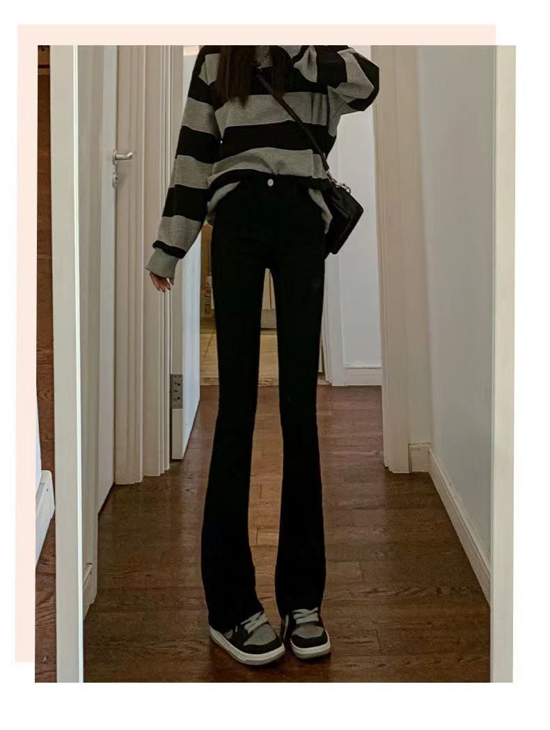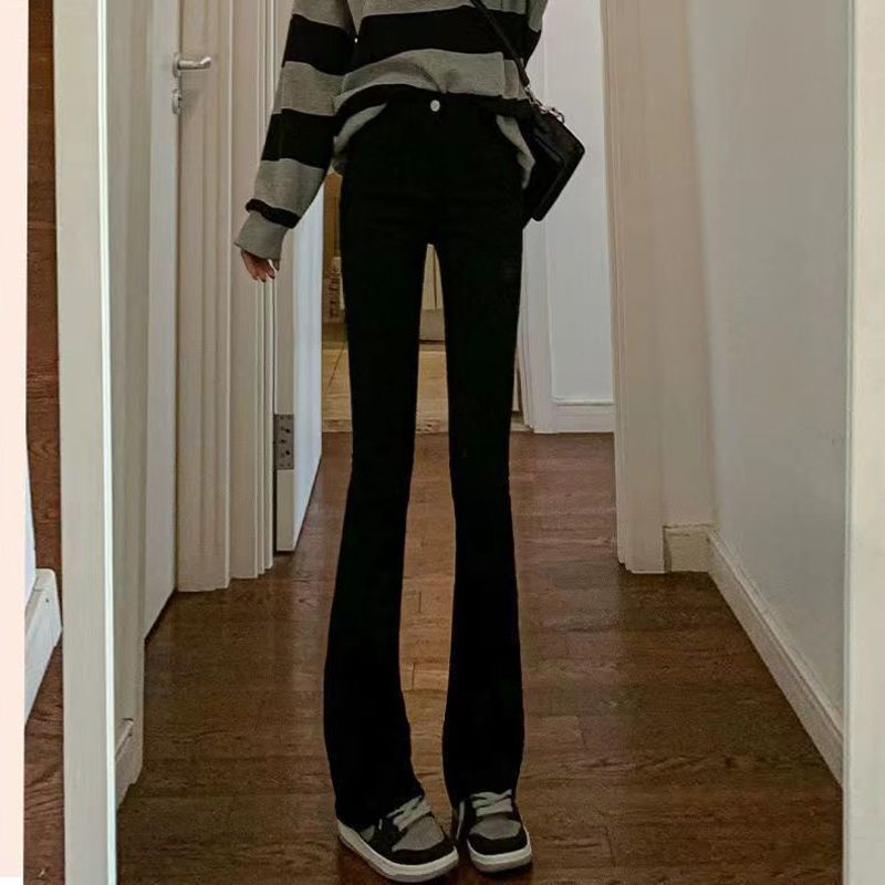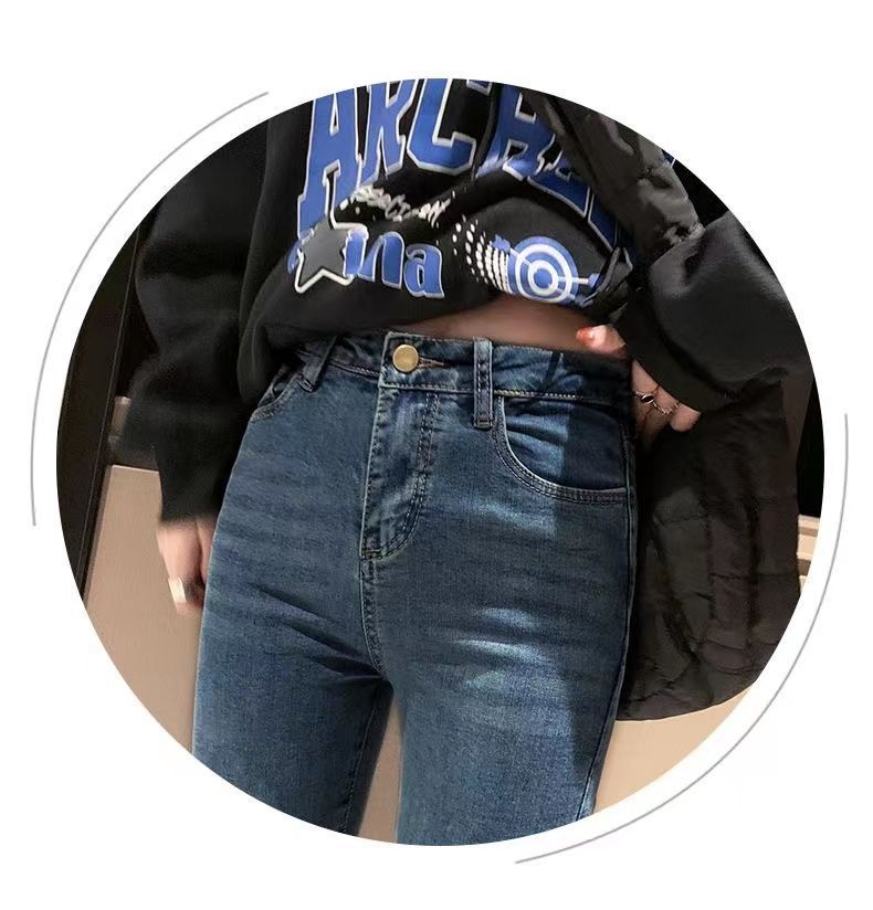 微喇牛仔裤女秋冬小个子新款直筒高腰修身显瘦弹力拖地马蹄喇叭裤