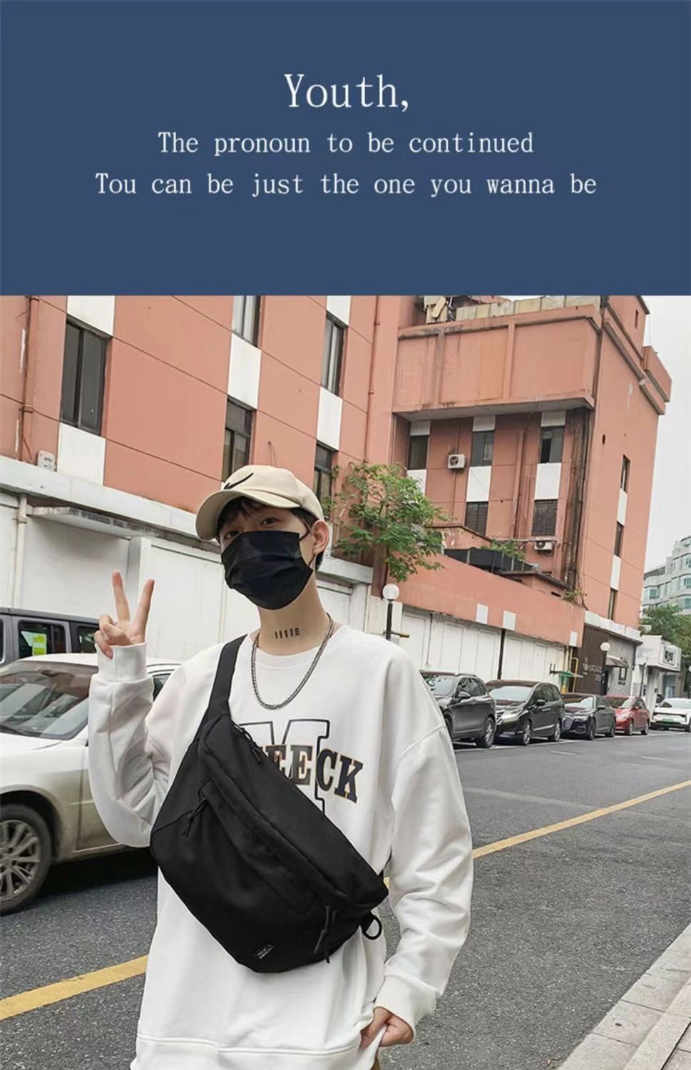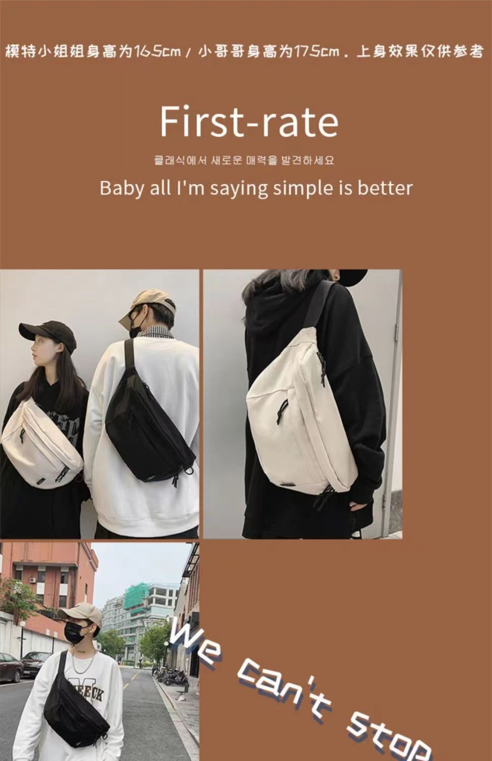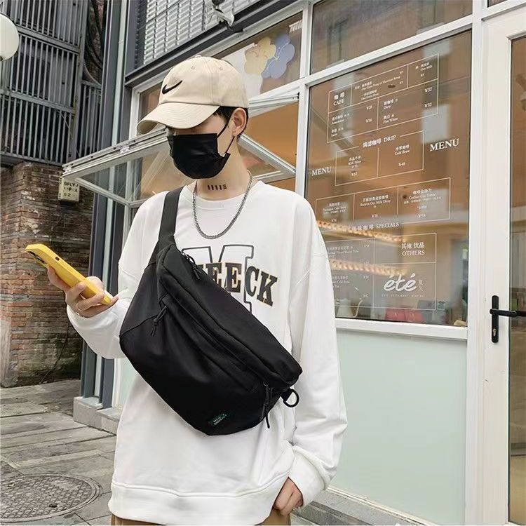 斜挎包大学生上课运动大容量男包胸包休闲潮流单肩日系腰包纯色