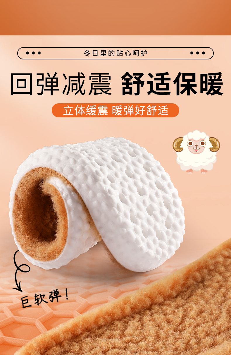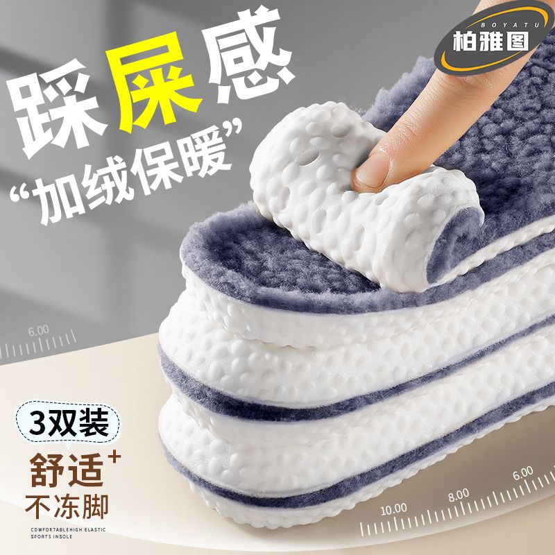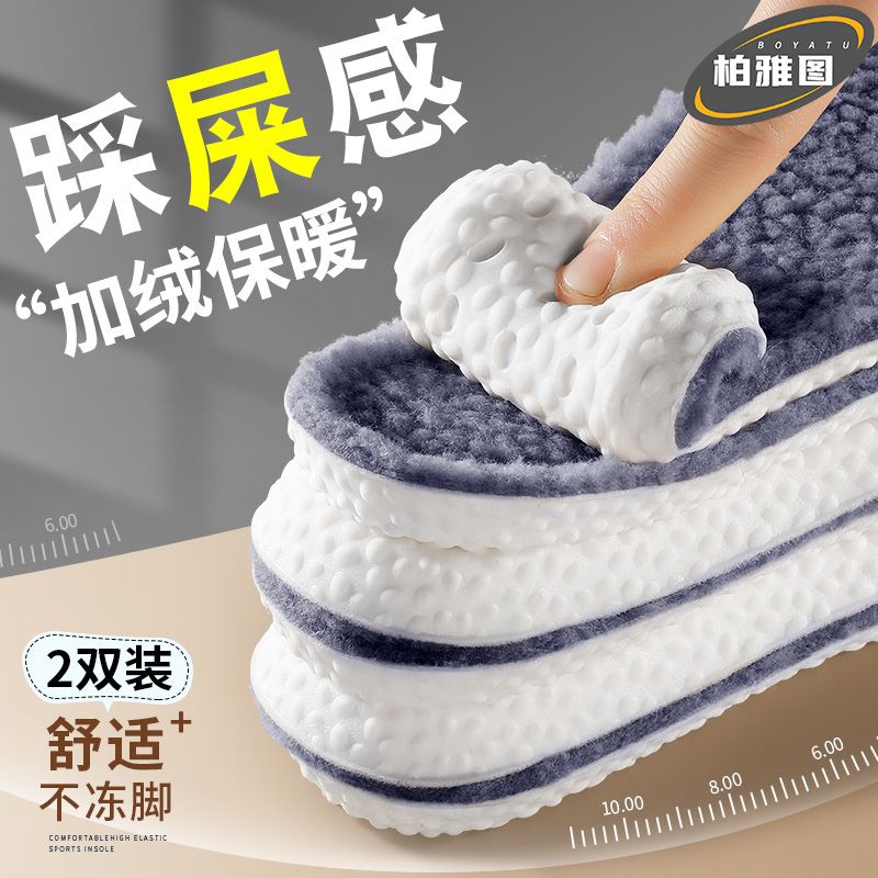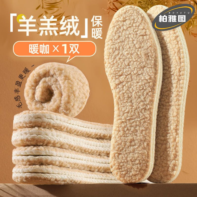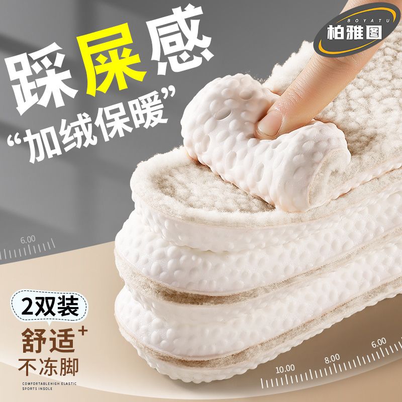 柏雅图羊羔绒保暖鞋垫女踩屎感加绒加厚冬季防寒超软羊毛棉鞋垫男
