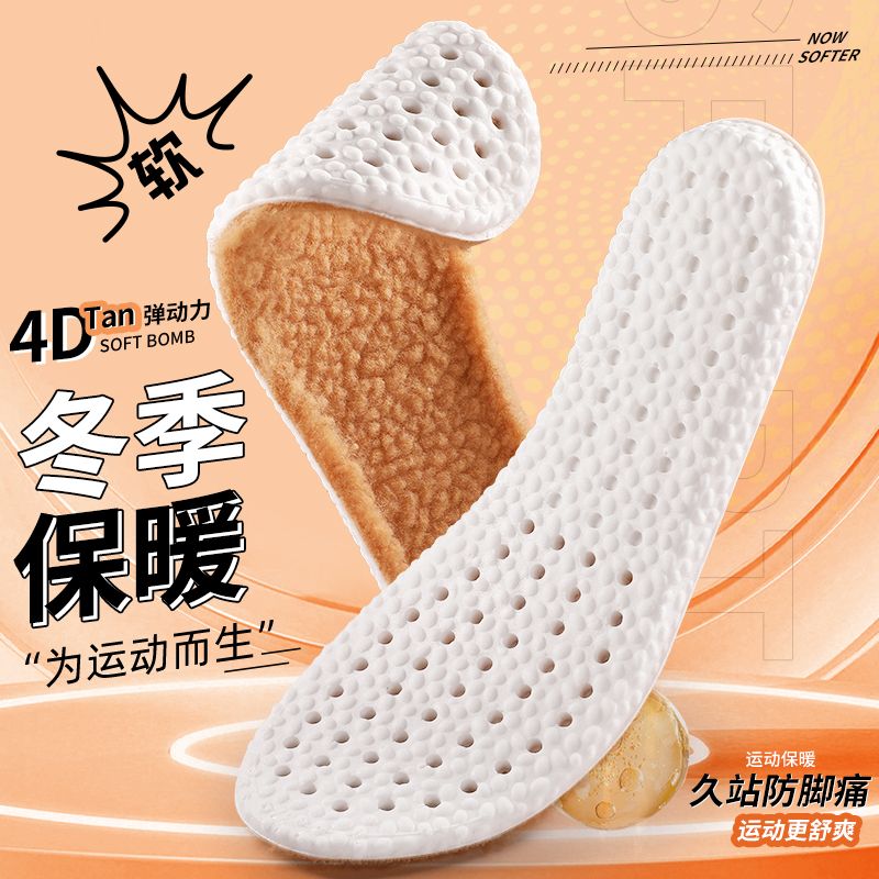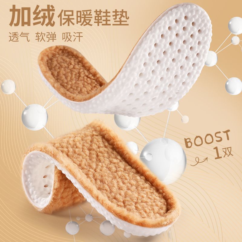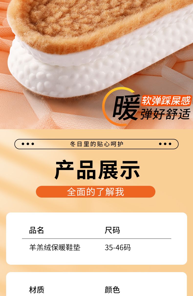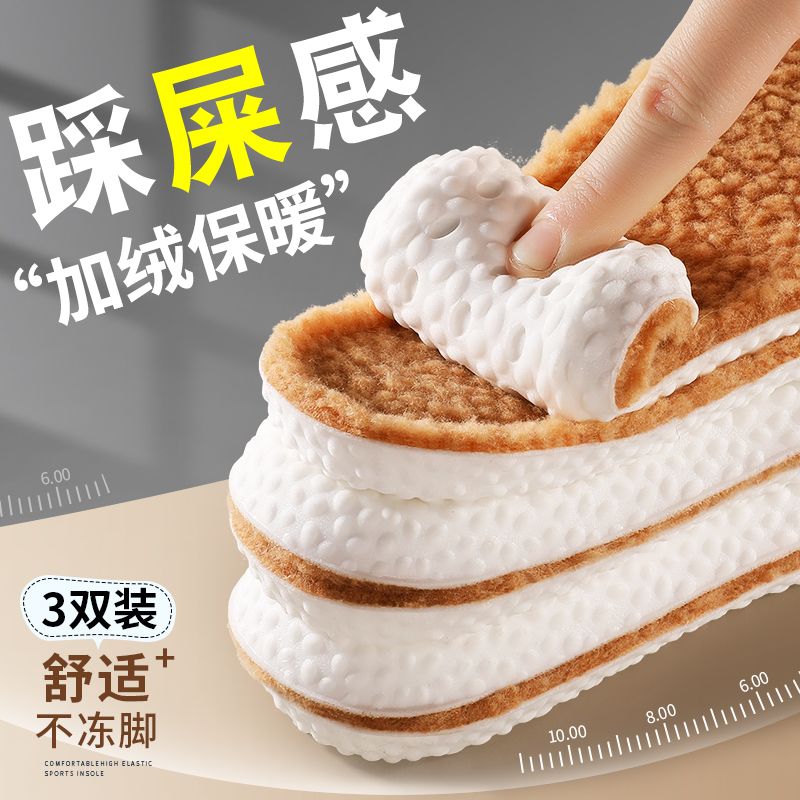 柏雅图羊羔绒保暖鞋垫女踩屎感加绒加厚冬季防寒超软羊毛棉鞋垫男