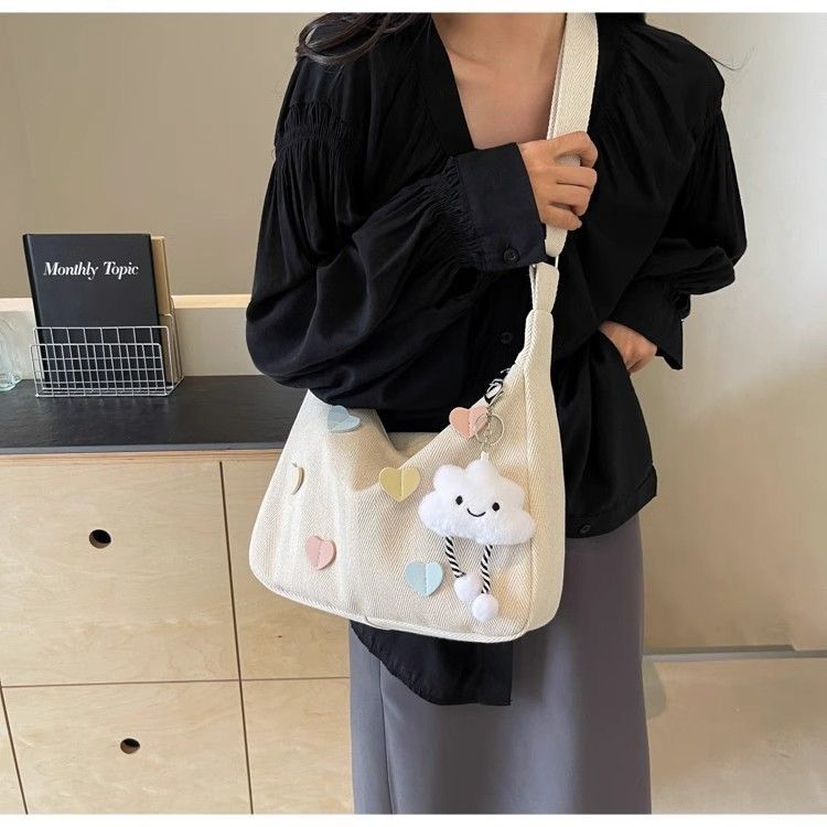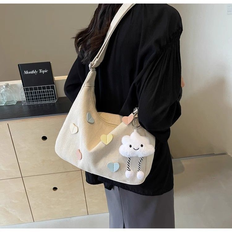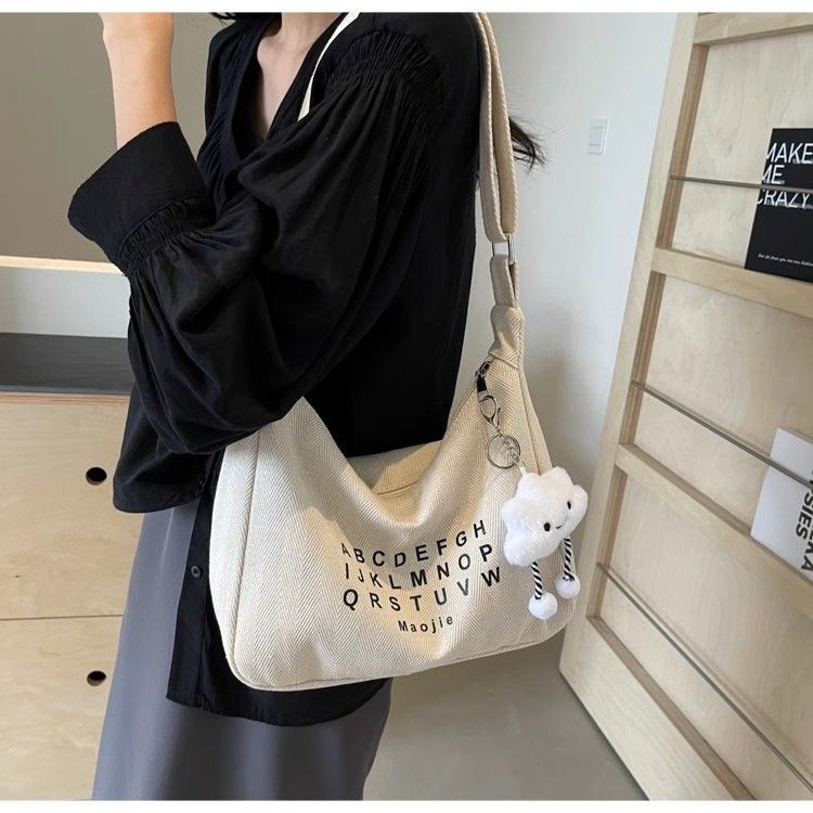 饺子包女2024新款潮秋冬简约百搭大容量单肩包休闲通勤斜挎帆布包