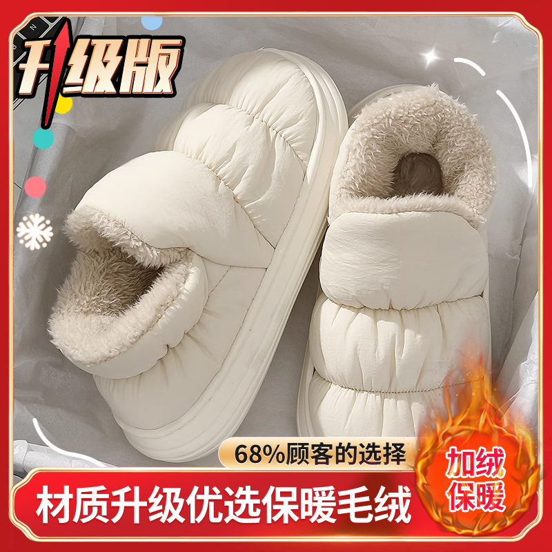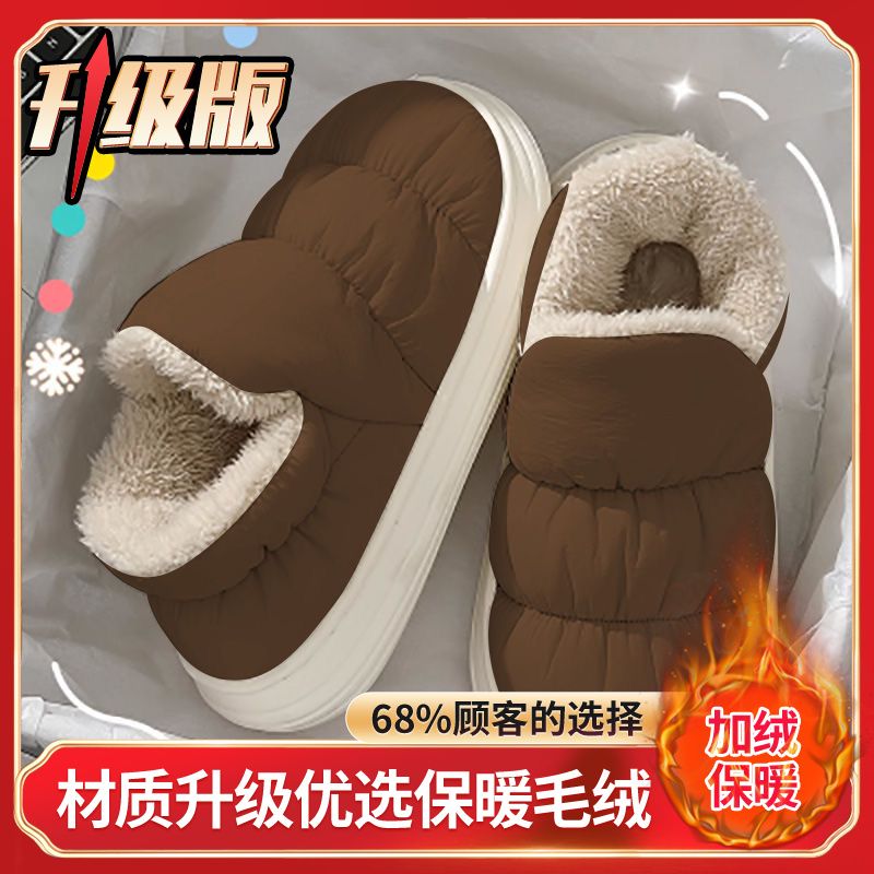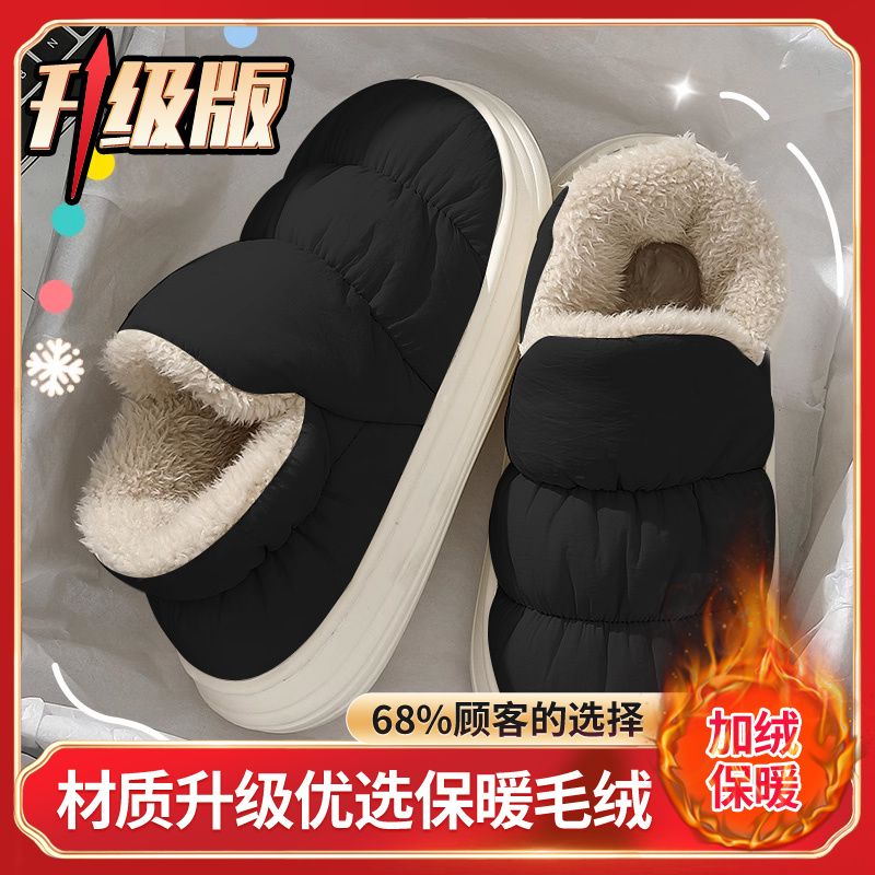 简约经典厚棉棉拖鞋女秋冬新款厚底室内外防滑保暖包跟棉鞋月子鞋