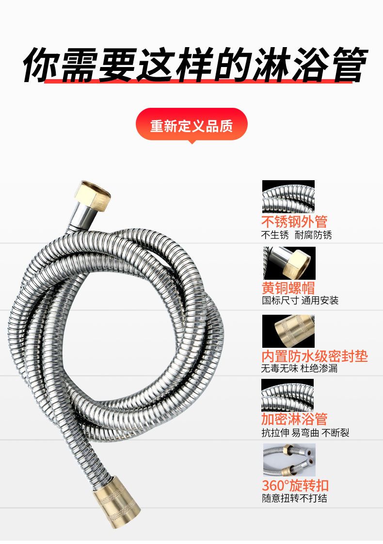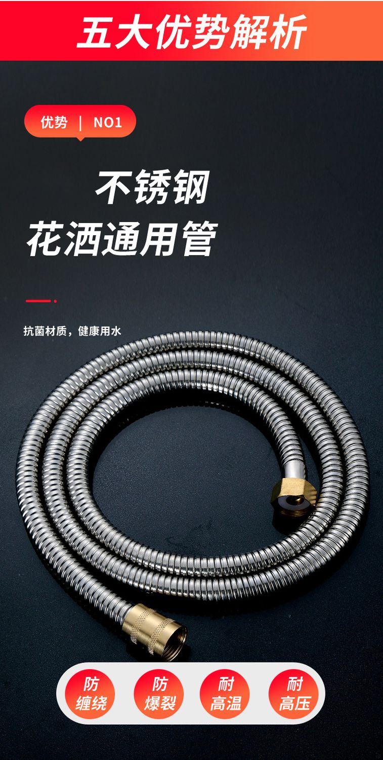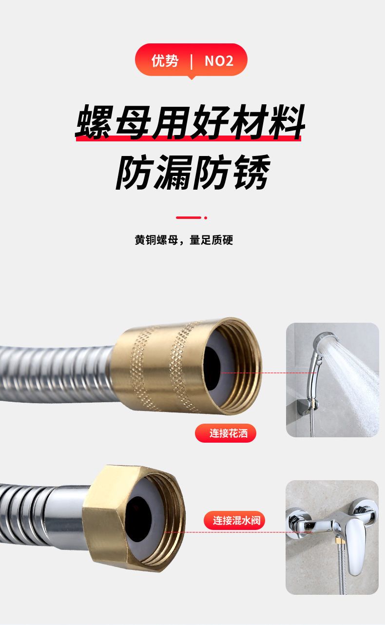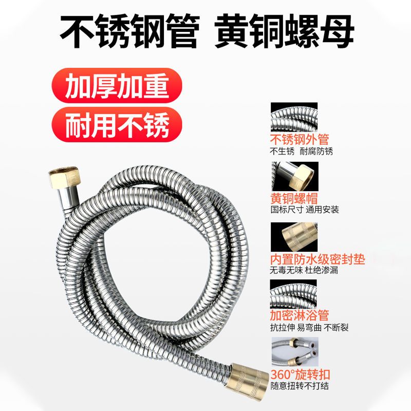 黄铜接口不锈钢淋浴软管花洒喷头热水浴室进水管1/1.5/2/3米