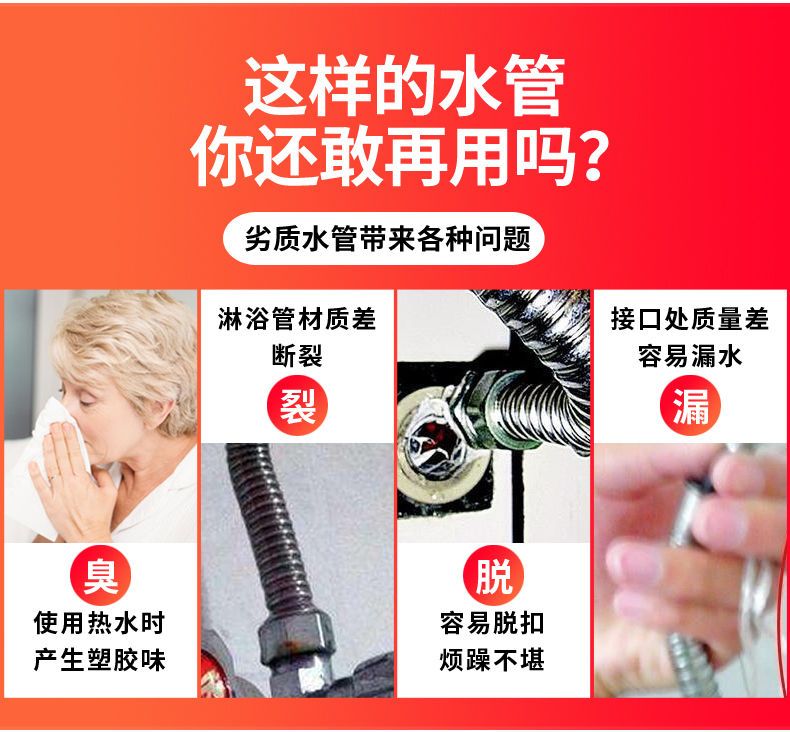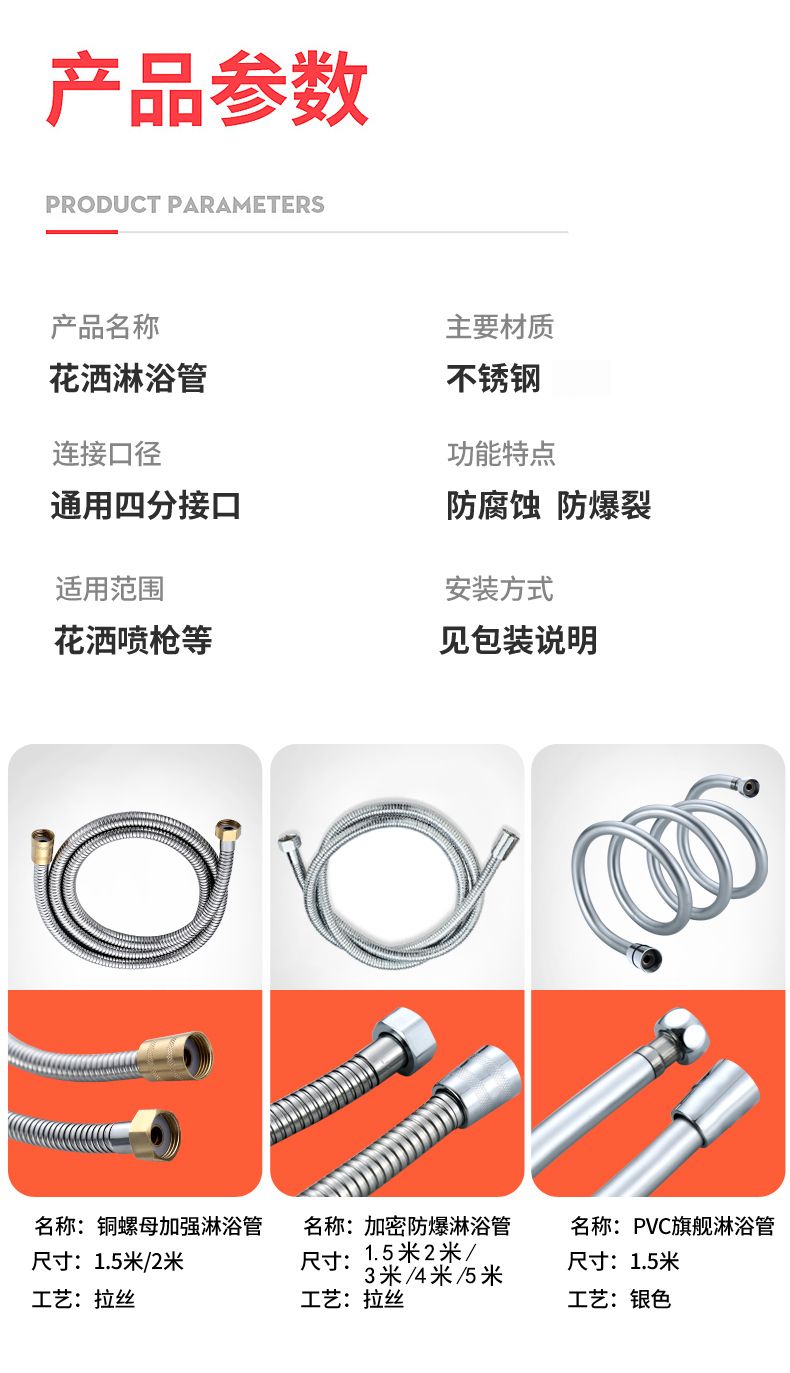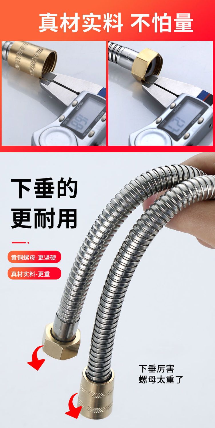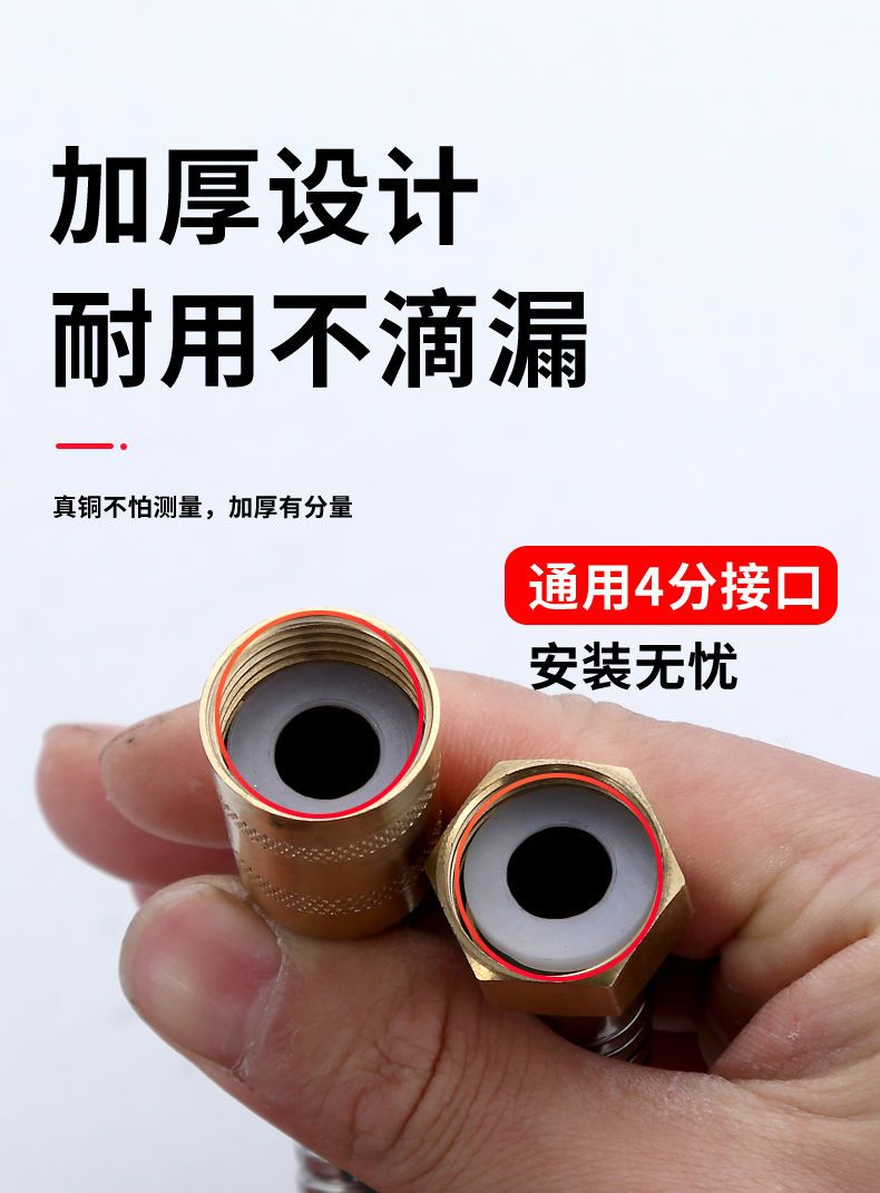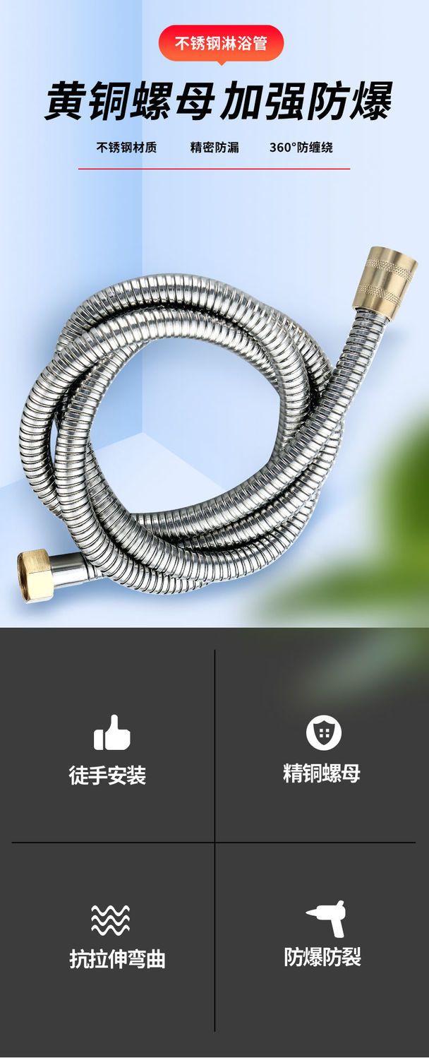 黄铜接口不锈钢淋浴软管花洒喷头热水浴室进水管1/1.5/2/3米