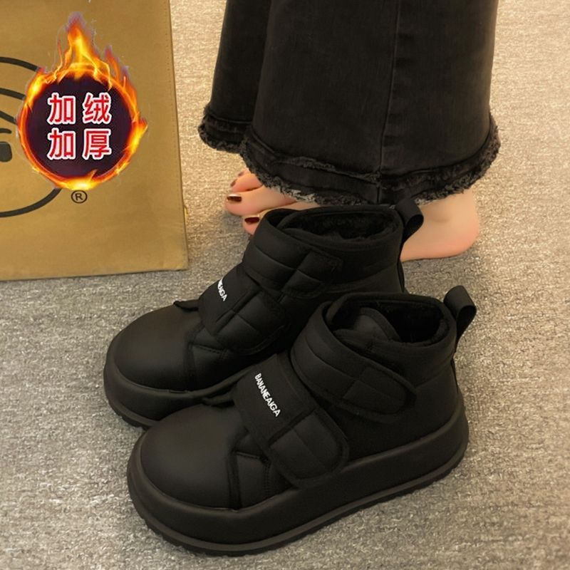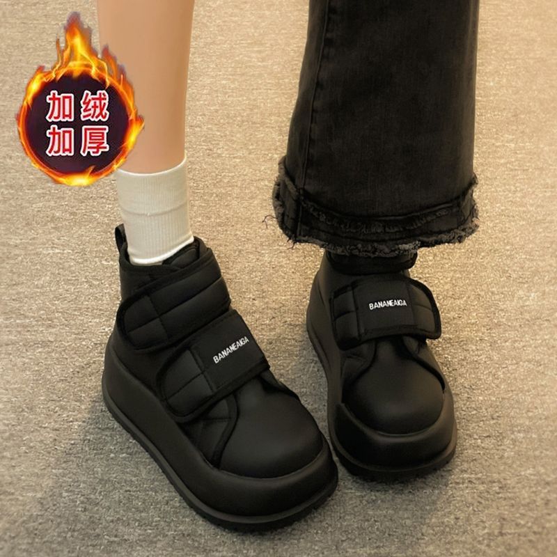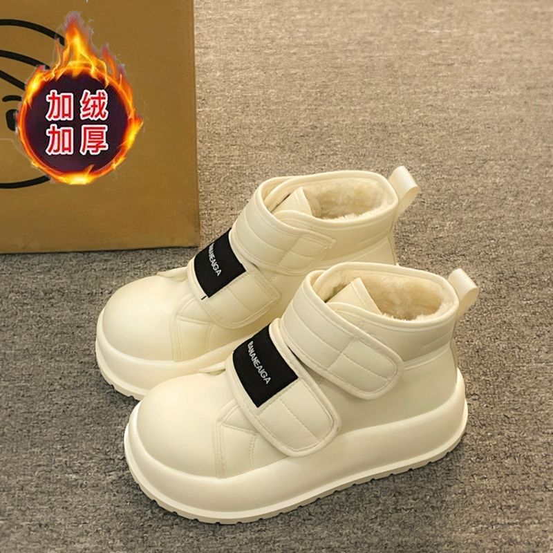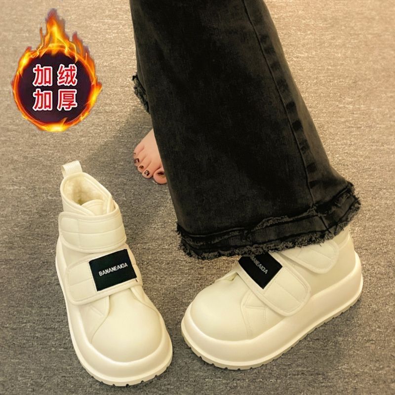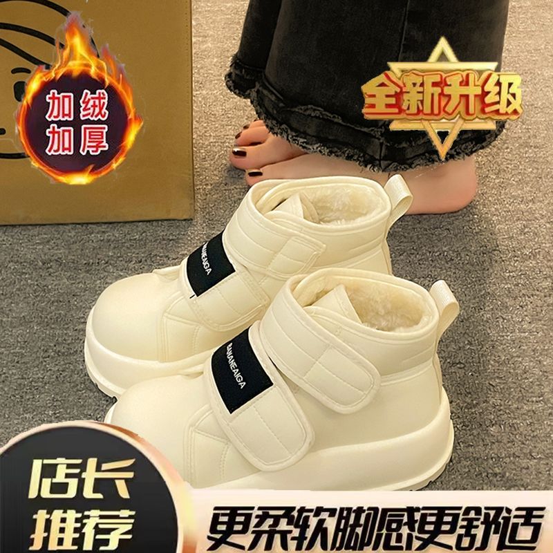 厚底雪地靴女冬季2024新款加绒小白鞋厚底保暖棉鞋魔术贴面包鞋子
