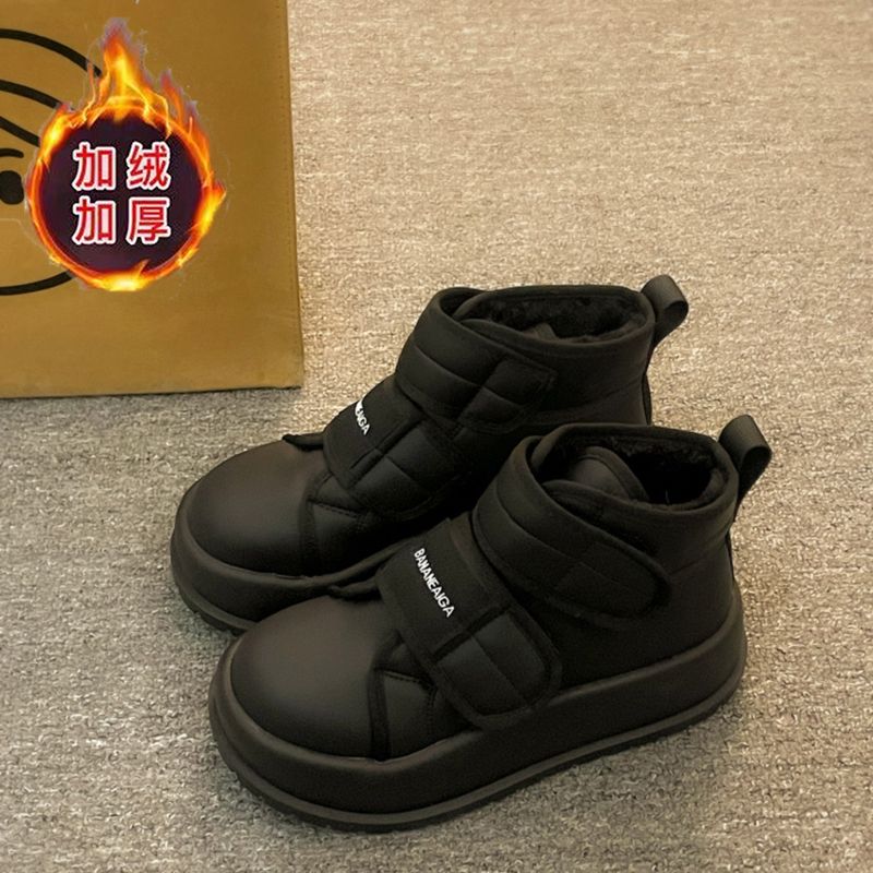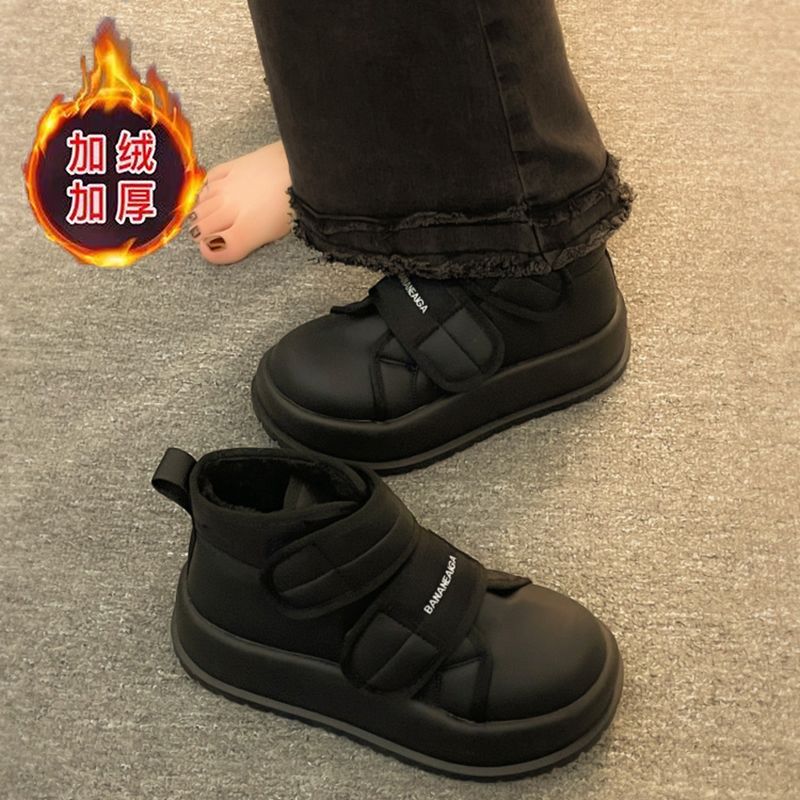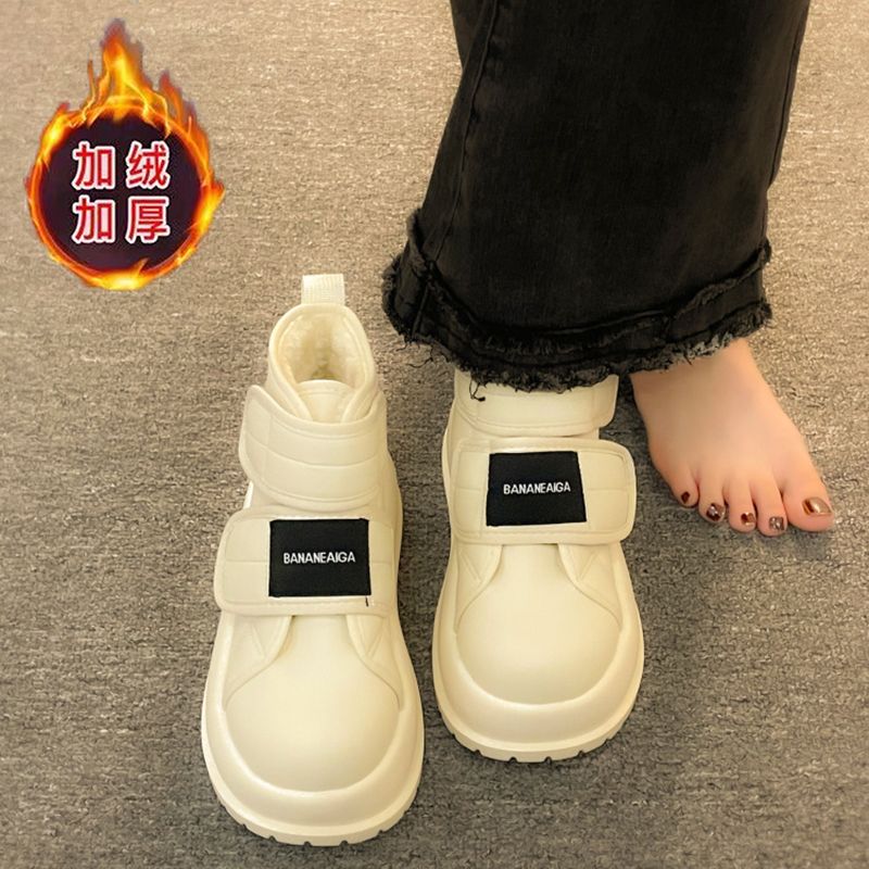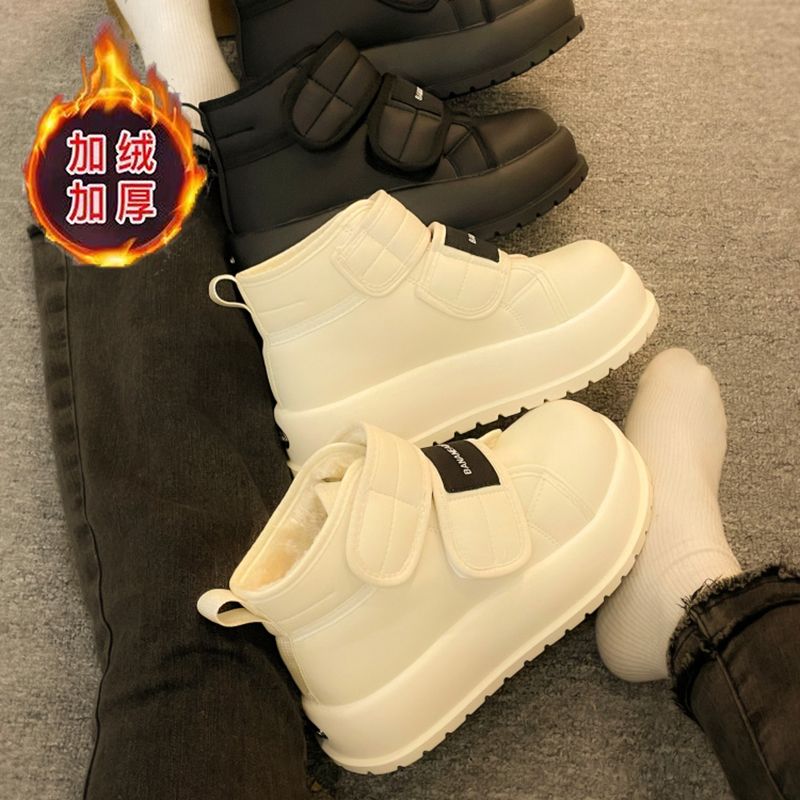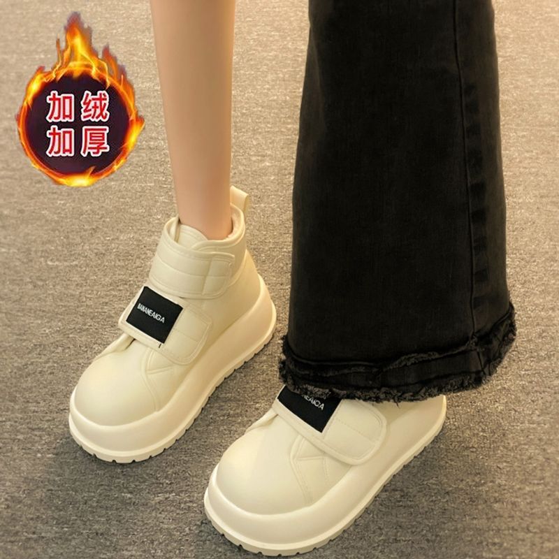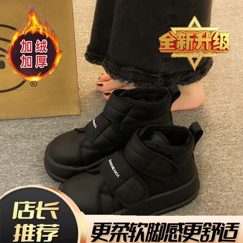 厚底雪地靴女冬季2024新款加绒小白鞋厚底保暖棉鞋魔术贴面包鞋子