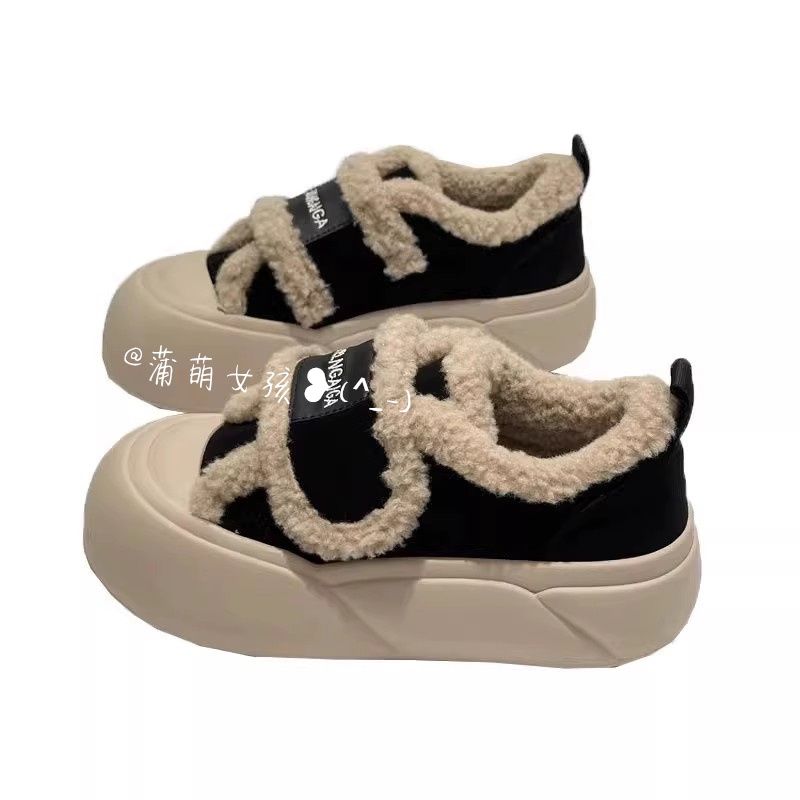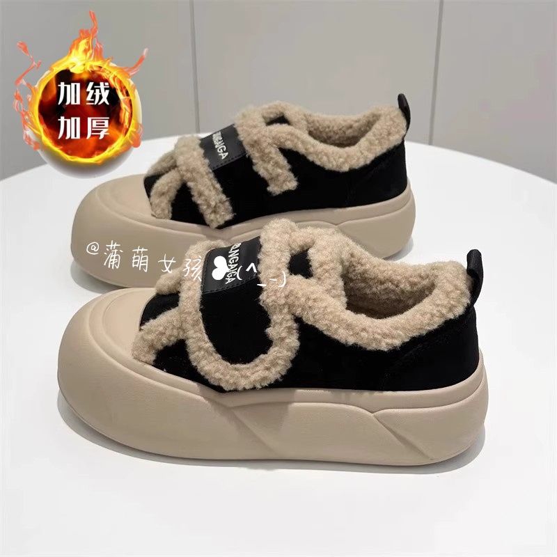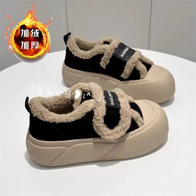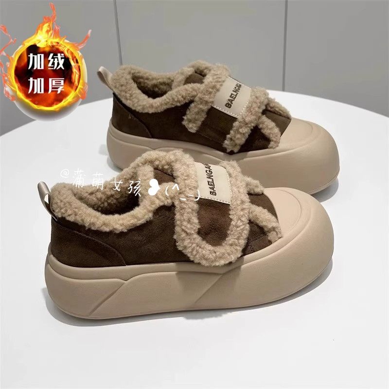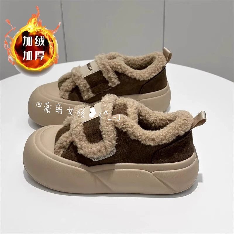 一脚蹬魔术贴毛毛面包棉鞋子女冬季外穿加绒保暖2024新款丑萌板鞋
