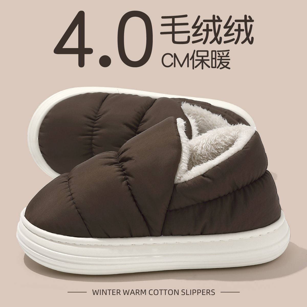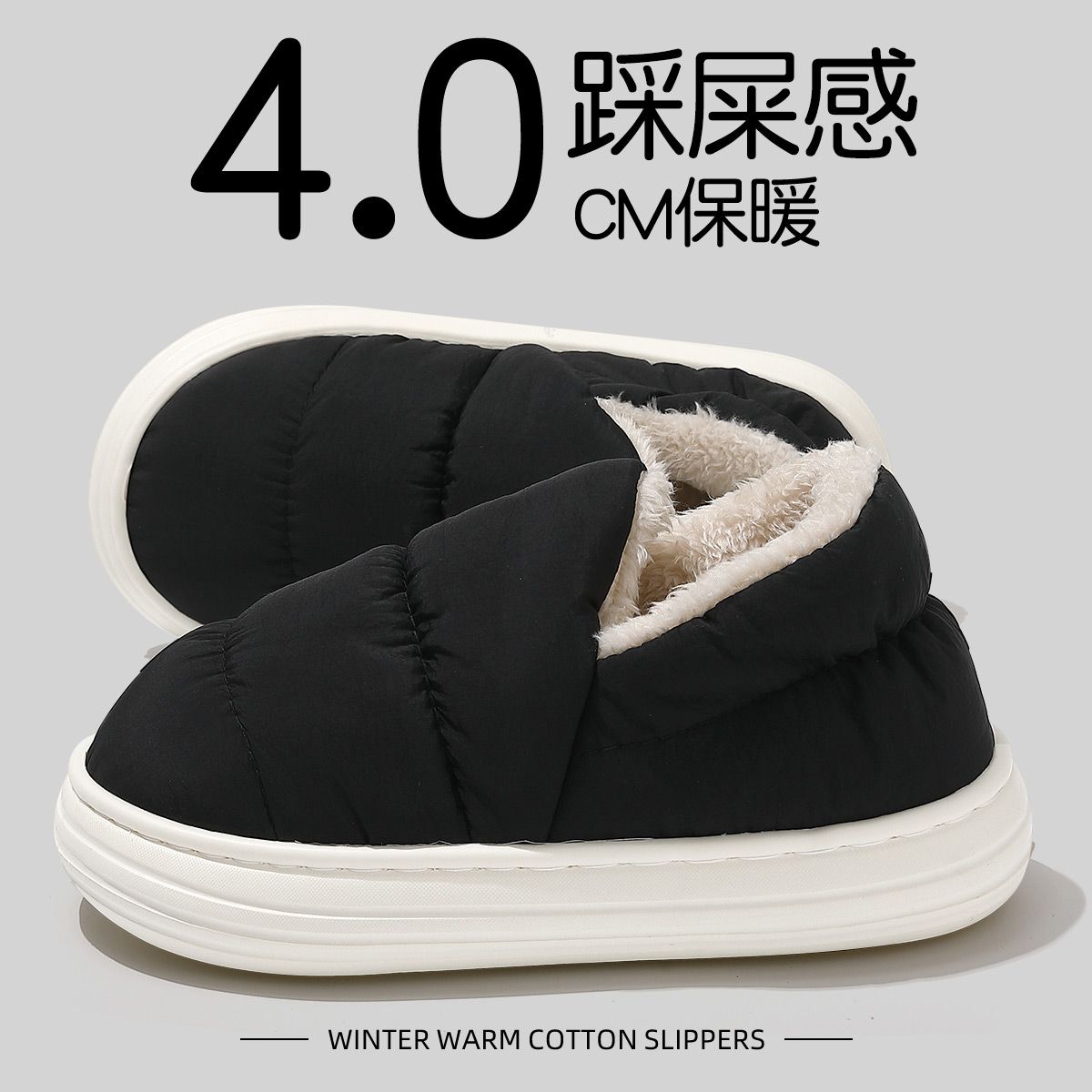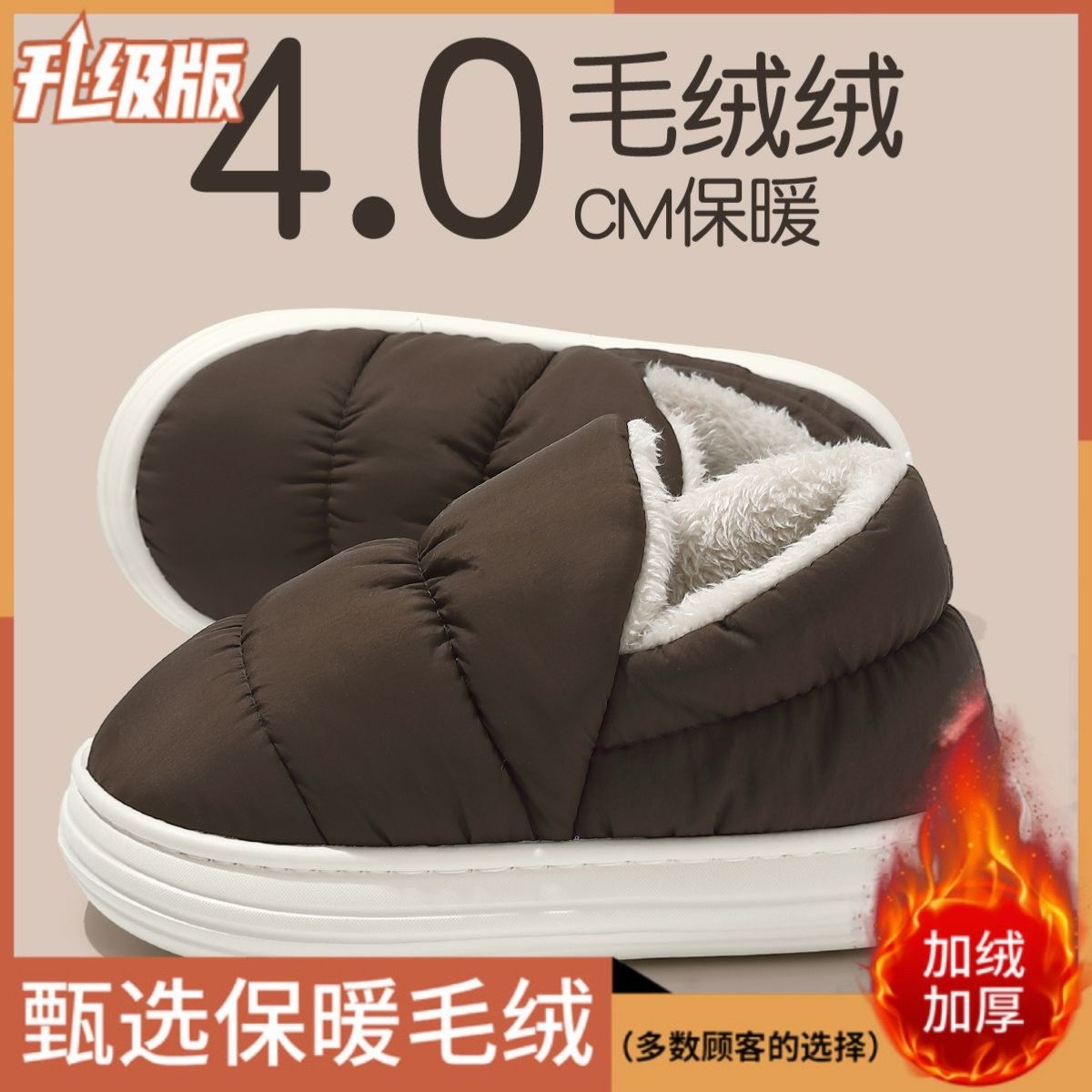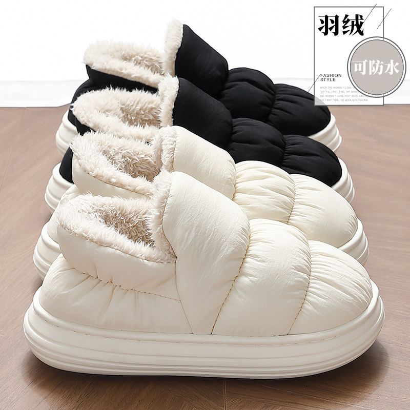 羽绒布防水棉拖鞋女款冬季外穿室内家居加绒保暖厚底包跟棉鞋男士