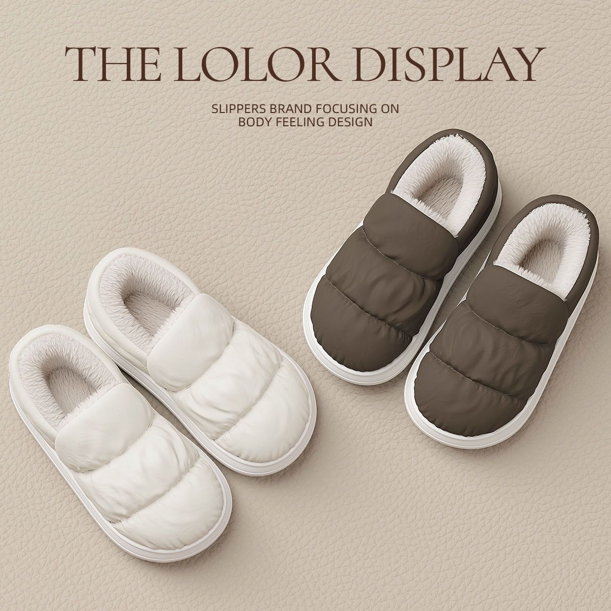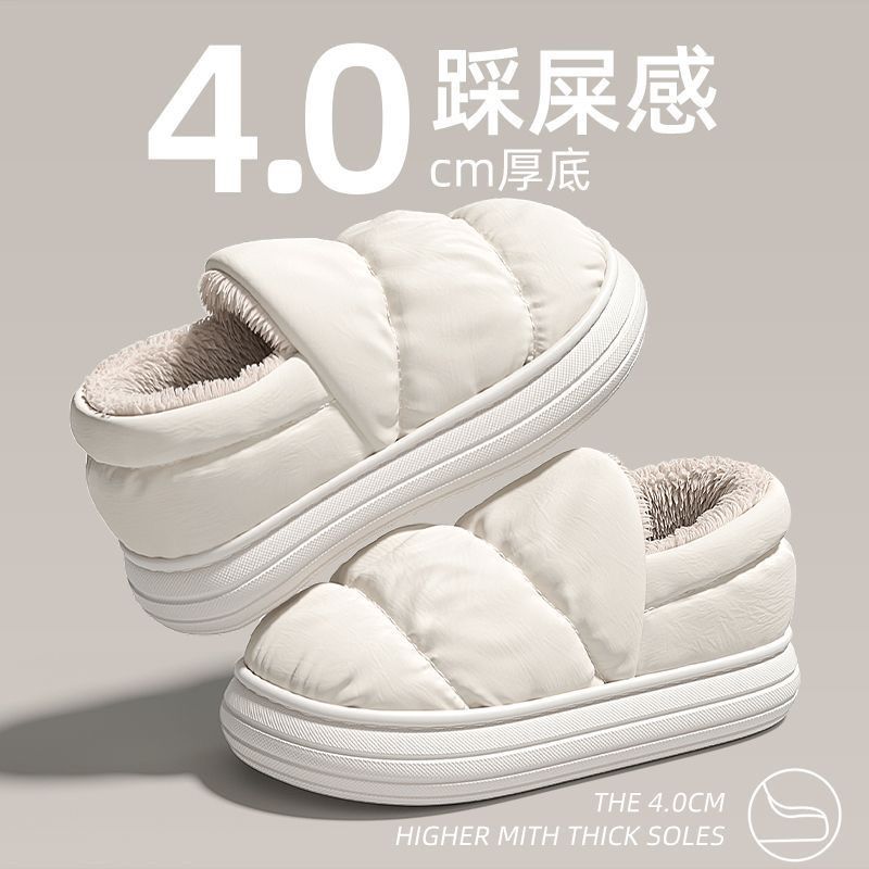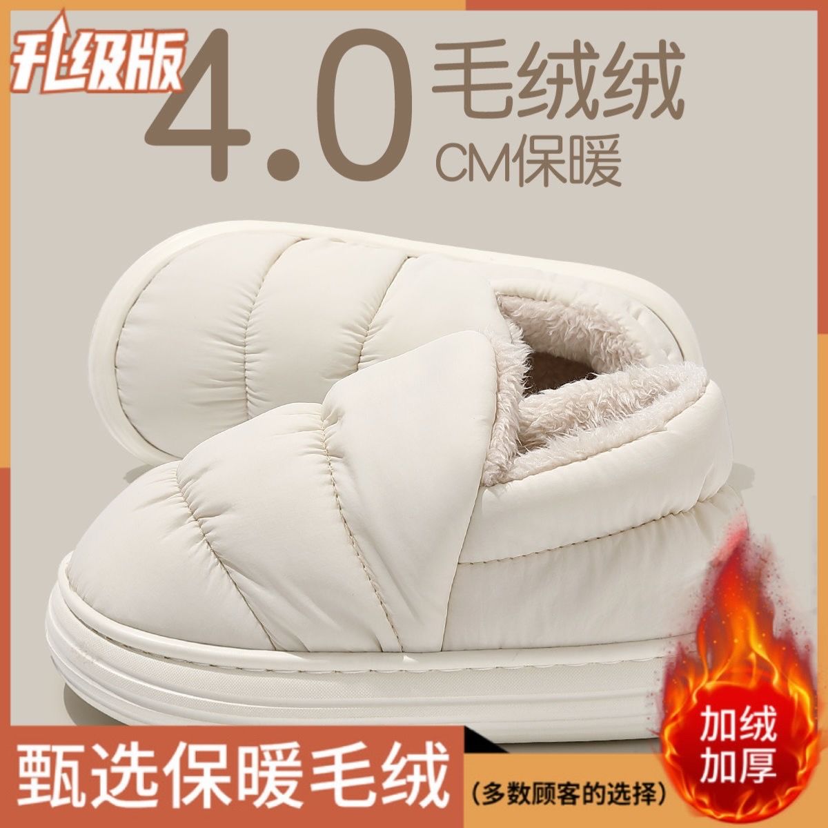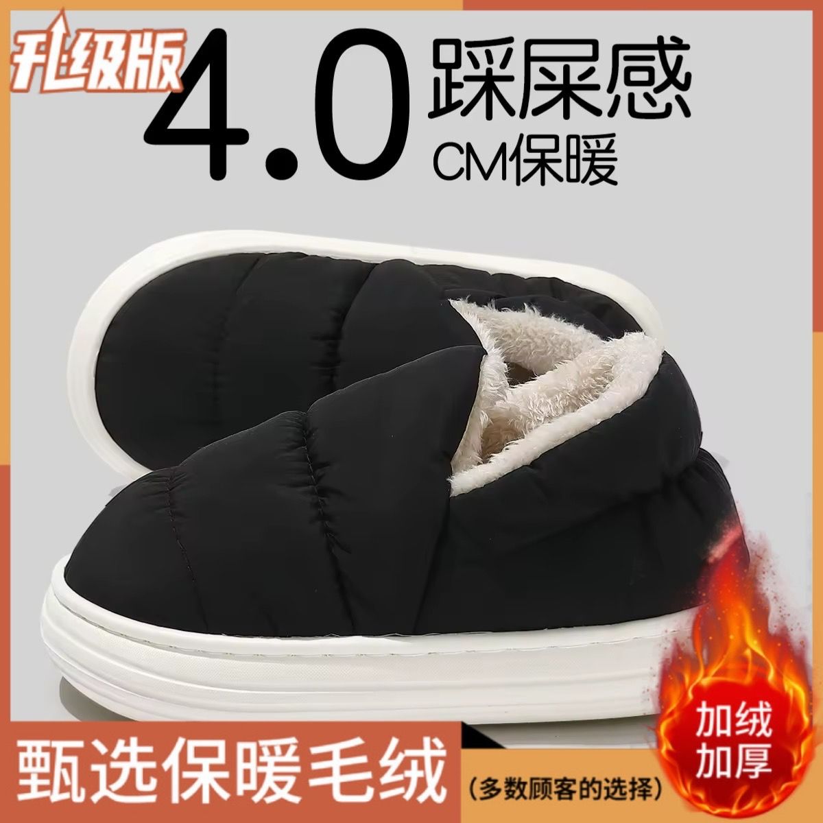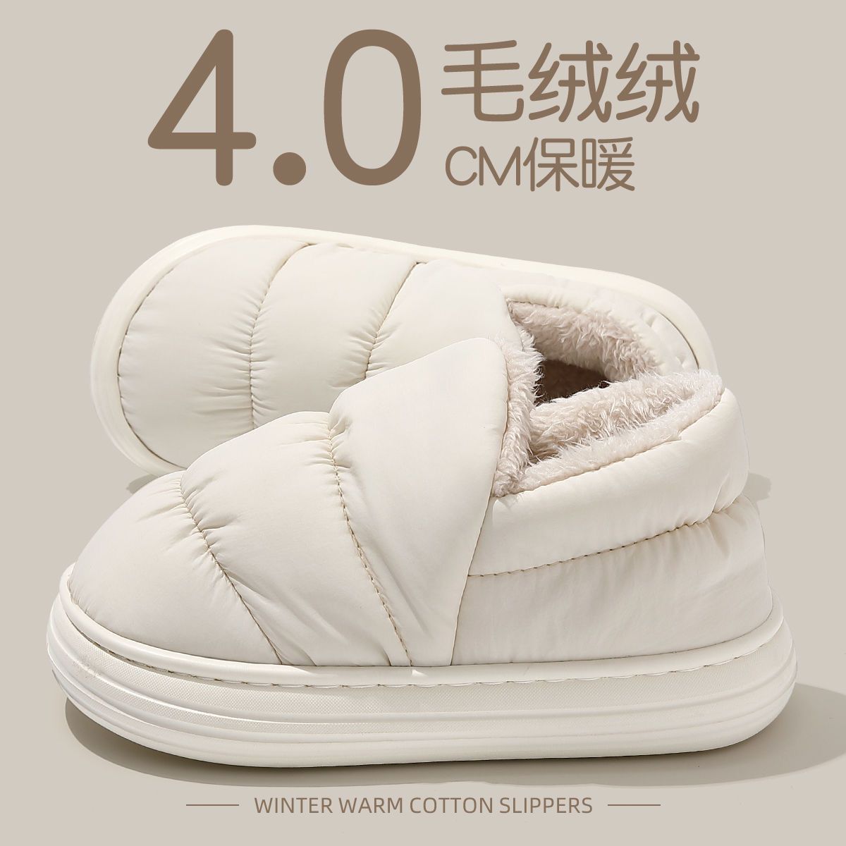 羽绒布防水棉拖鞋女款冬季外穿室内家居加绒保暖厚底包跟棉鞋男士