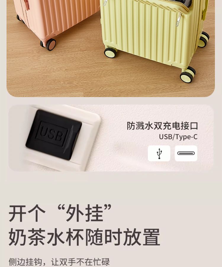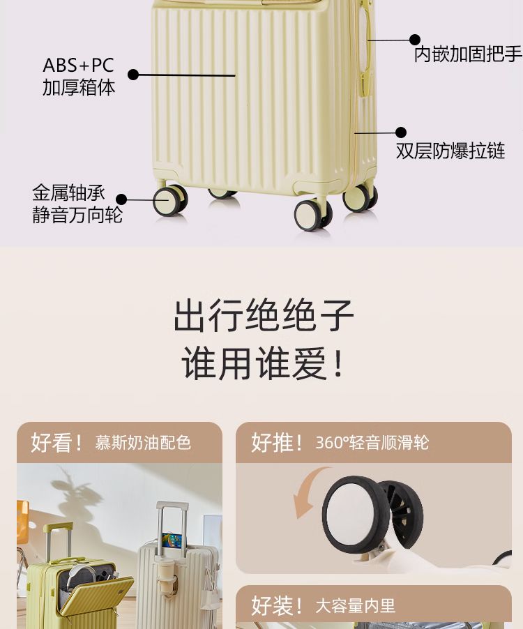 唐酷多功能拉杆箱前置开口大容量旅行箱行李箱万向轮学生密码箱