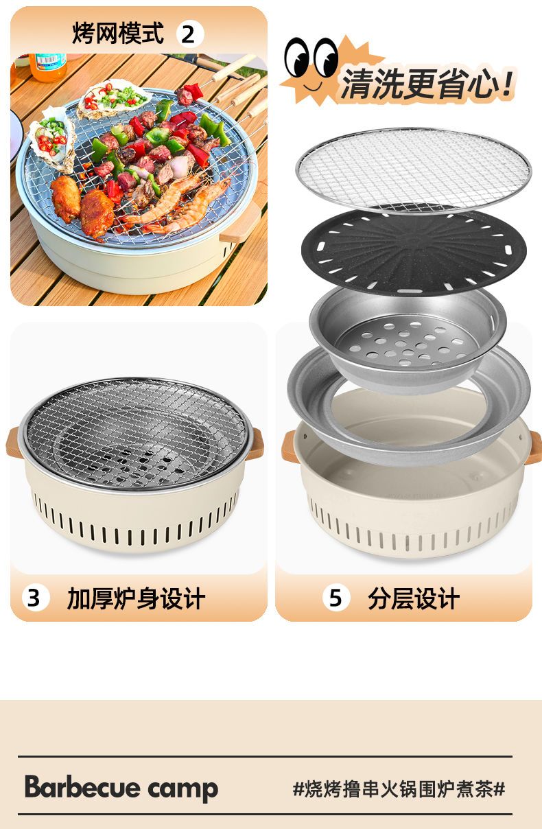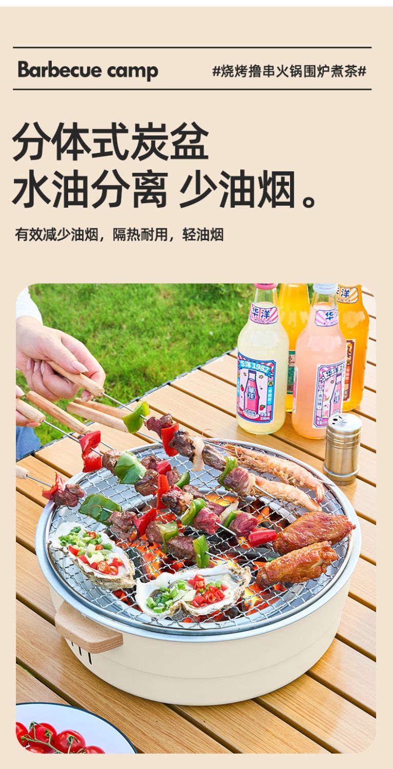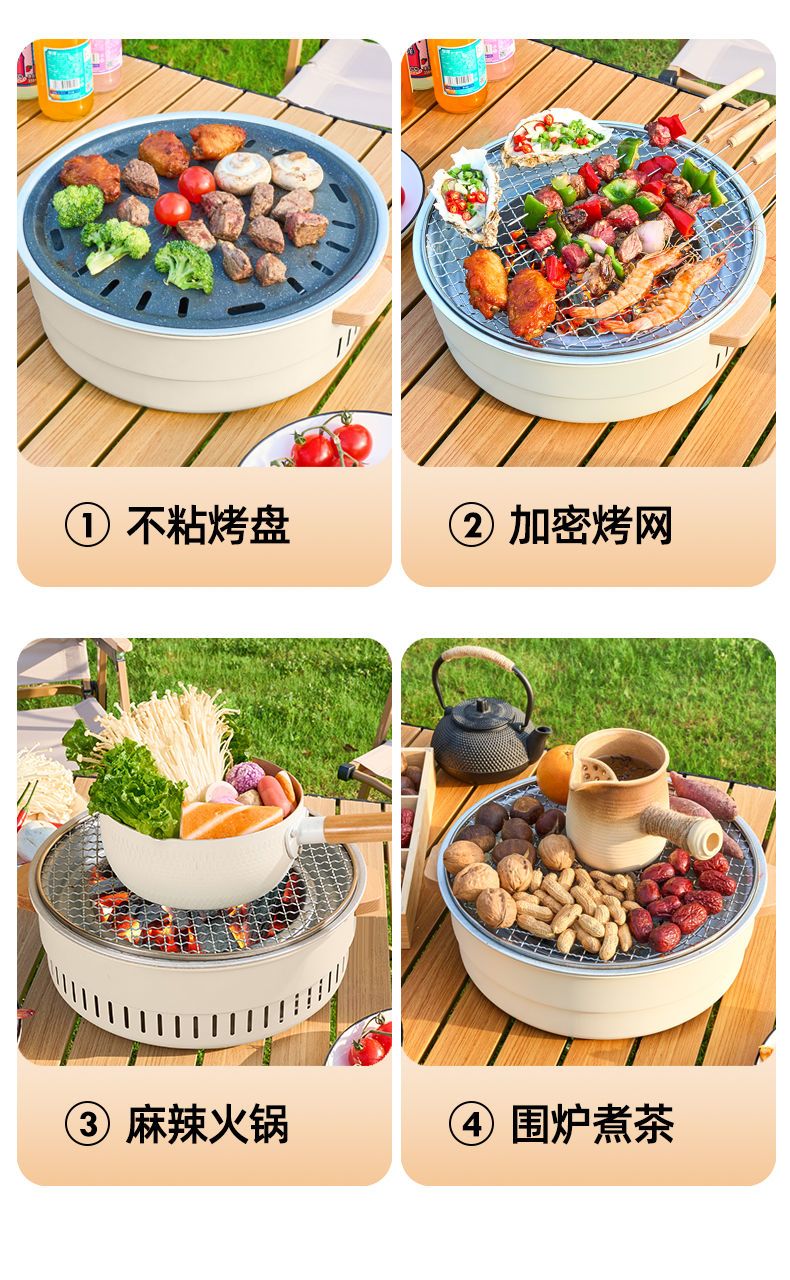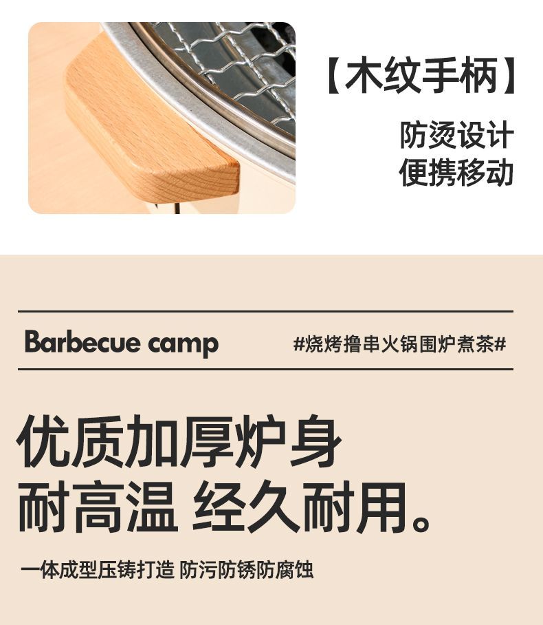 围炉煮茶烧烤炉室内户外烧烤架露营家用烧烤炉便携式烤肉炉碳烤炉
