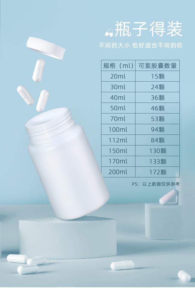 医用塑料瓶白色小瓶子固体瓶饵料瓶胶囊瓶样品瓶分装瓶20ml-200ml