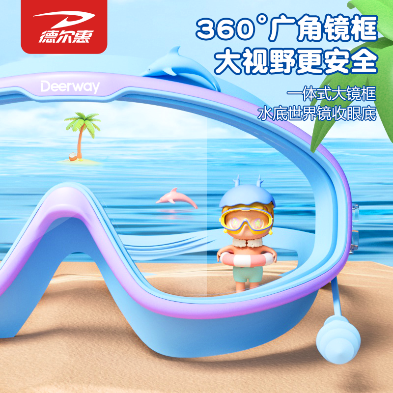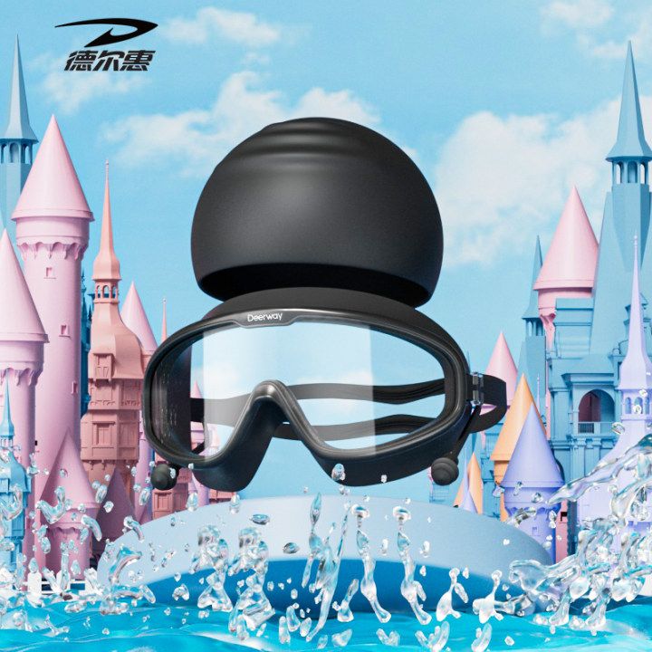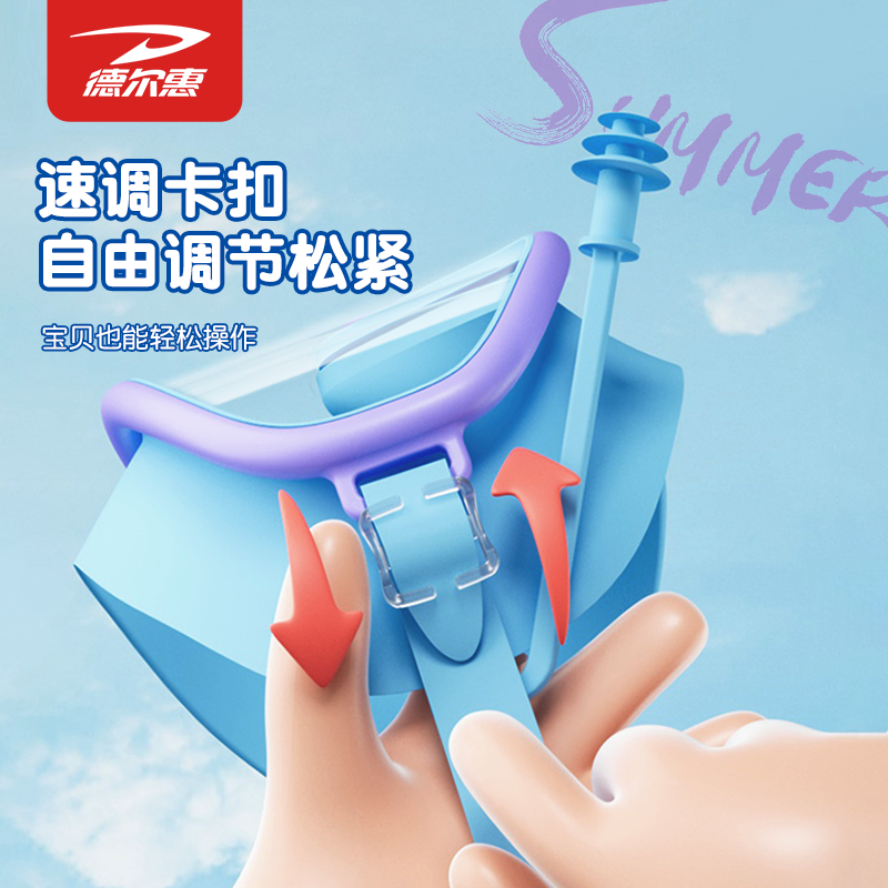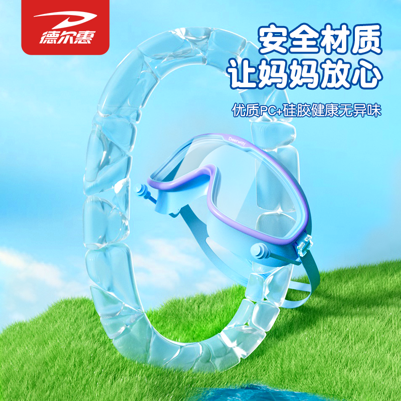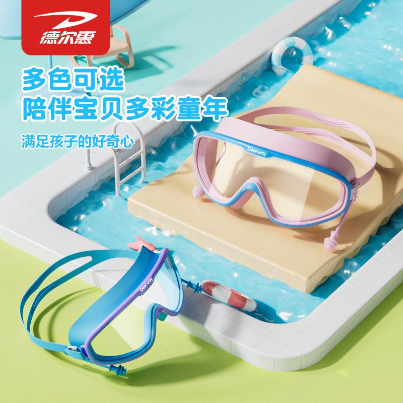 德尔惠儿童泳镜防水防雾高清男女童大框游泳眼镜专业训练泳帽套装