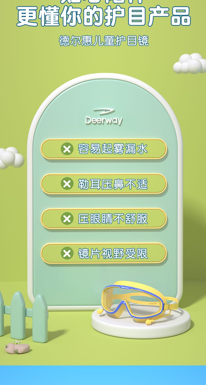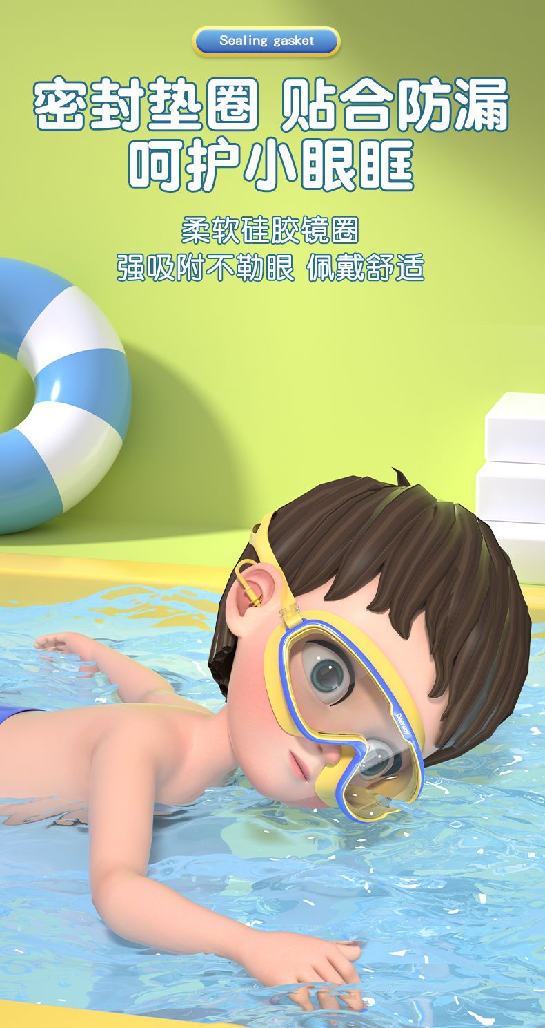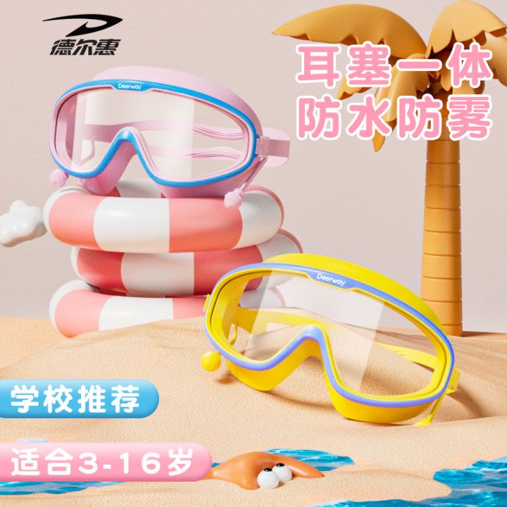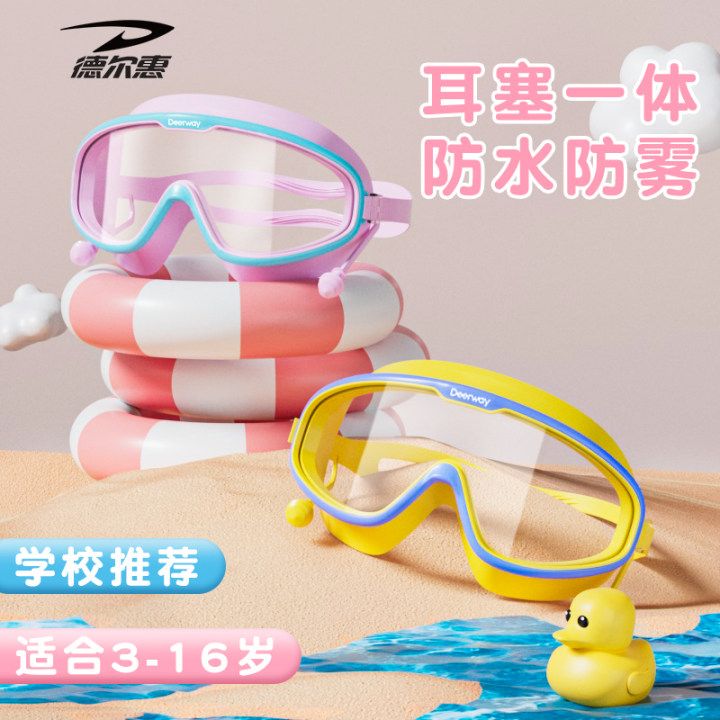 德尔惠儿童泳镜防水防雾高清男女童大框游泳眼镜专业训练泳帽套装