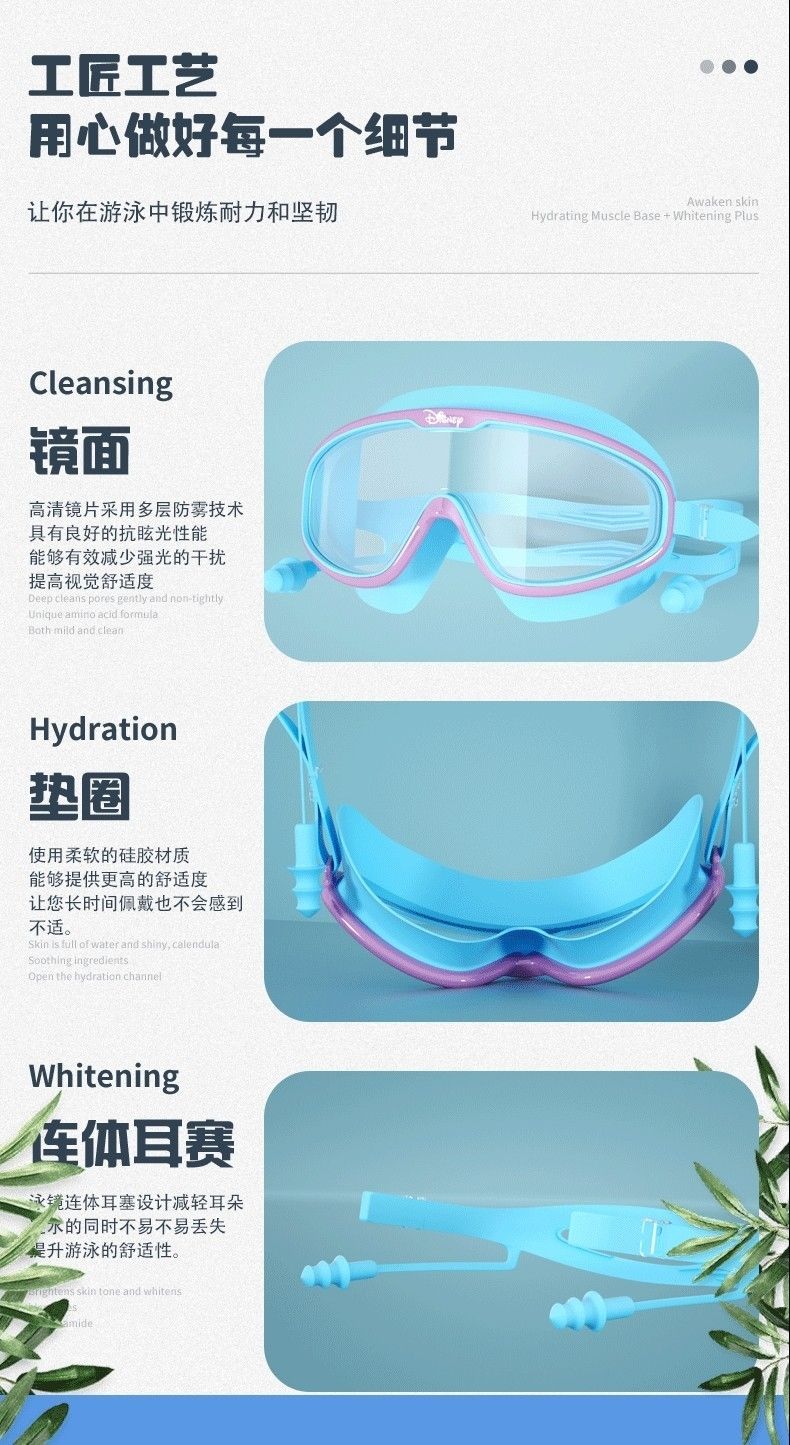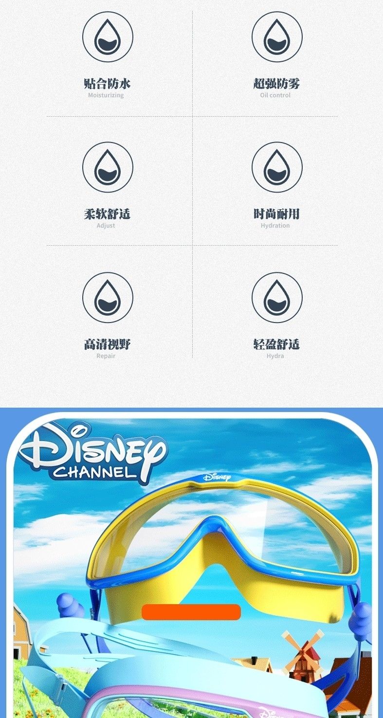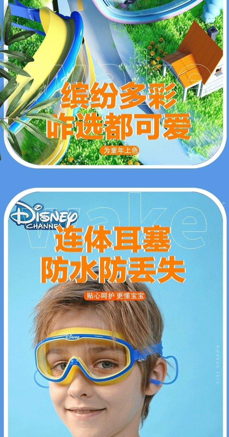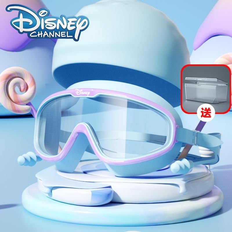 迪士尼儿童泳镜防水防雾高清专业大框游泳眼镜儿童潜水泳帽套装备