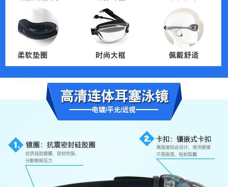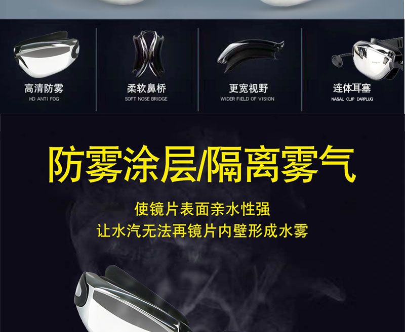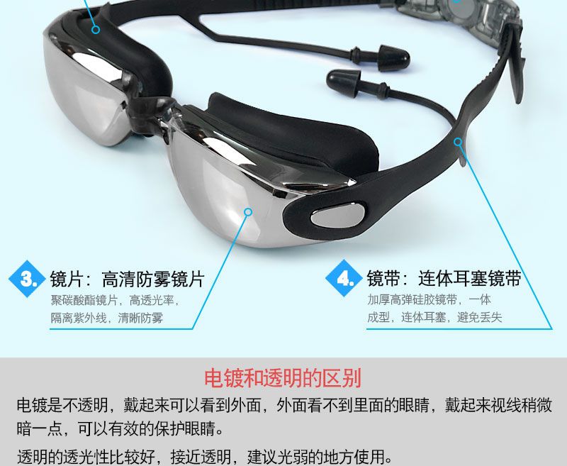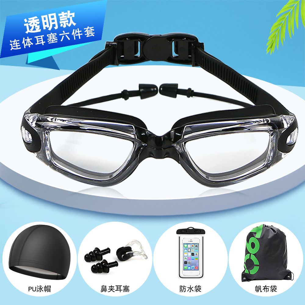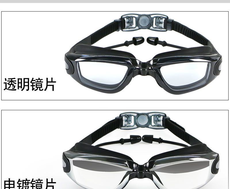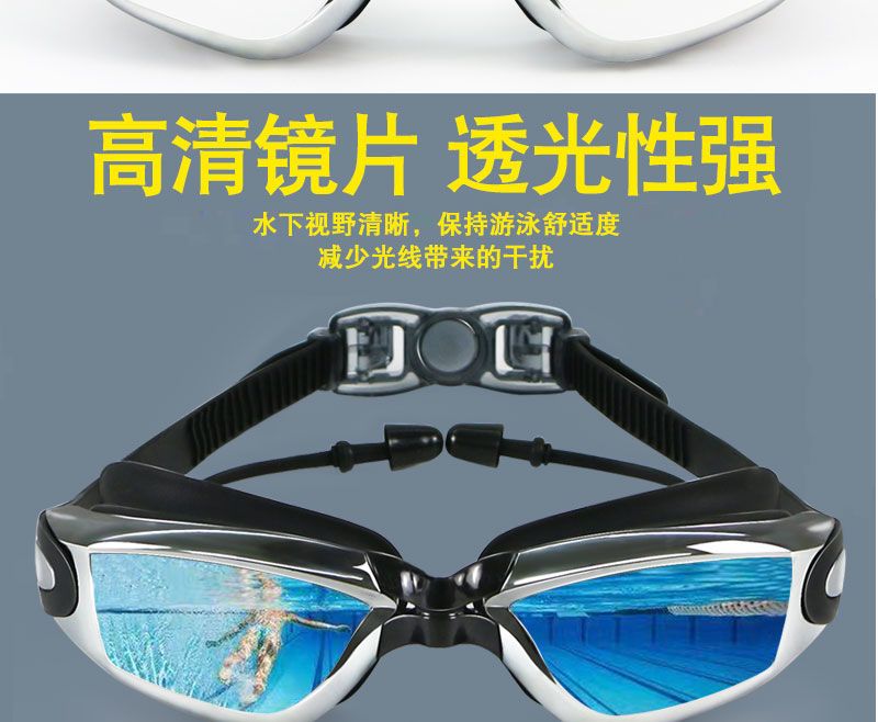 大框泳镜男女士防雾防水防飞溅高清护目镜防护泳镜透明电镀近视款