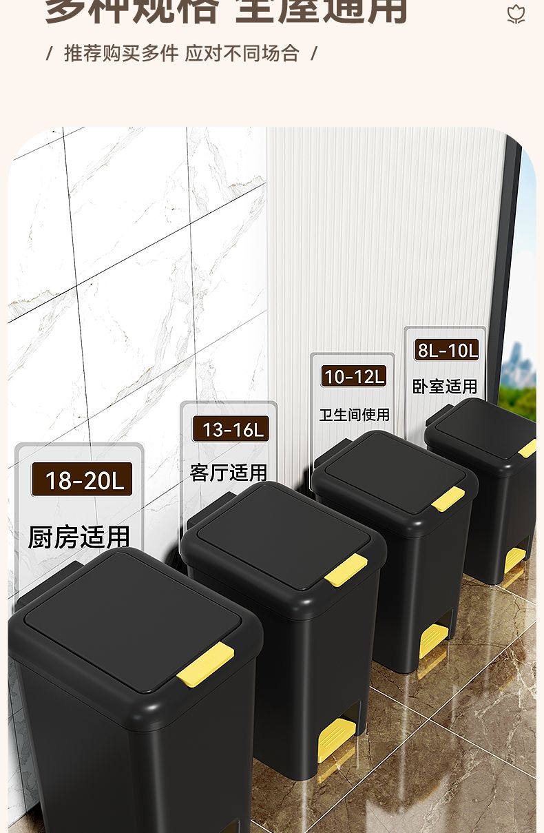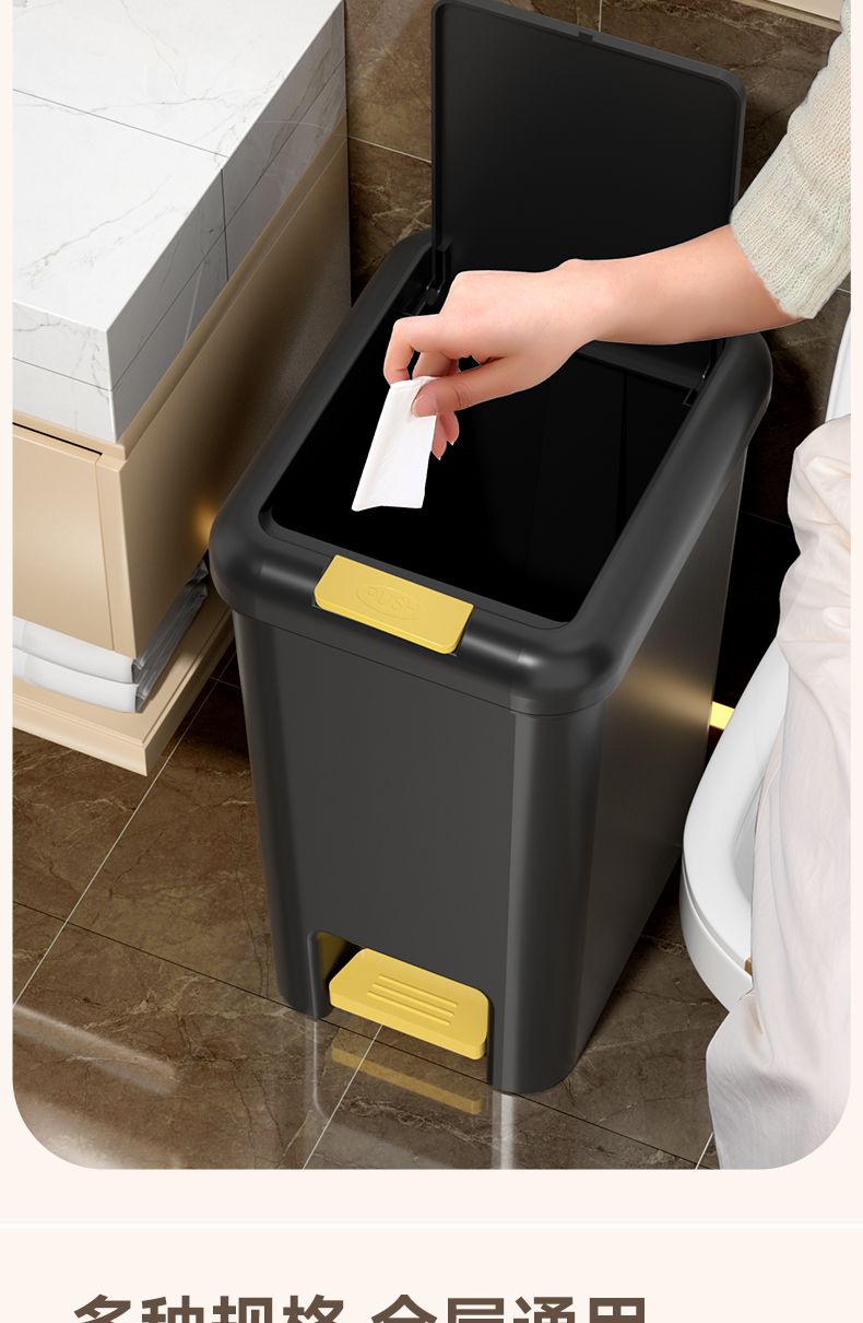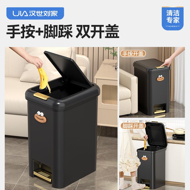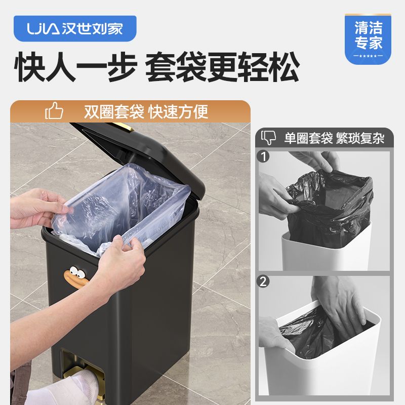 汉世刘家垃圾桶家用厨房卫生间脚踏式客厅厕所大容量带盖窄缝按压