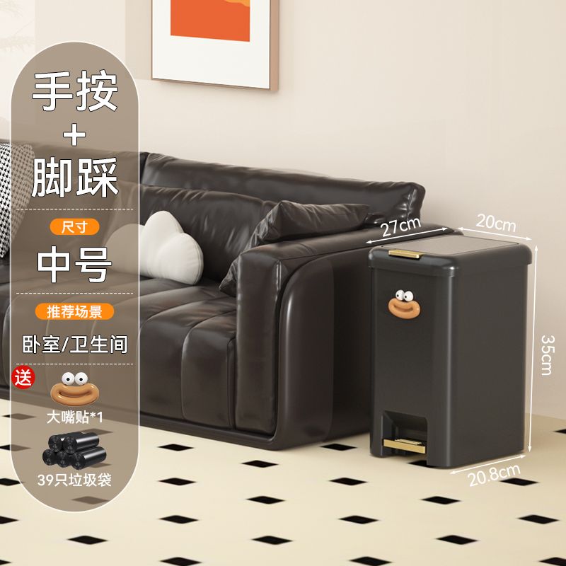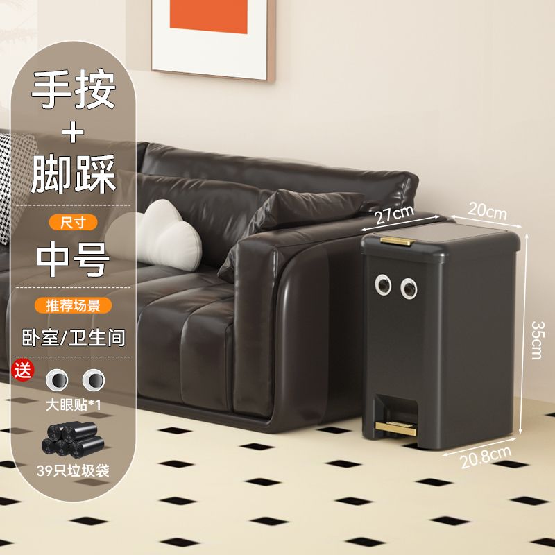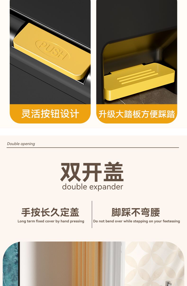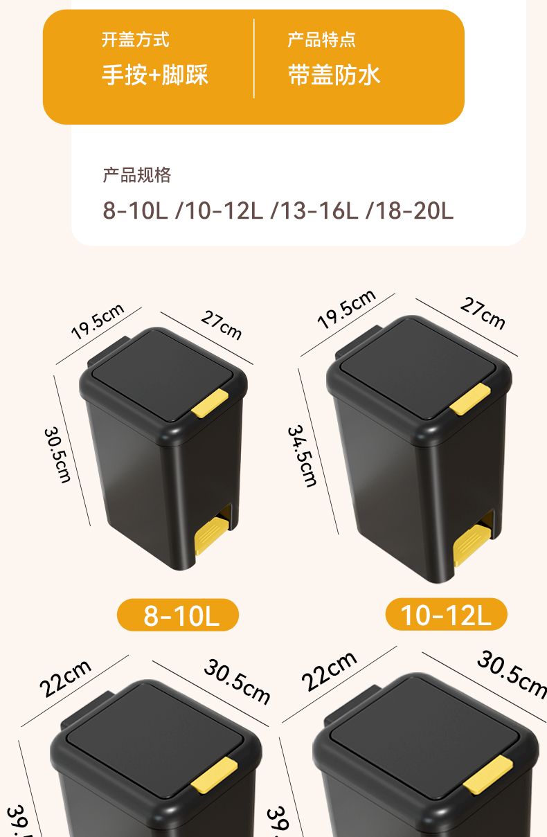 汉世刘家垃圾桶家用厨房卫生间脚踏式客厅厕所大容量带盖窄缝按压