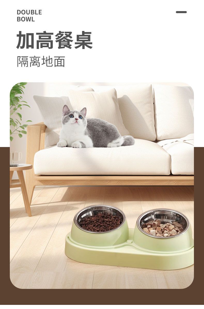 狗狗陶瓷食盆猫碗自动饮水一体双碗猫咪斜口护颈水碗饭盆宠物用品
