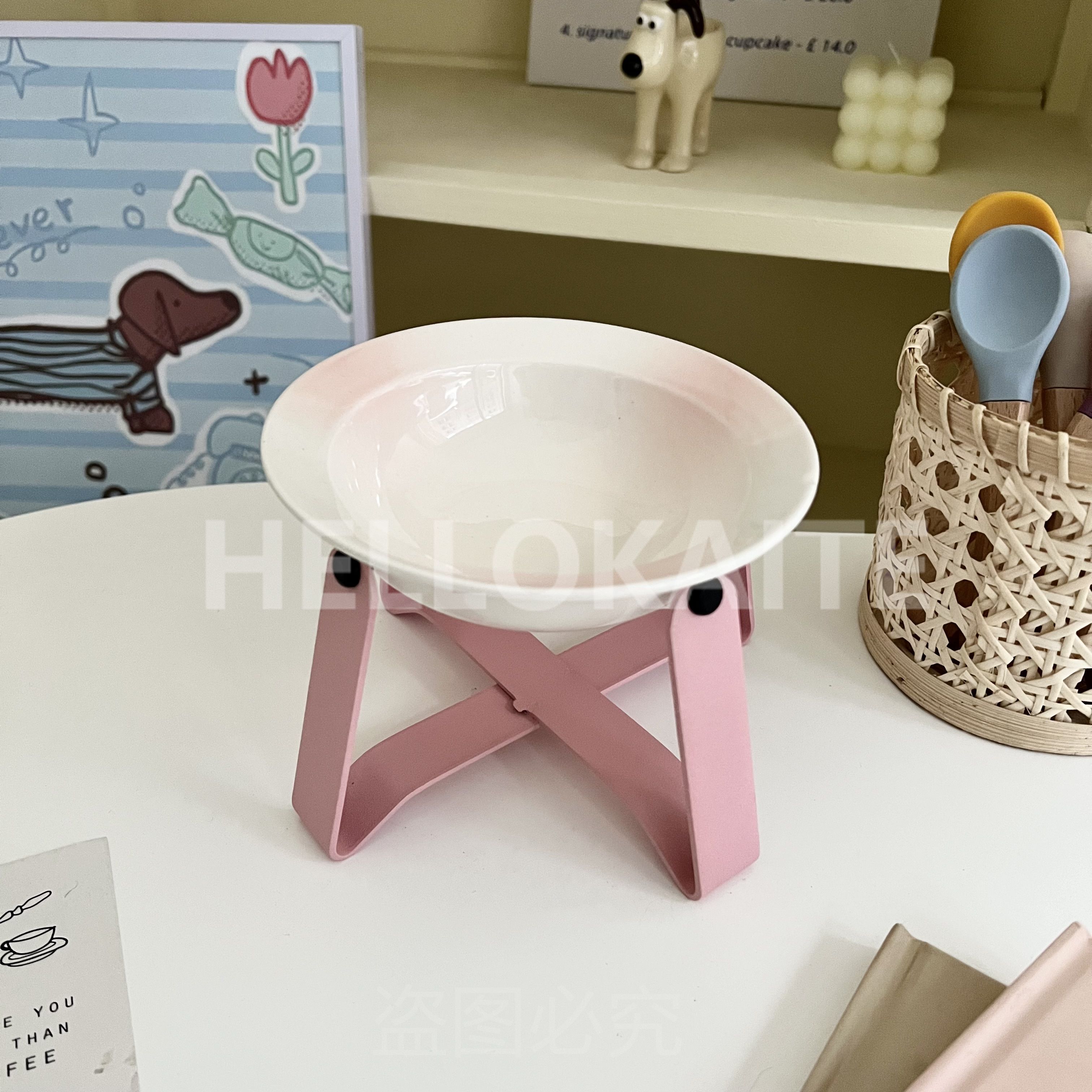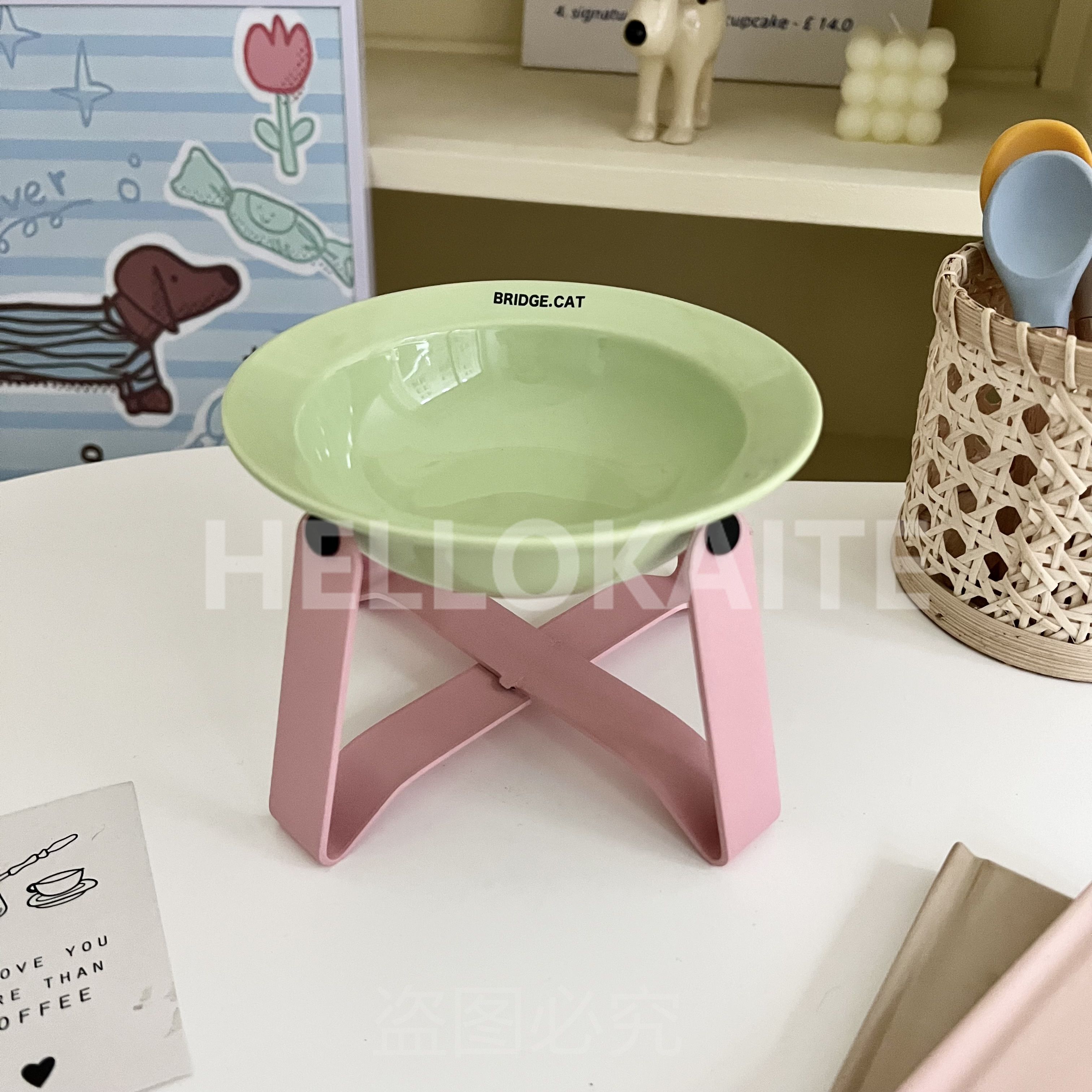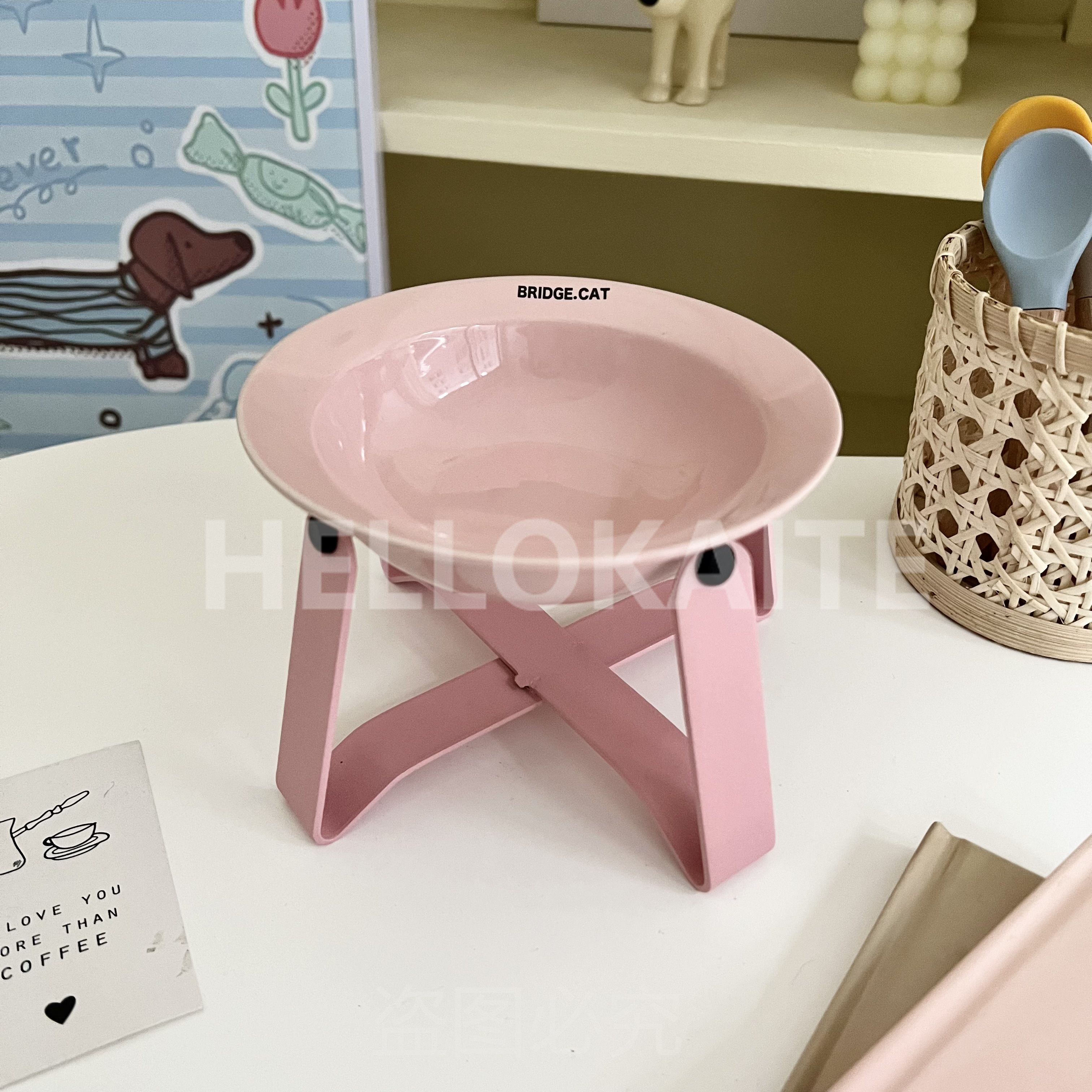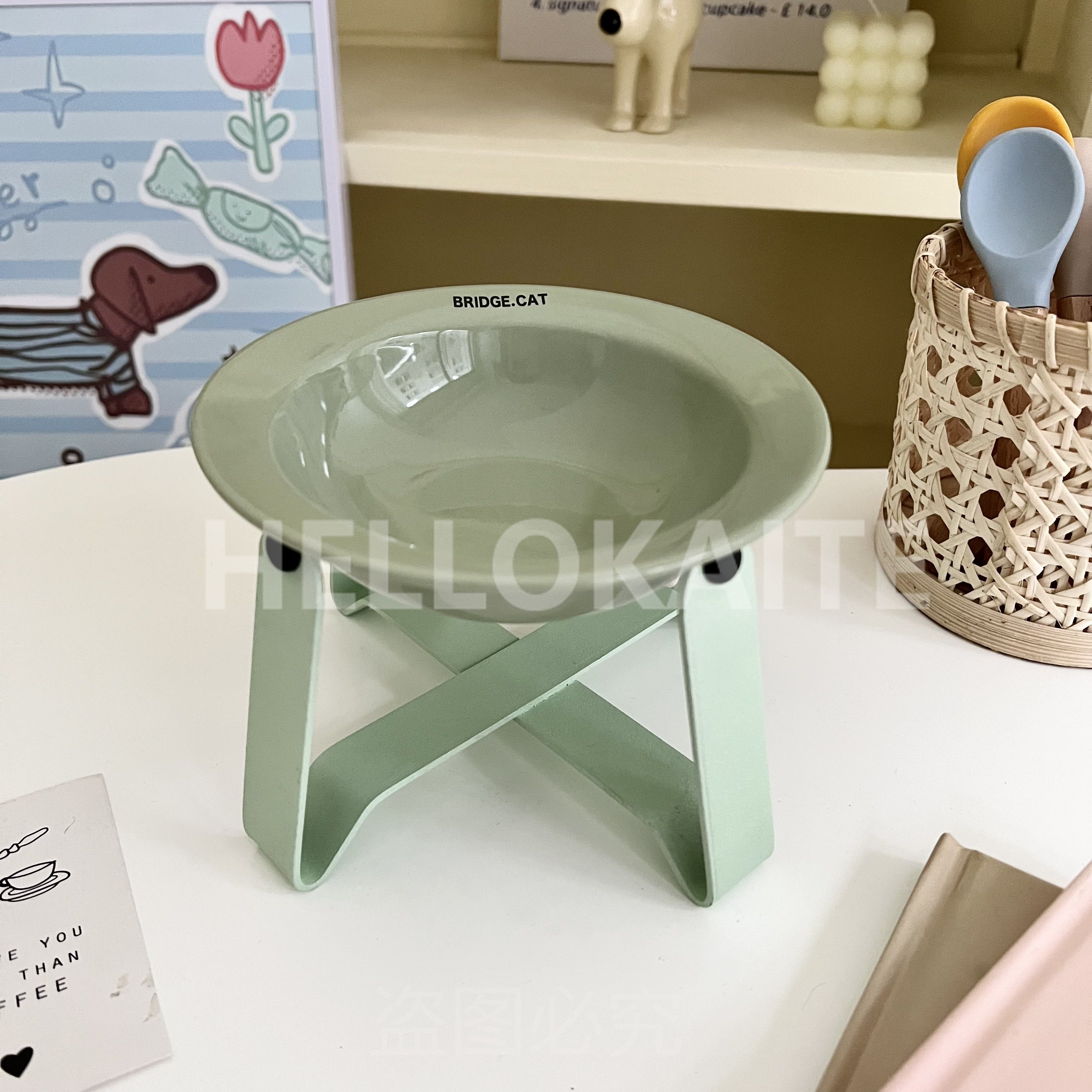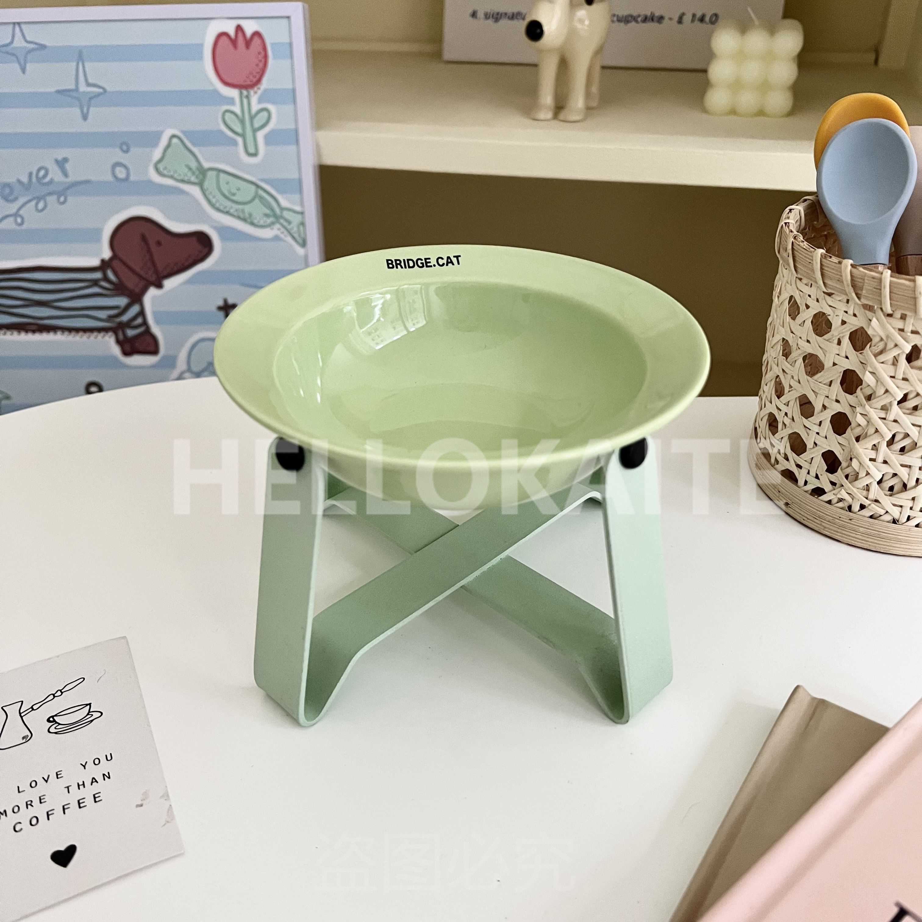 猫咪饭碗碗架猫碗护颈飞碟双耳碗猫罐头碗猫碗宠物猫咪陶瓷碗加高