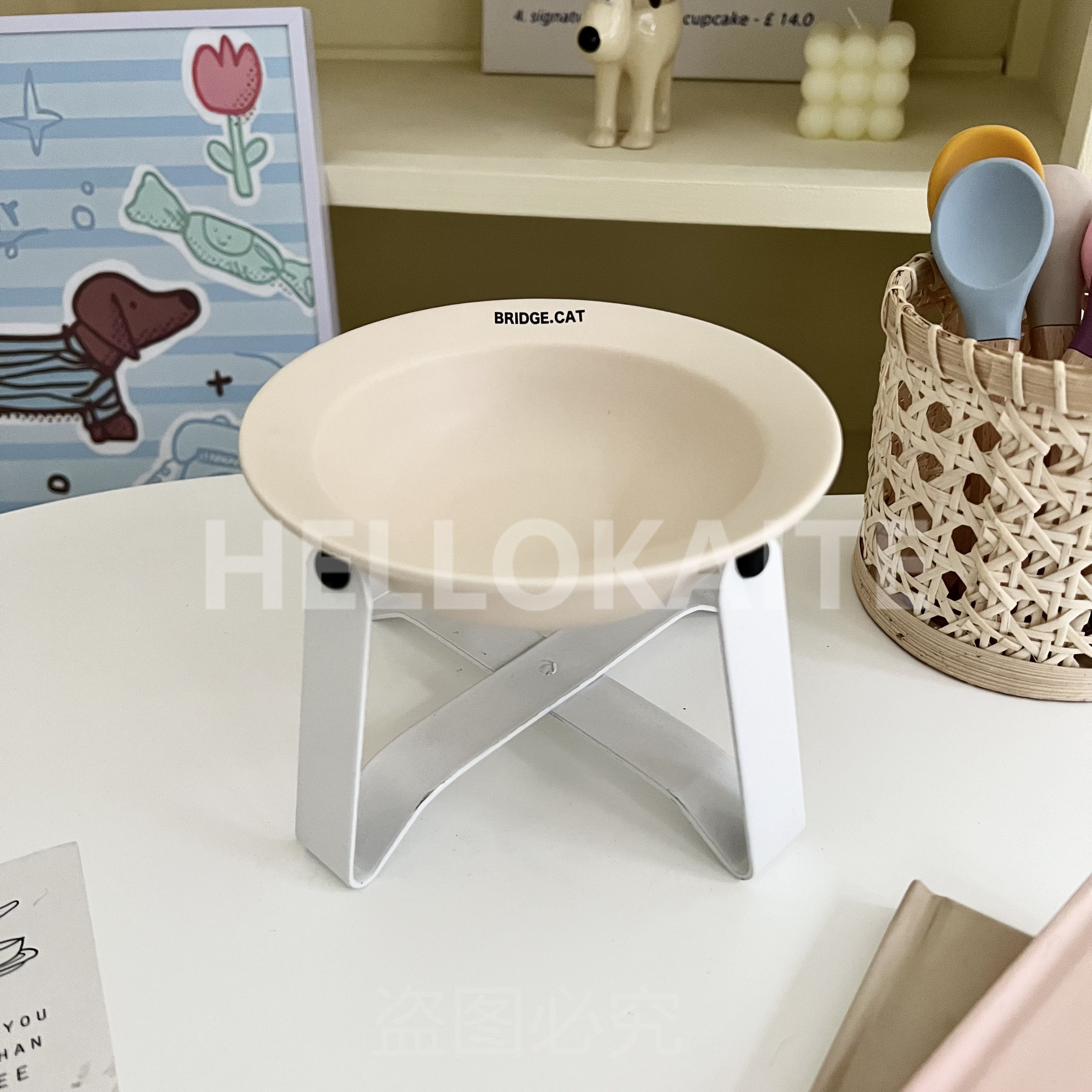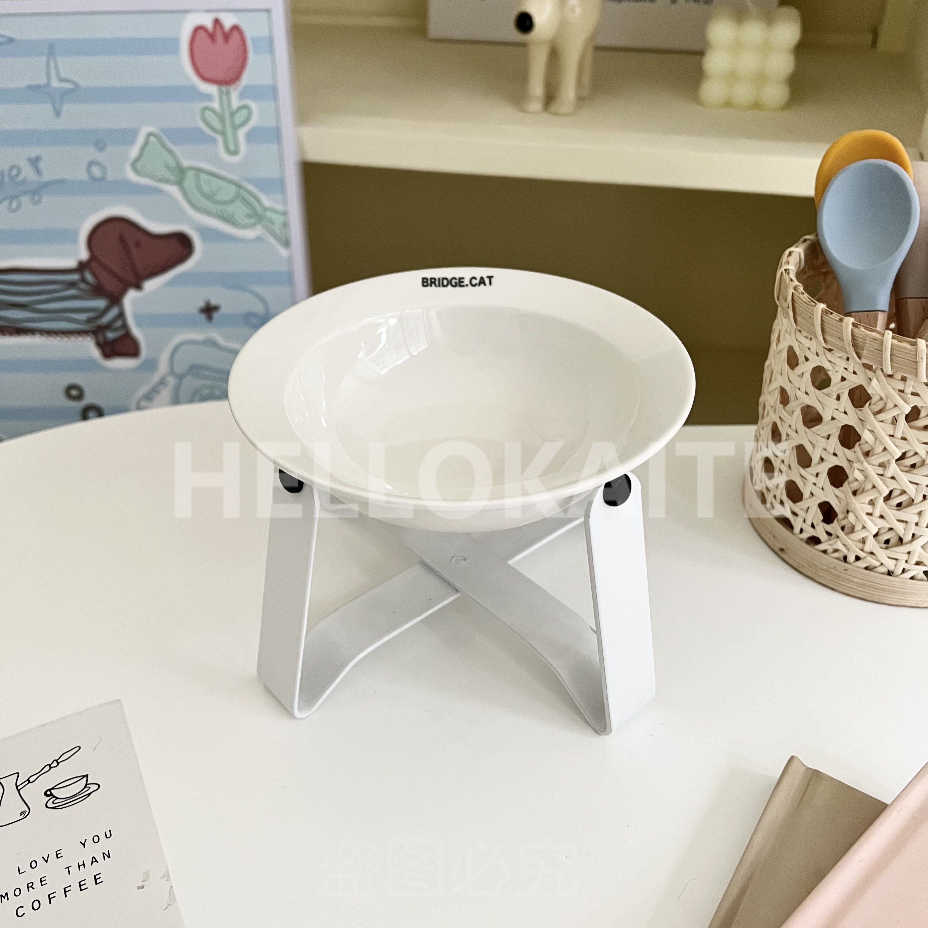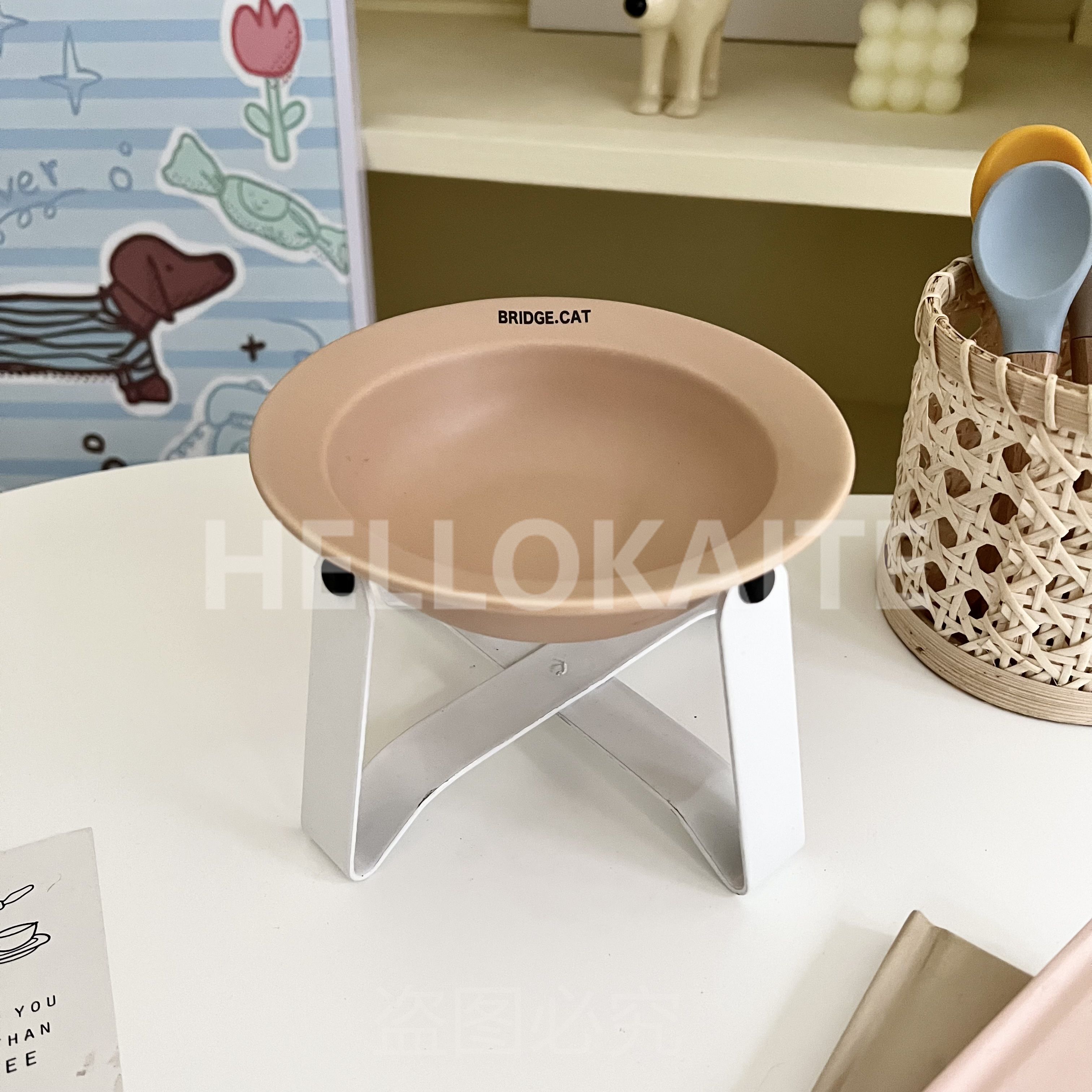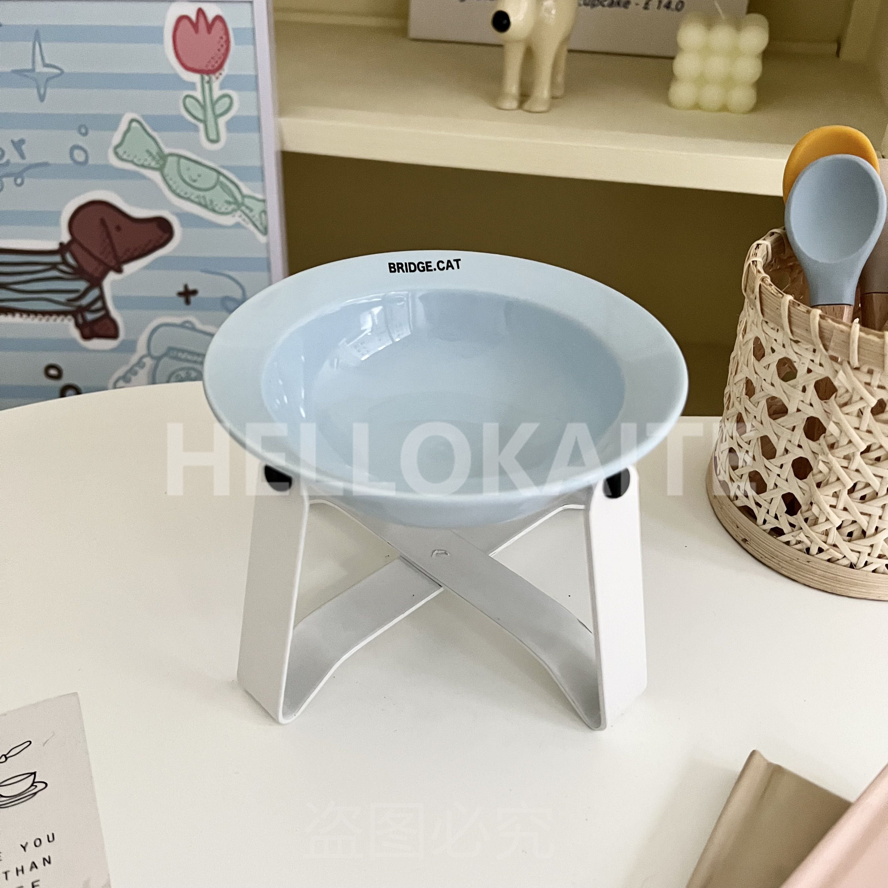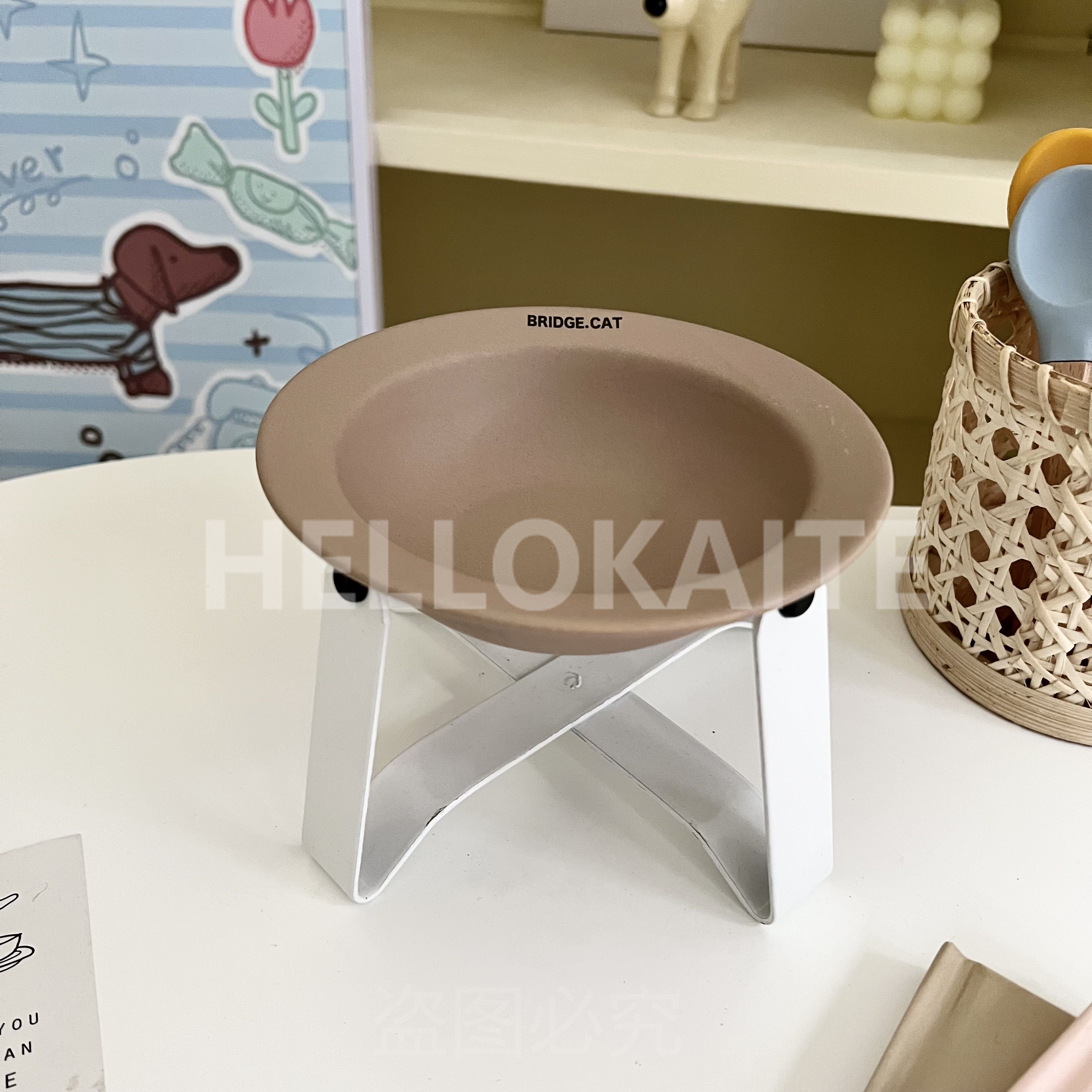猫咪饭碗碗架猫碗护颈飞碟双耳碗猫罐头碗猫碗宠物猫咪陶瓷碗加高